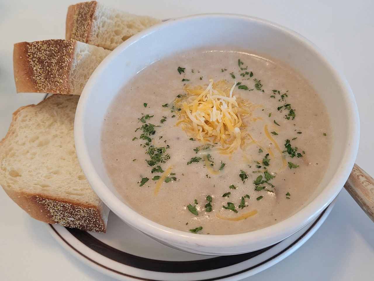 그래도 아침이니까 가볍게 양송이 수프랑 빵!