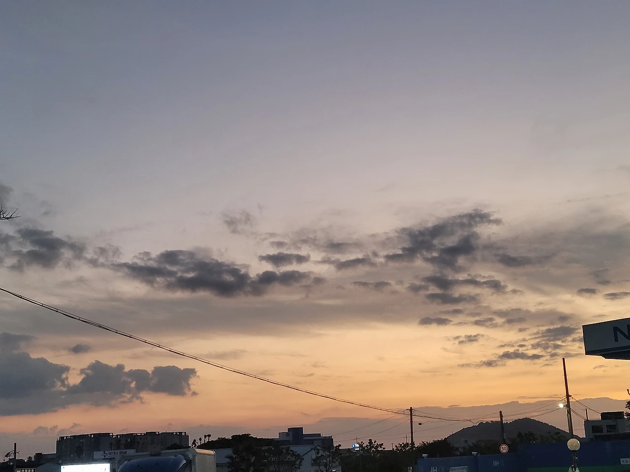 걸어가면서 실시간으로 보는 해 지는 하늘.