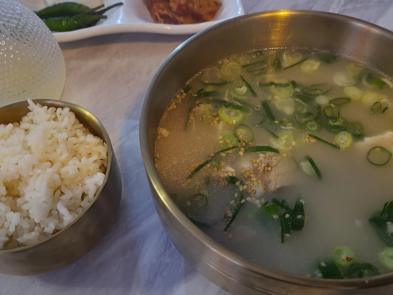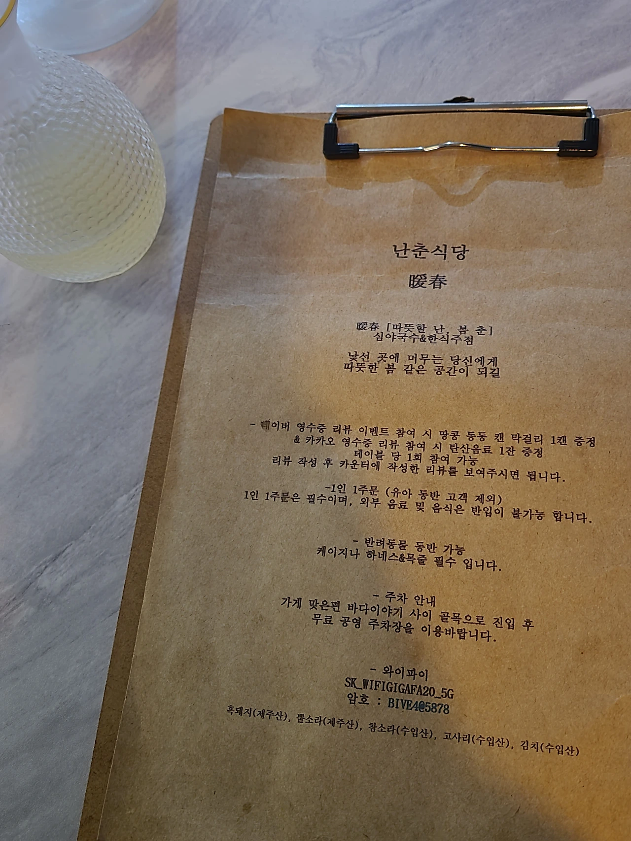서비스로 청귤차도 주고 흑돼지 국밥 먹었는데