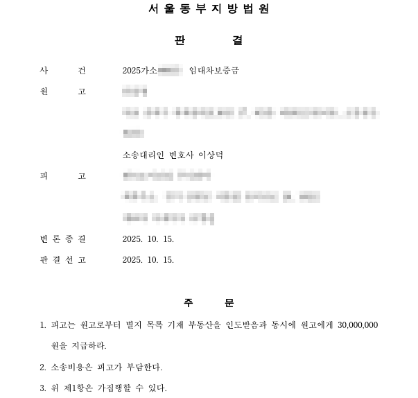 저희 사무소는 이와 유사한 상황에서 보증금 전액 반환 판결을 받아낸 경험이 있습니다.