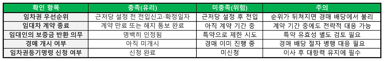 그러나 중요한 점은, 건물이 경매로 넘어가지 않은 상황이라면 임대인에게 보증금 반환을 직접 청구할 수 있다는 것입니다. 계약이 종료되고 임대인이 보증금을 돌려주지 않는다면, 근저당 유무와 무관하게 임차인은 소송을 통해 보증금 전액 반환을 청구할 수 있습니다.