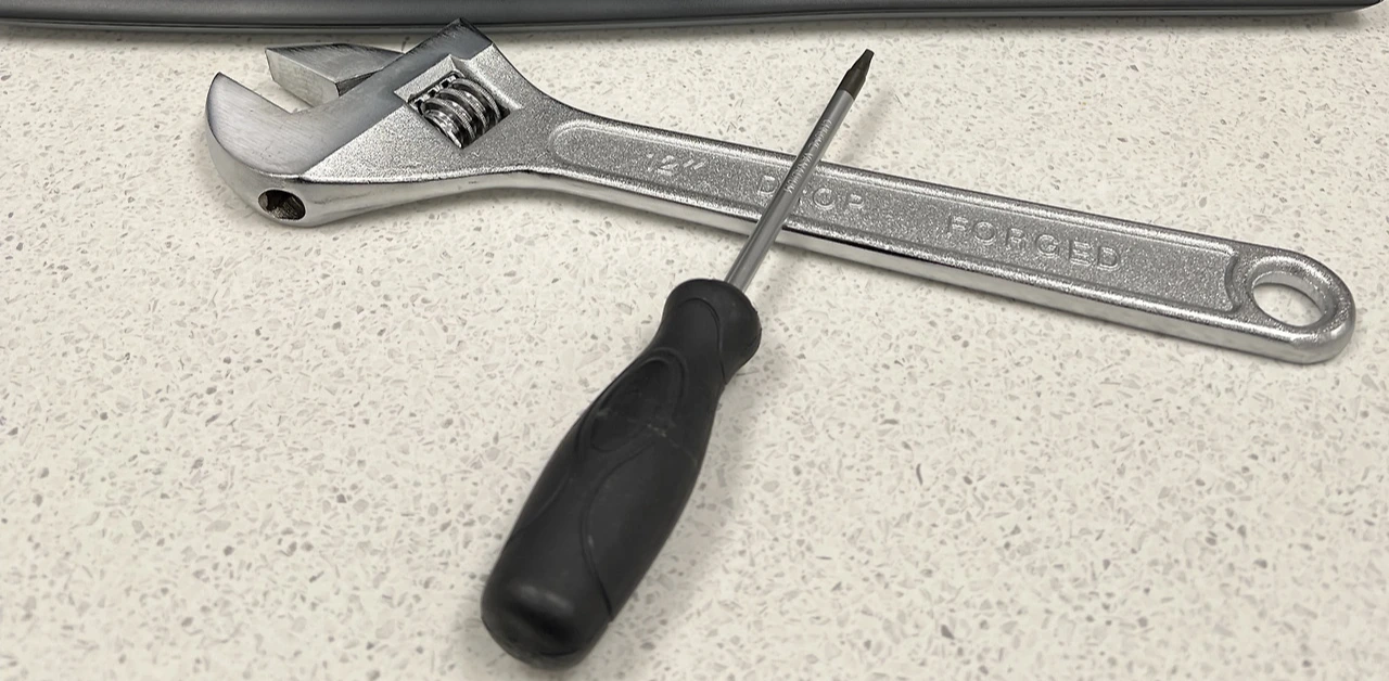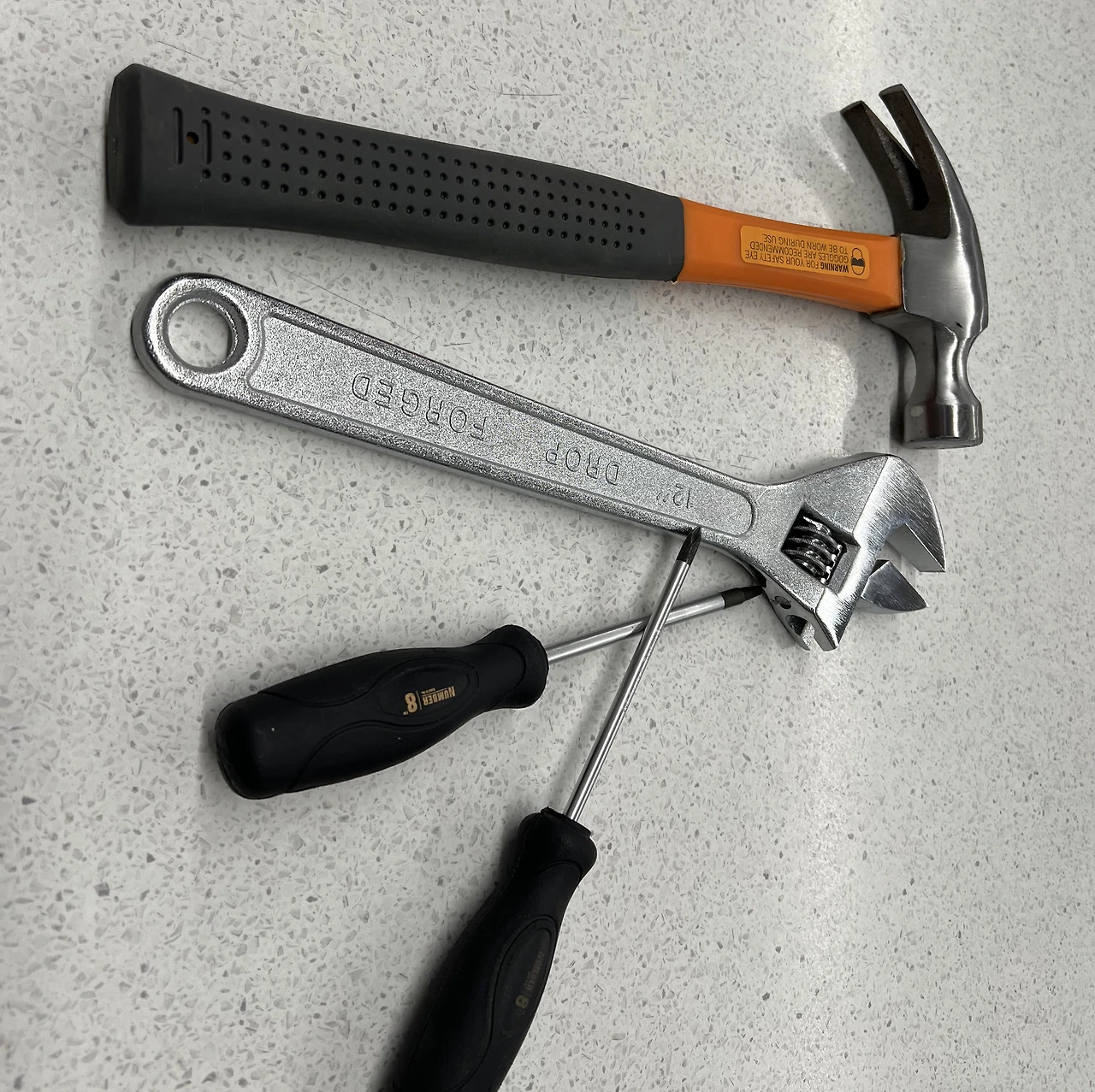 못질할 때 쓰는 망치와 집수리 공구를 나와 여자 직원에게 나누어 주고는....
