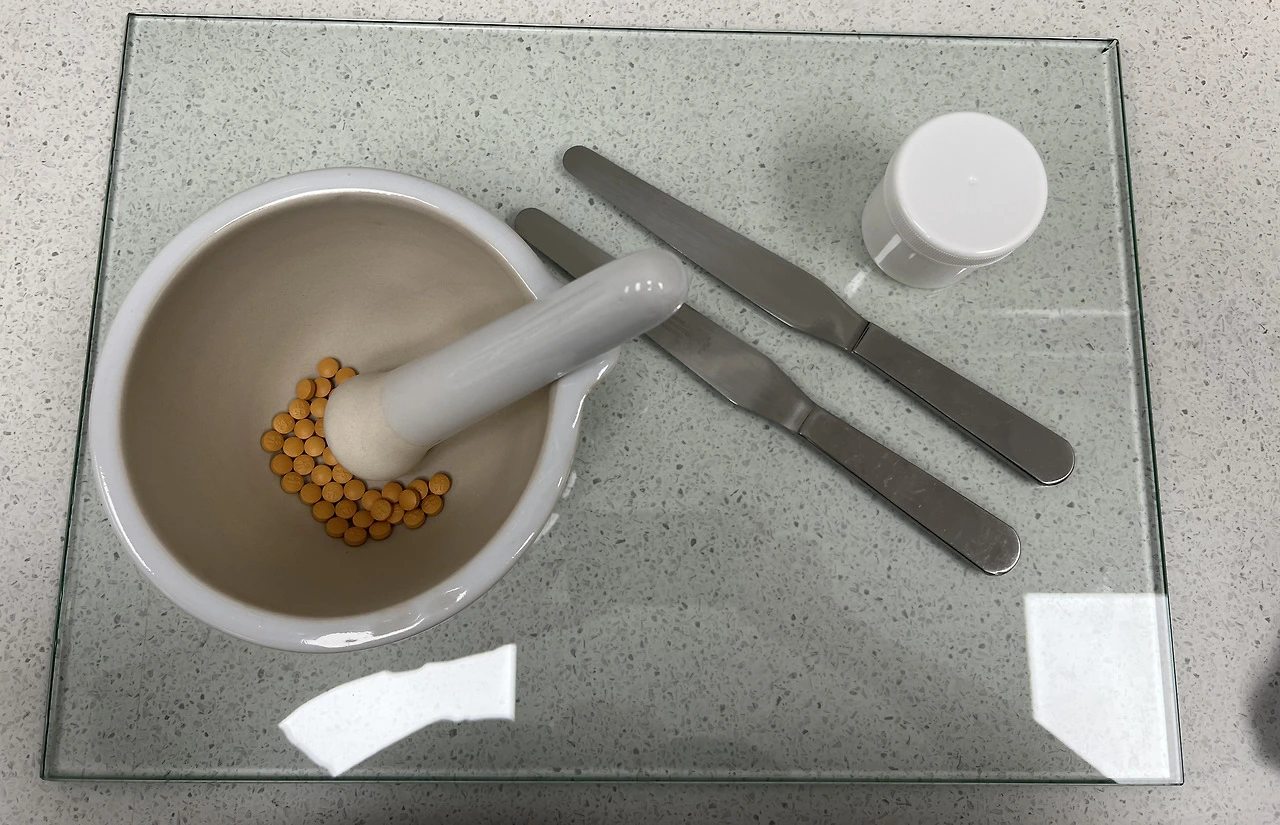 모든 조제의 기본은 모든 필요 재료와 도구의 살균과 위생을 시작으로 하기에 알코올로 전체를 닦아주고, 각 약의 일련번호와 유효기간을 조제약 서류에 기재하고, 매년 전문가의 감정을 받은 저울에 정량을 재서 정해진 순서대로 약을 만든다.