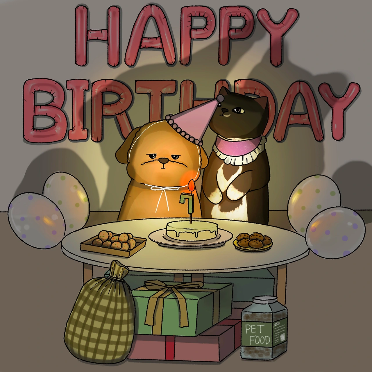 어르고 달래며 사진을 남기기 위한 생일파티를 한다