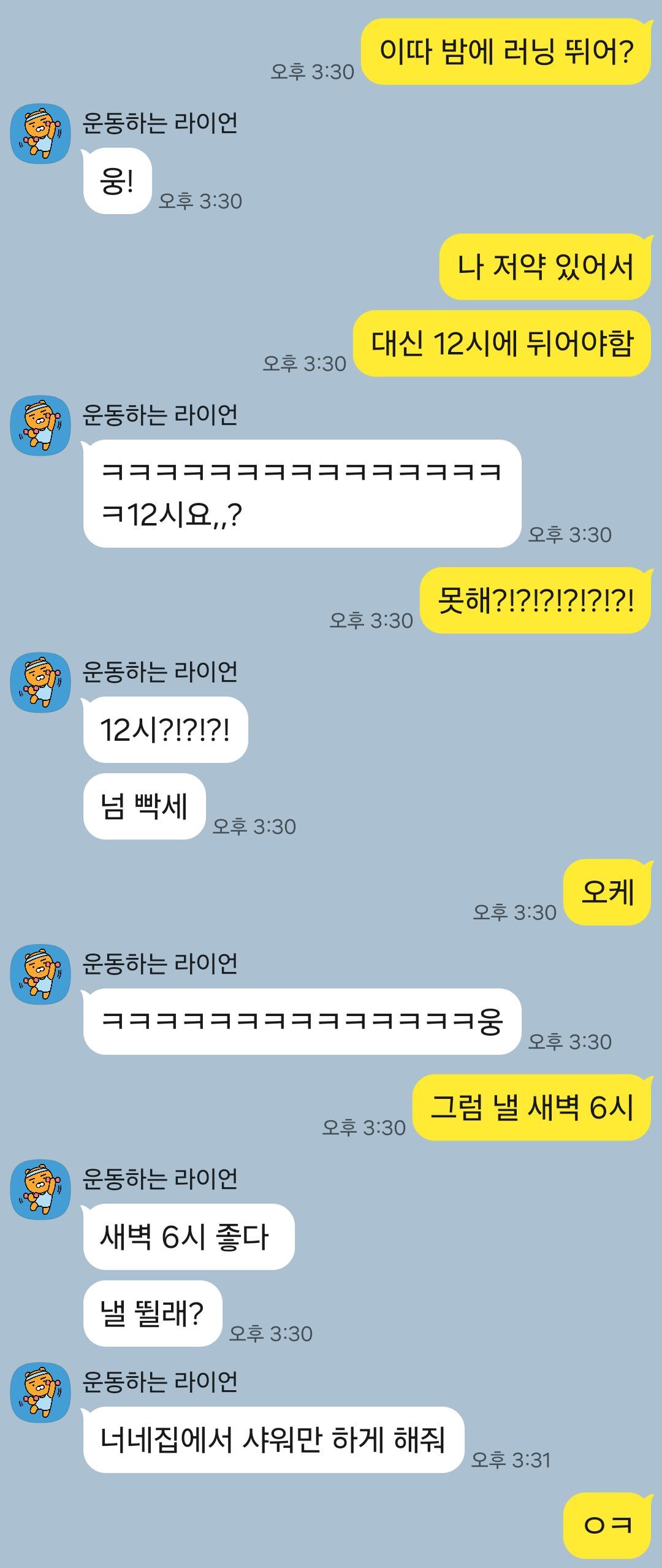 각자 일정 끝나고 시간이 맞으면 뛰자고