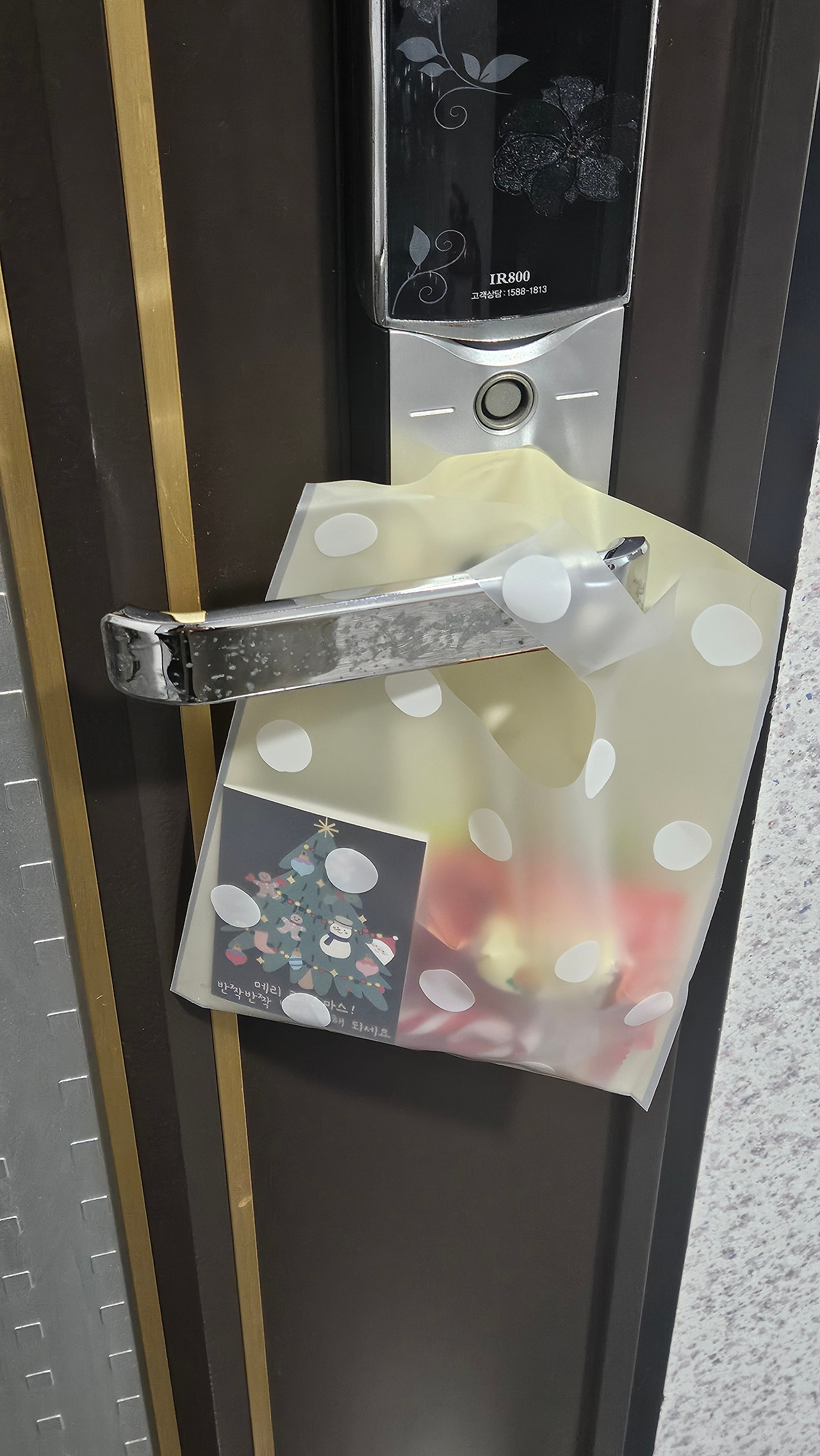 앞 집에 걸려 있는 선물을 보며