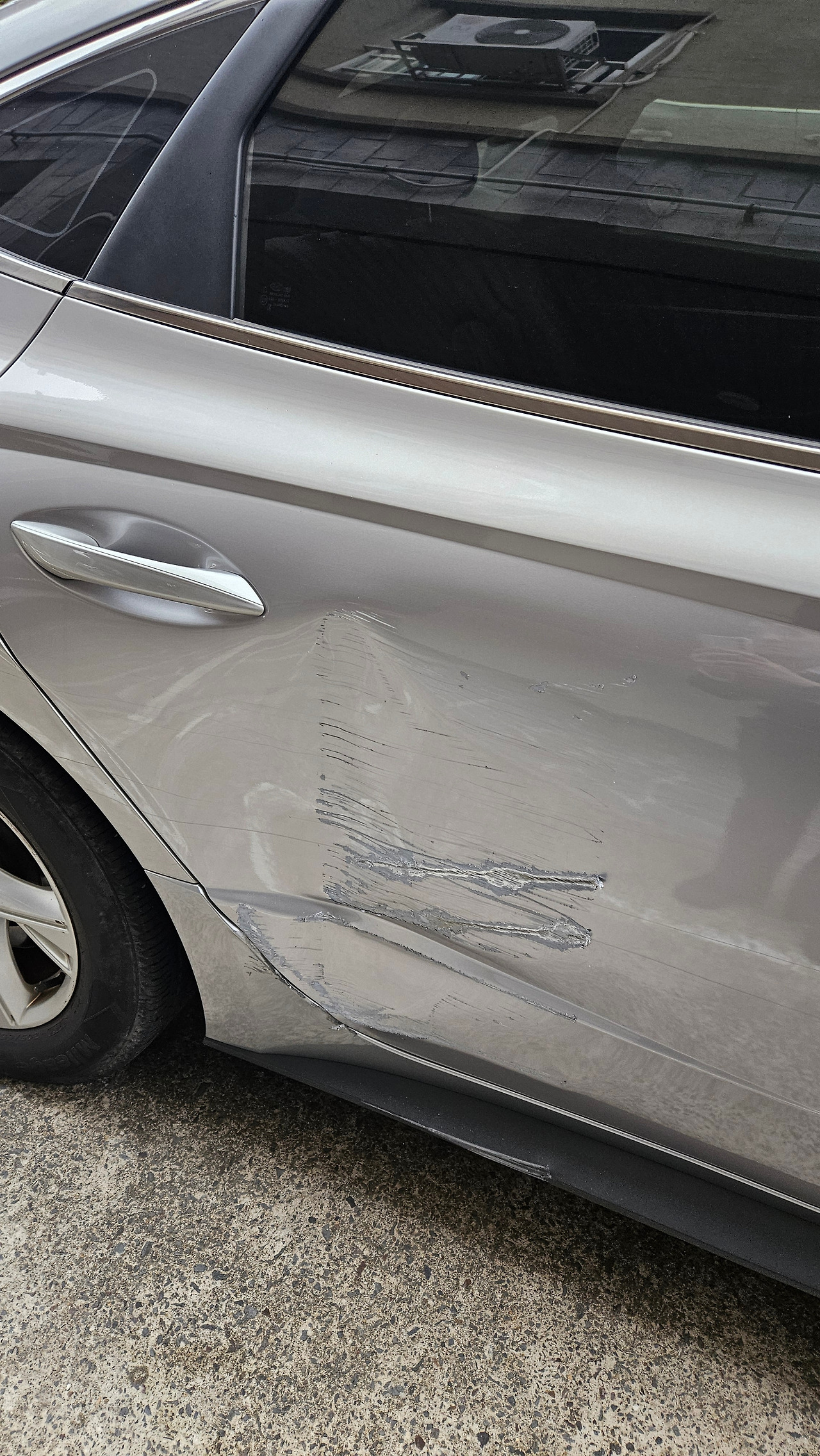 주차장 기둥을 긁어서 참 다행이다'