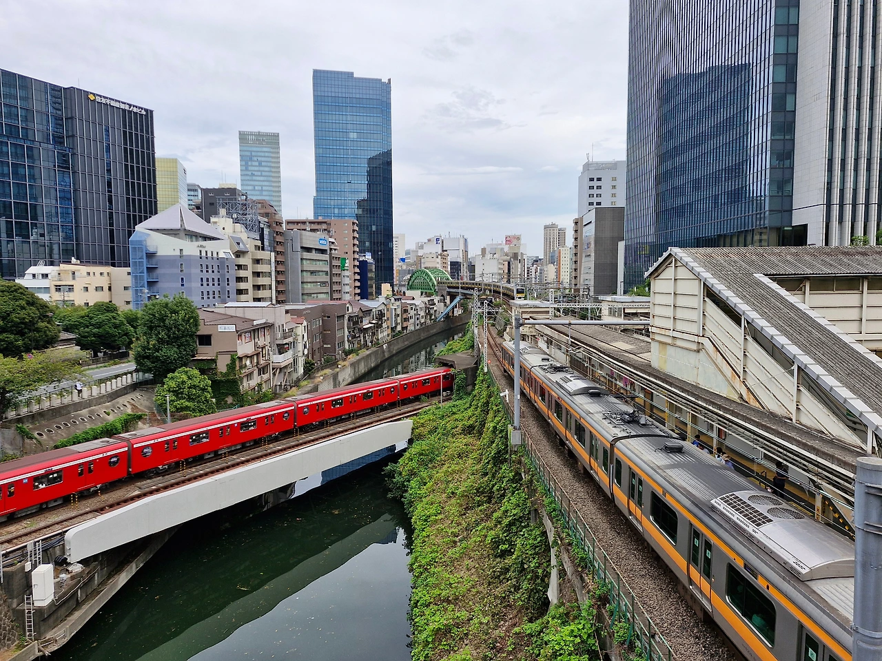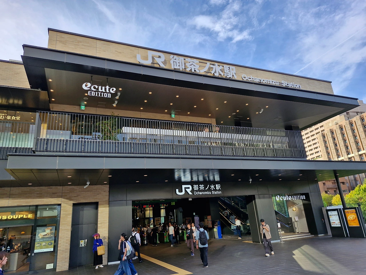 스카이라이너는 공항터미널에서 우에노 역을 종착역으로 하고, 직전에 닛포리 역에서 정차한다. 호텔 체크인 시간이 오후 다섯 시여서 많이 남은 공백 시간을 메우고자, 닛포리에서 내려 오차노미즈 역으로 가는 기차로 갈아탔다. 오차노미즈는 "오차"(마시는 차)와 "미즈"(물)의 합성어인데, 이 지역이 과거에 차문화와 관련이 있지 않을까 추측이 되었다. 실제로 하천이 이 지역을 관통하고 있고, 옛날에는 하천의 물과 차문화의 연관성이 있지 않았을까 추측해 본다.