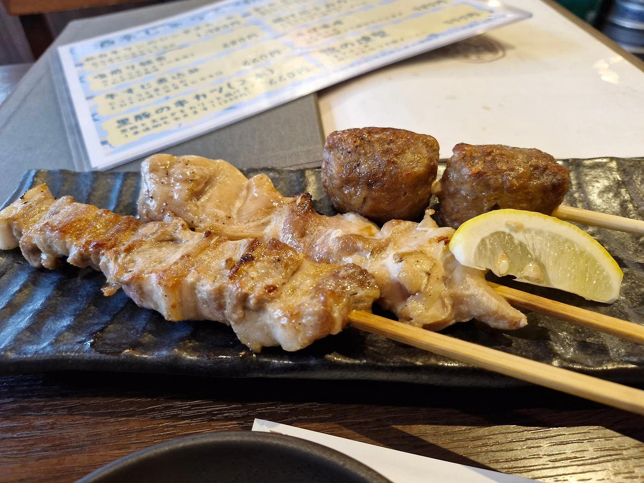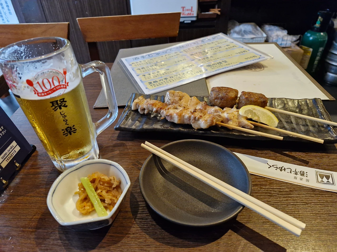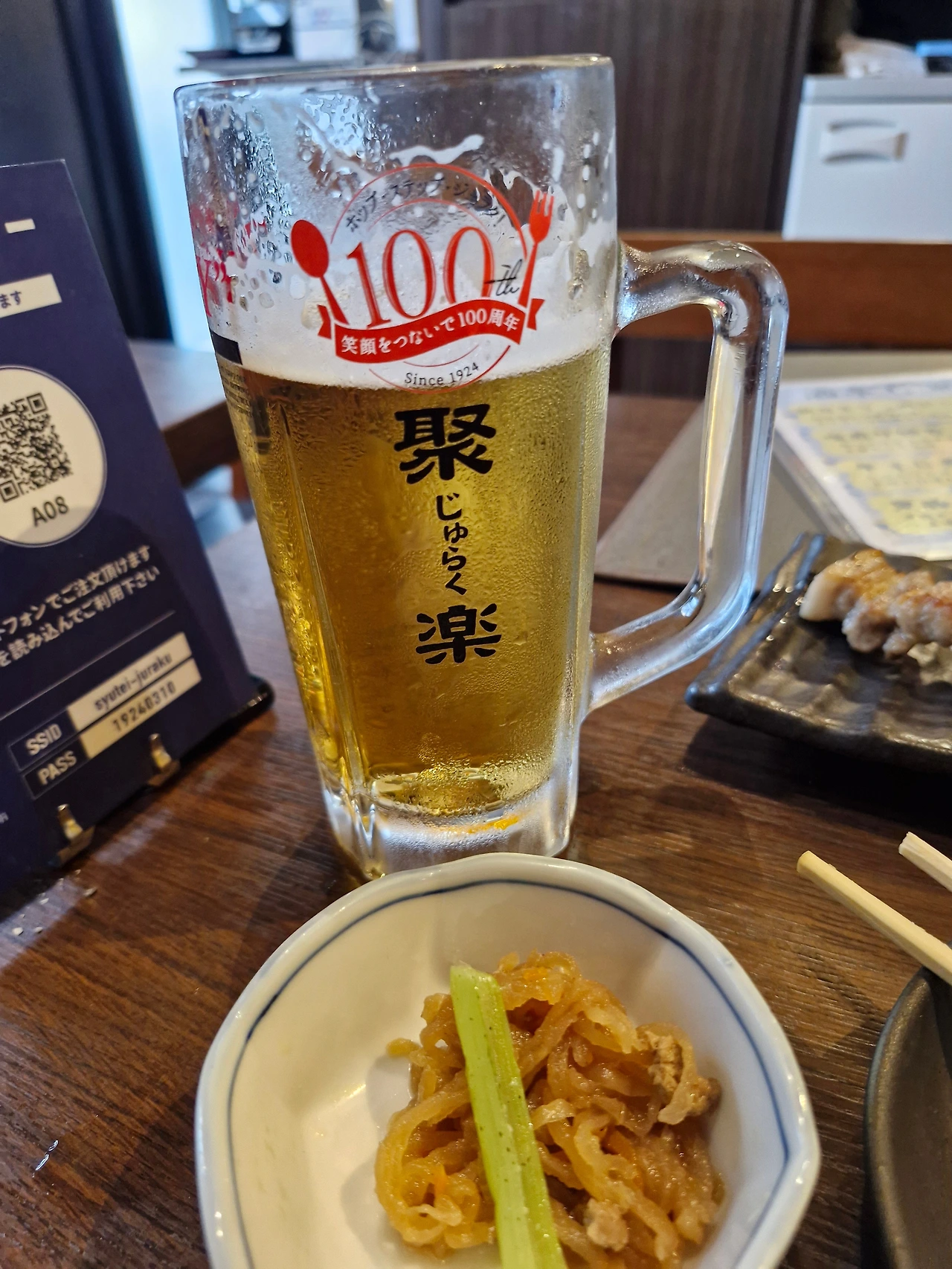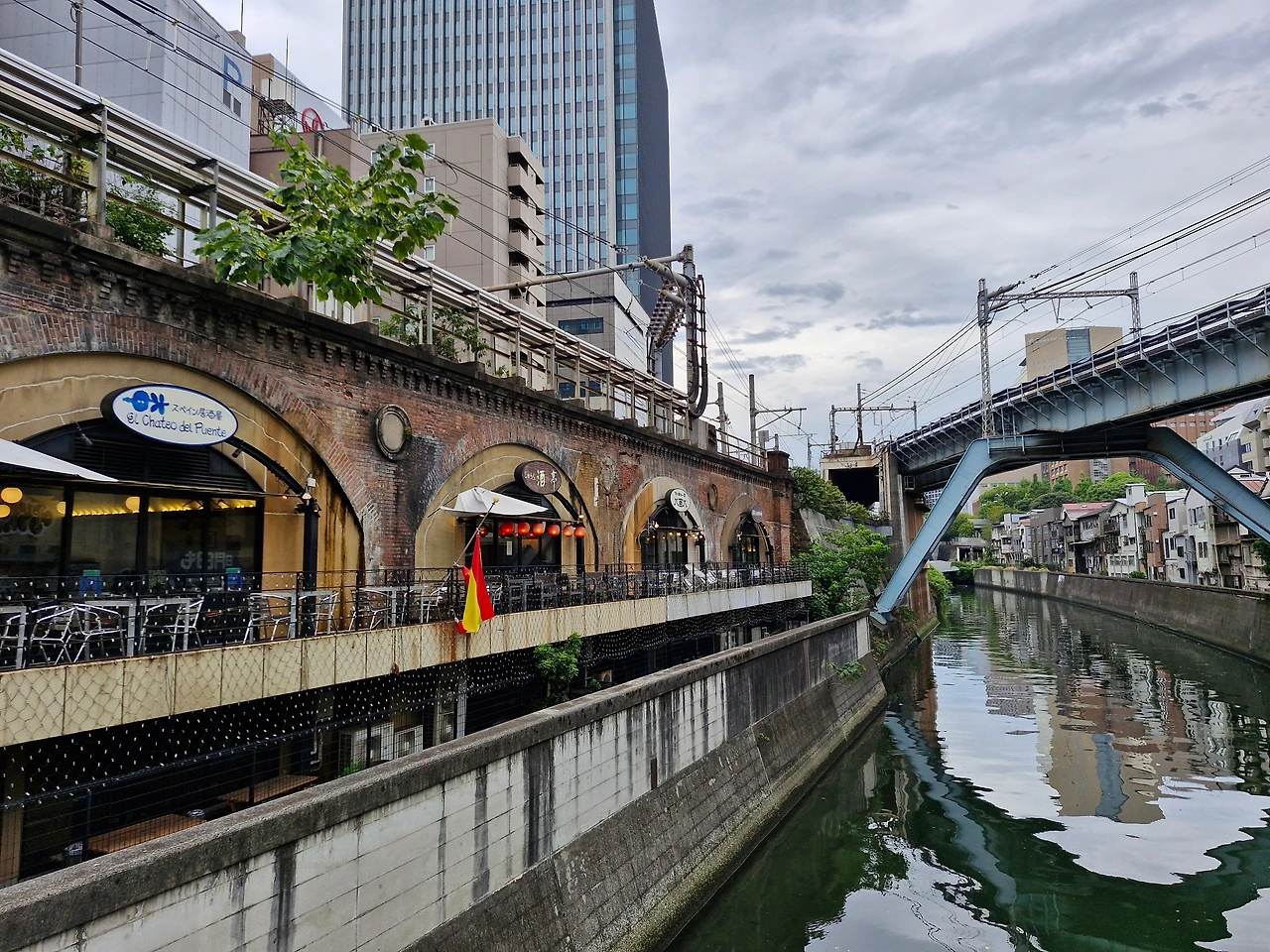 더운 시간에 캐리어를 들고 다니다 보니, 그만 지쳐서 하천 옆에 있는 음식점으로 들어가서 두 시간 정도 생맥주와 꼬지를 먹으면서 휴식을 취하였다.