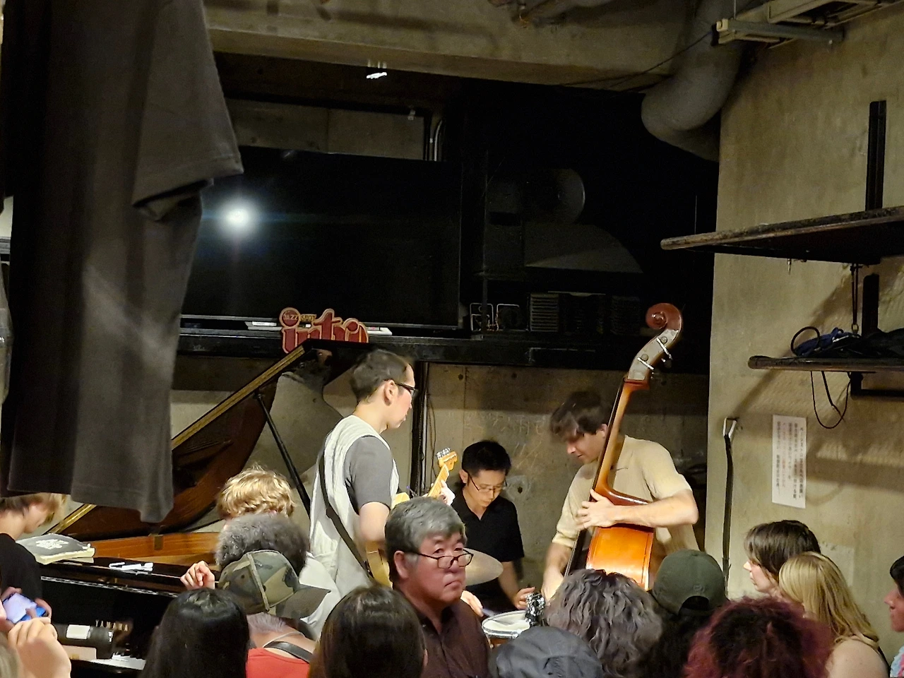 재즈 스폿 인트로(Jazz Spot Intro)도 이런 맥락에서 나는 이해를 해 보았다. 이 클럽의 관중들은 절반 넘게 외국인들이 차지하고 있다. 백인들, 중국인들, 한국인들, 흑인들이 간단한 일본어 정도는 할 수 있지만, 나머지 청중인 일본 현지인들과는 제대로 의사소통이 될 수가 없다. 연주자들도 다양한 국적이 섞여 있지만, 그들은 일본어 대신에 재즈로 소통을 하고 있다. 다양한 연령대, 평범해 보이는 사람부터 매력적인 젊은 여성까지 모든 인종들이 이 공간에서 재즈로 소통하며 외국생활의 애환을 달래는 듯했다. 입장료에 주류 한 잔을 포함한 가격인 1,500엔을 주인에게 내고 자리에 앉으면, 주인이 먼저 건배를 건네 오고 근처의 다른 손님들도 같이 건배를 청한다. 연주자들은 어느 정도 실력이 있어야 앞에서 공연을 하겠지만, 연주자들의 숨소리를 들을 수 있을 정도로 가까이 앉아 있는 관객들도 그냥 즐기면 된다. 재즈는 논리적으로 이해하기보다는 느껴야 하는 것이다.