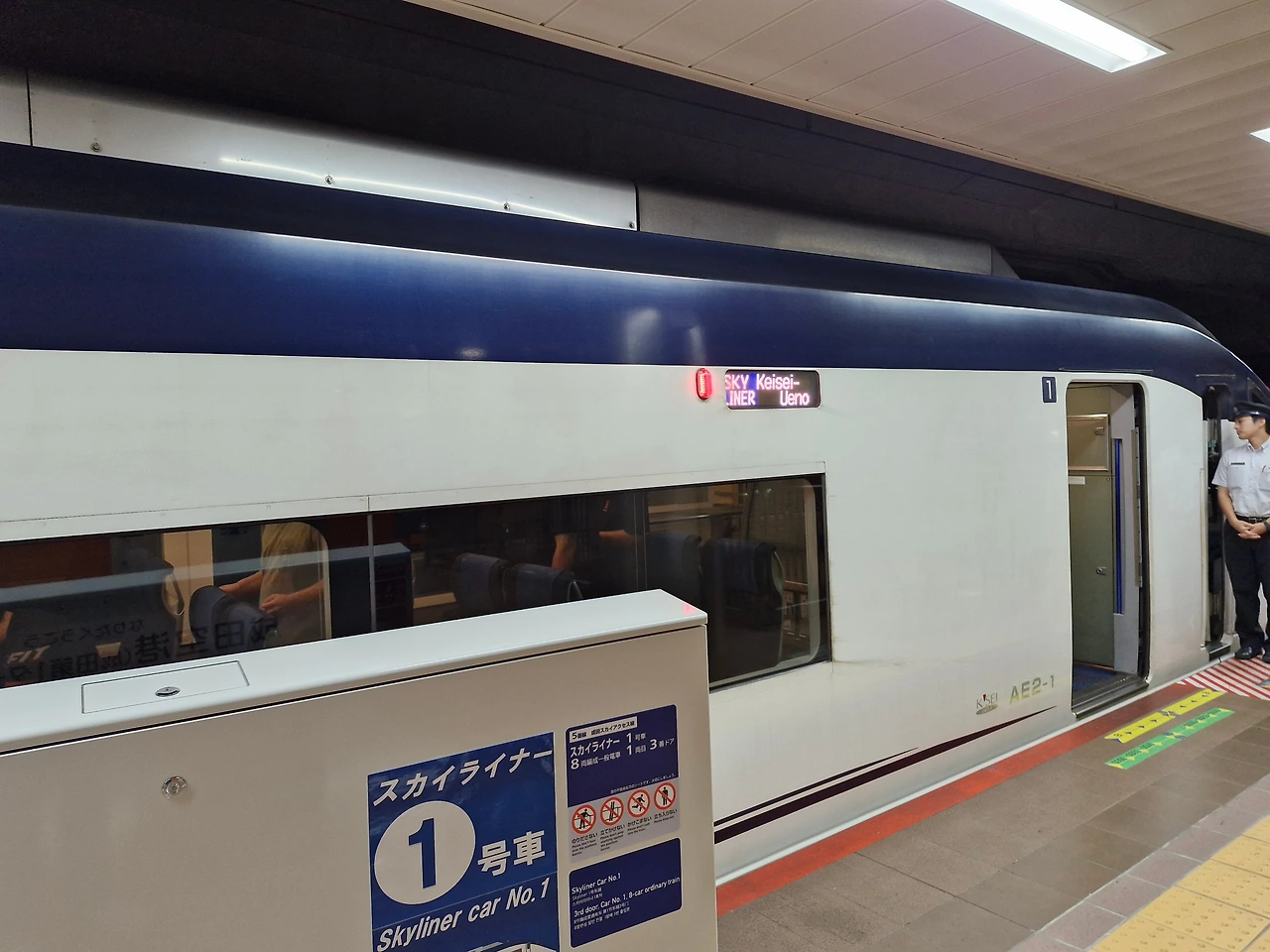 나리타 공항에 내린 후에 도쿄 중심부까지 들어가기 위해서 급행열차인 스카이라이너를 탔다.