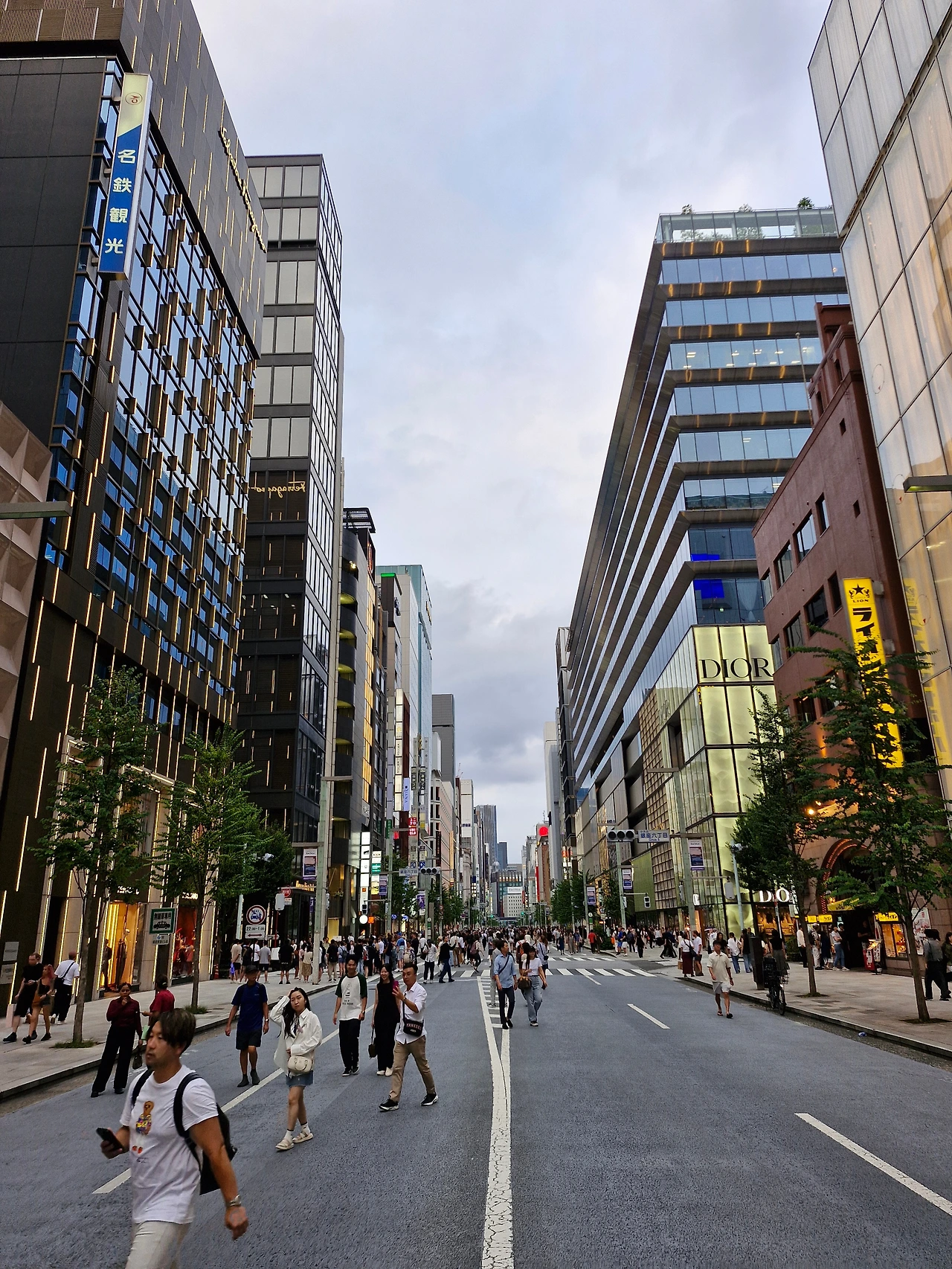 신주쿠 지역으로 가기 전에 긴자 지역을 먼저 방문하였다. 도로의 일부 구간은 자동차 운행이 제한되었는지, 현지인, 관광객들이 도로 한복판을 걸어 다녔다.