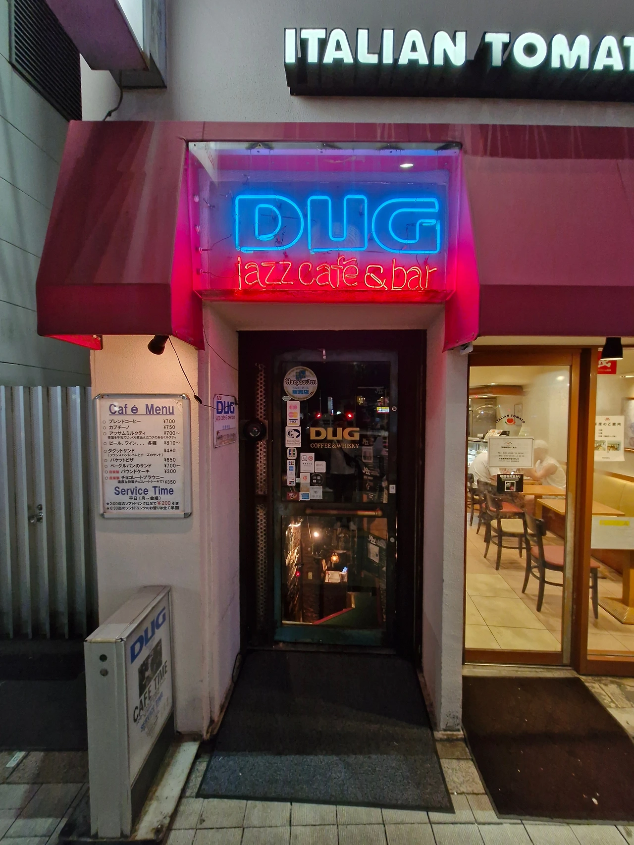 신주쿠 지역에 도착하니 날이 벌써 어두워졌다. DUG(더그)라는 간판을 발견하고는 지하로 내려갔다.