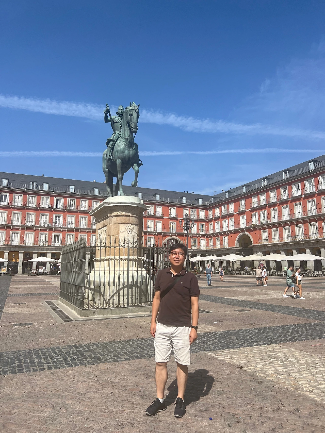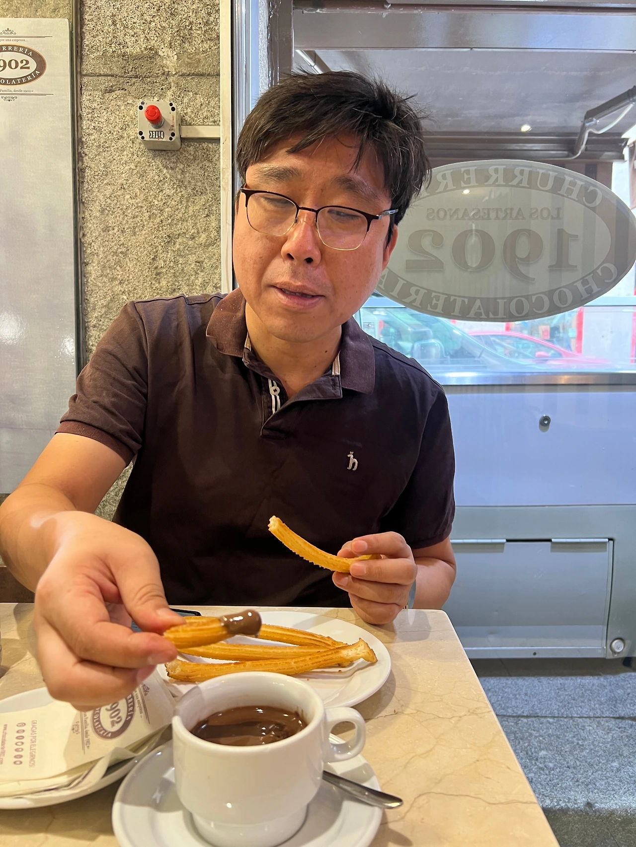 기차 타러 가기 전까지 한 시간 반 정도가 남아서, 딸과 함께 초콜릿 찍어 먹는 추러스 카페도 가보고, 젤라토 가게에서 아이스크림을 사가지고여유롭게 도심거리를 산책하였다. 스페인 브랜드로 세계적으로 유명한 의류매장들도 같이 구경해 보고 마요르 광장까지도 걸어 보았다. 36도 정도를 바라보며 올라가는 기온이어서 광장의 태양 아래에서 자세를 취하며 사진을 찍으니 무더웠다. 다행히 습도가 낮은 더위여서 불쾌하지는 않았다.
