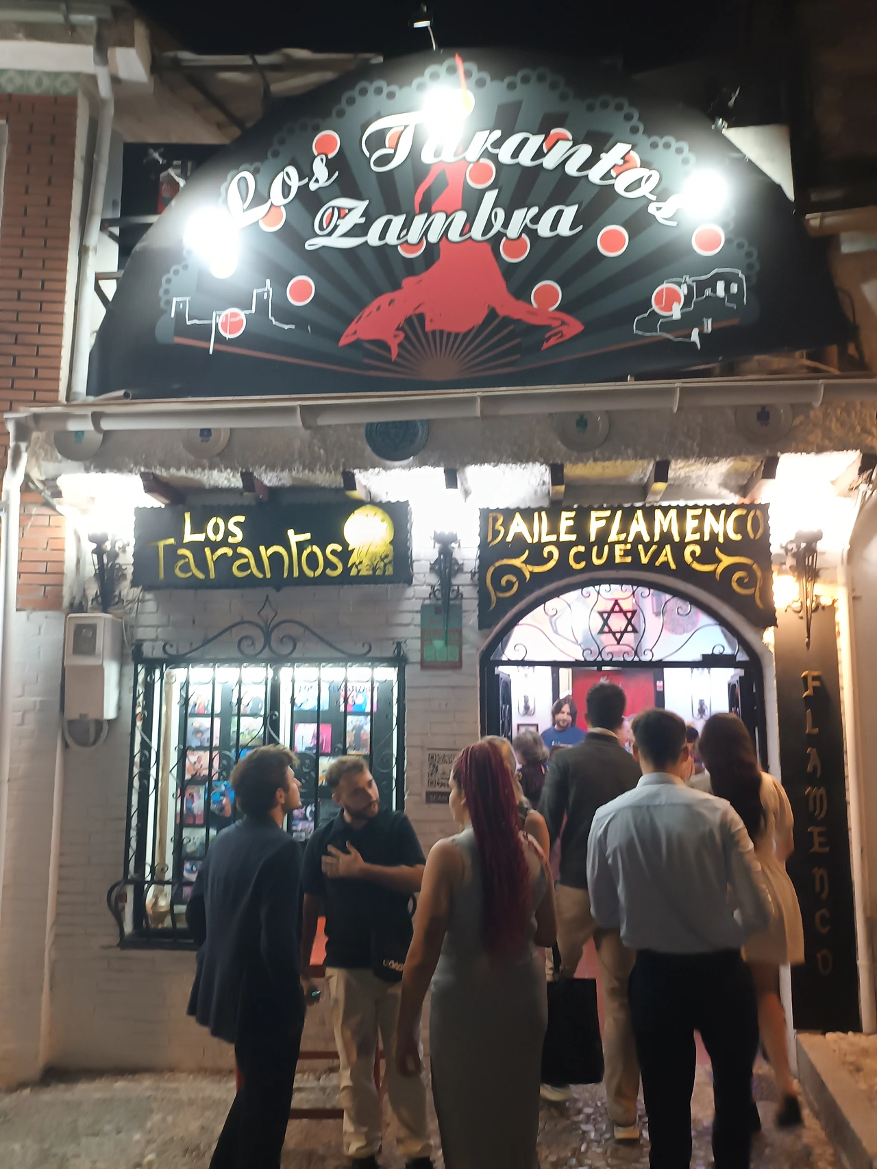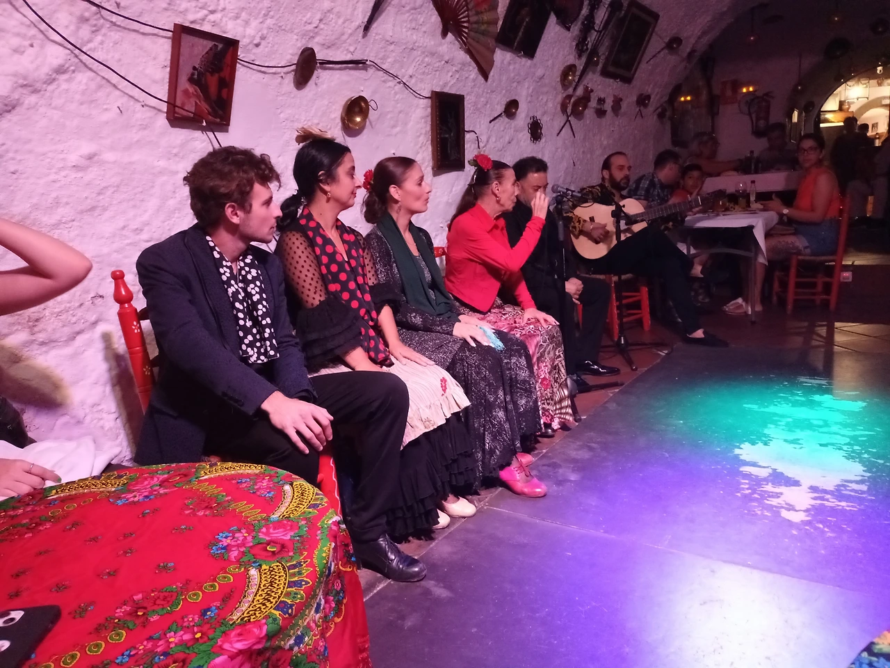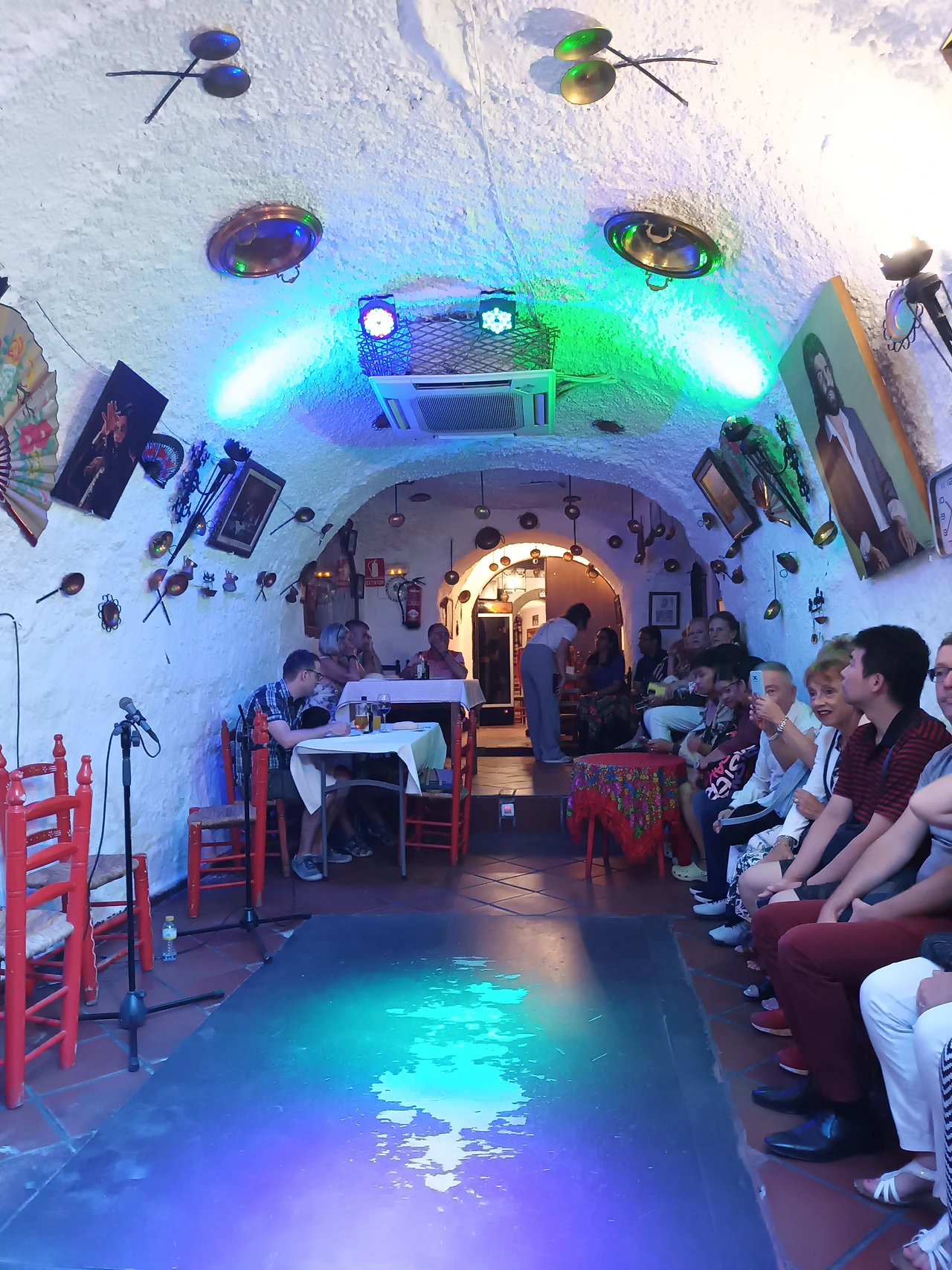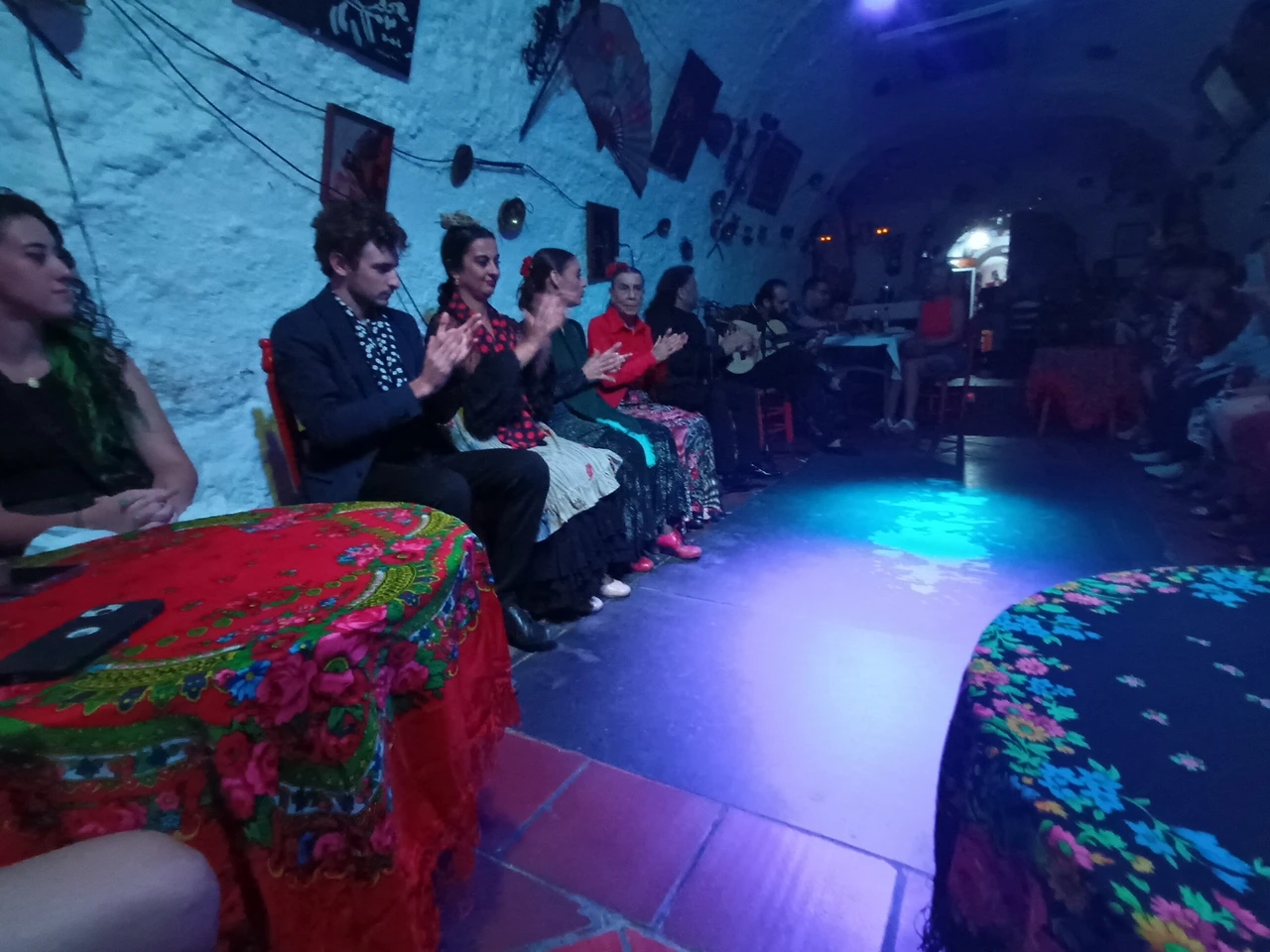 동굴에서 본 플라멩코는 공연자와 관중의 거리가 굉장히 가깝다는 것이 특징이다. 기타 연주자 한 명, 가수 한 명, 댄서들 세 명이서 한 시간 동안 플라멩코가 무엇인지를 보여 주었다. 동굴 플라멩코는 다른 공연장의 예술가들에 비해서는 약간 투박한 맛이 느껴졌지만, 집시들의 요소를 더 맛볼 수 있지 않았을까 생각이 든다. 빠르고 강렬한 플라멩코 기타 소리가 연속적으로 들리면서, 그 위에 가수의 아랍적인 풍이 느껴지는 노래에 맞춰서 댄서들은 슬픈 듯 비장한 듯 보이는 눈빛으로 빠르고 강한 구둣발 소리를 내며 춤을 춘다. 가수와 앉아 있는 다른 댄서들은 손바닥을 쳐서 비트를 만들며 무희의 춤에 맞춰 준다. 손뼉 리듬은 일률적이지 않고 음악과 춤의 전개과정에서 다양하게 바뀌고 있었다. 와인 한잔을 마시며 보는 플라멩코는 더욱 보는 이의 느낌을 쏟아 오르게 하였다.