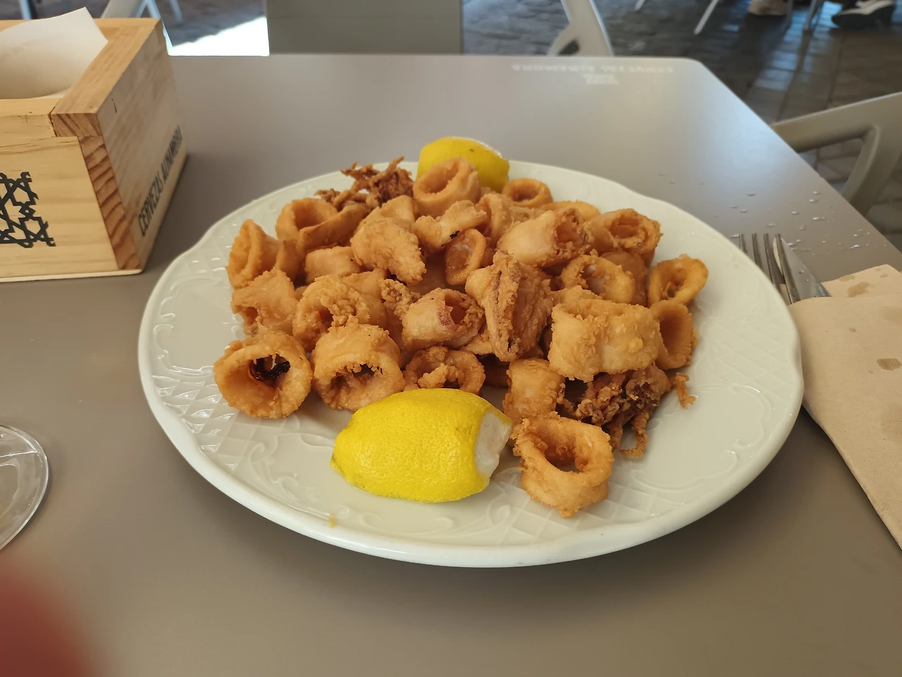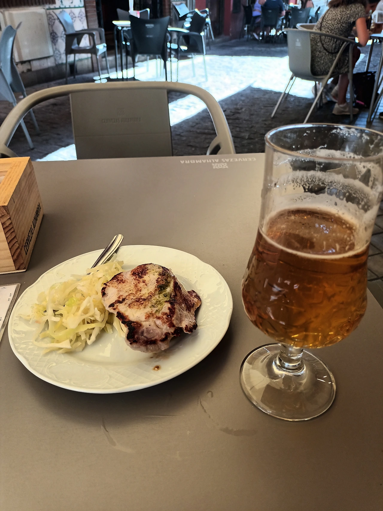 호텔 직원이 가르쳐 준 레스토랑 밀집지역으로 15분 정도 걸어갔다. 오후 2시부터 5시까지 식당, 카페들이 문을 닫고 그 이후에 다시 여는 곳이 많기 때문에, 나는 그나마 문을 연 가게들을 이리저리 기웃거리다가 웨이터가 나에게 먼저 말을 걸어 준 레스토랑의 노천 테이블에 앉았다. 맥주 한 병을 시키면 안주 같은 타파스 한 접시가 공짜로 나왔다. 출국하기 삼 일 전에 치루 수술을 받고 온 터라서 술을 자제하고 있었지만 엄청난 갈증을 단순히 물이나 콜라만으로 해결이 되지 않아서 수술 후 6일째 되는 날에 맥주를 마셔 버리게 되었다. 목마름이 시원하게 해소되었다. 소금을 뿌려 구운 돼지고기 한 조각과 양배추가 놓인 타파스 한 접시를 폭풍 흡입해 버렸다. 타파스는 원래는 식사 시간 전에 먹는 간소한 음식이기 때문에 양이 작은 편이다. 웨이터의 추천을 받아서 오징어 튀김 요리를 정식으로 시켜서 레몬을 뿌려 먹으며 한 시간 넘게 멍하게 앉아 있다가 호텔로 돌아왔다.