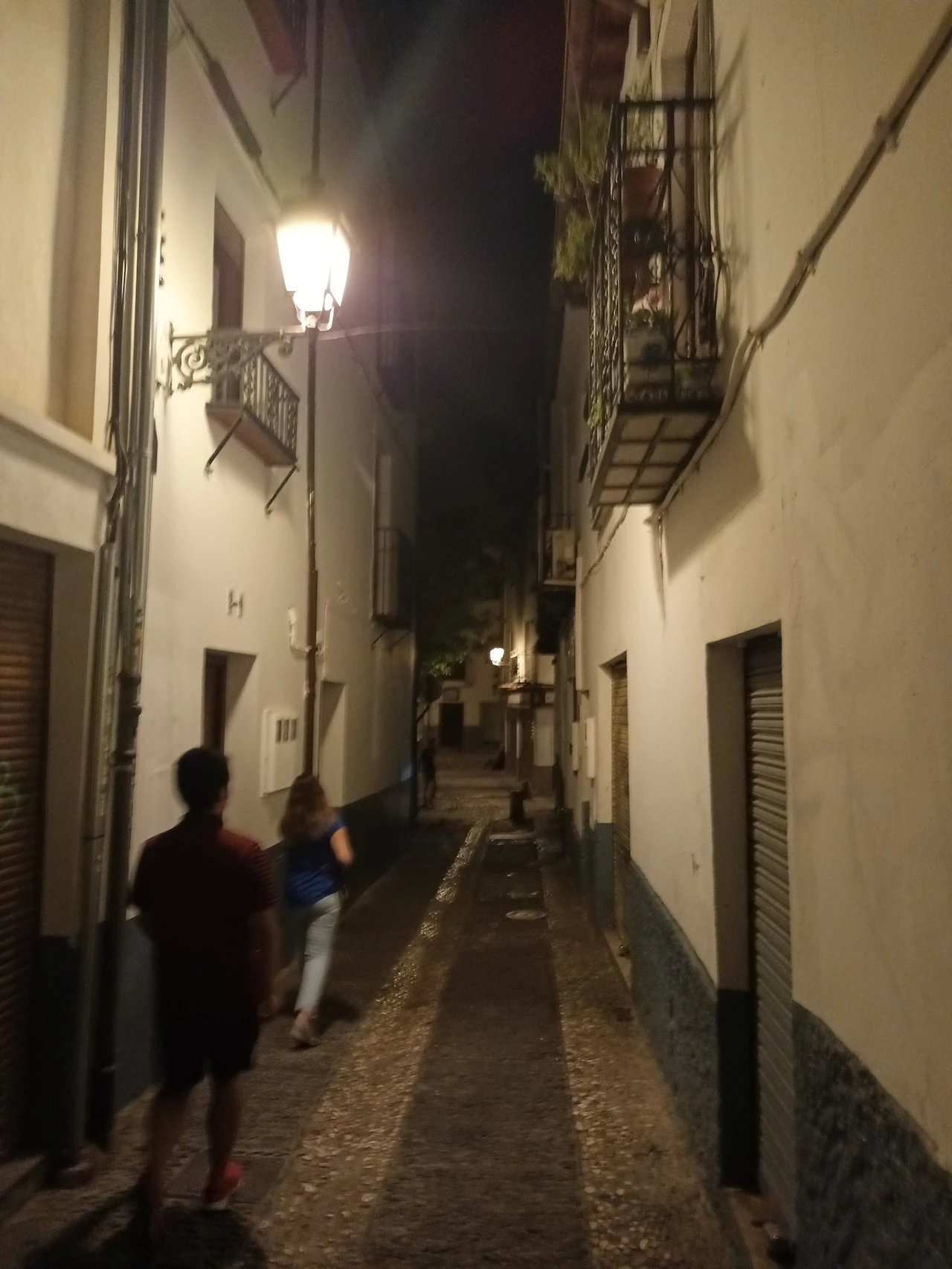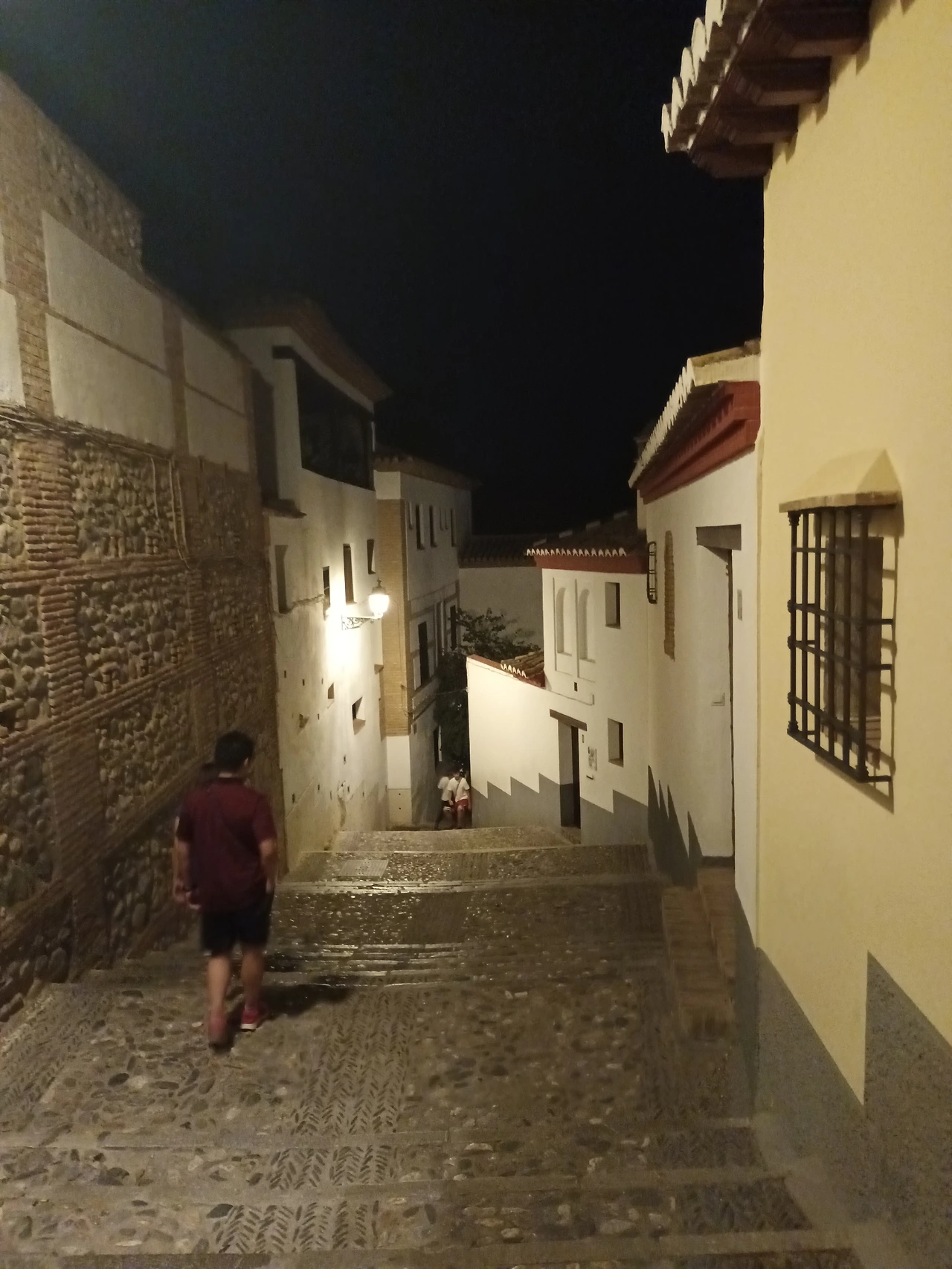 호텔에 와서는 지친 몸을 더운물이 담긴 욕조에 담갔다. 욕조가 딸린 화장실이 있는 게 너무 감사하게 생각되었다. 욕조에서 몸을 움직였는지, 깜짝 놀라며 잠을 깨었다. 시간이 많이 지난 것 같은데, 다행히 밤에 예약해 놓은 플라멩코 공연시간까지는 한 시간 정도 남아 있었다. 한국의 여행 프로그램에도 소개된 적이 있는 동굴 플라멩코 공연을 보기로 했다. 산 중턱의 동굴을 개조하여 플라멩코 공연장을 만든 곳인데, 옛날에는 집시들이 실제로 살았던 곳이라고 한다. 공연장이 산중턱에 있고, 길도 낯선 밤길이어서 차량픽업 요청을 하였더니, 공연장으로 가는 중에 알람브라 궁전의 경치가 잘 보이는 언덕에 잠시 정차시켜서 동네 구경도 시켜 주었다. 아랍계 스페인인들이 주로 거주하는 지역이었다.