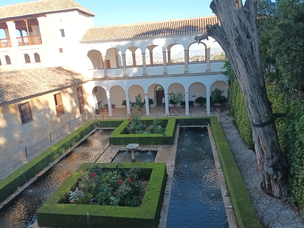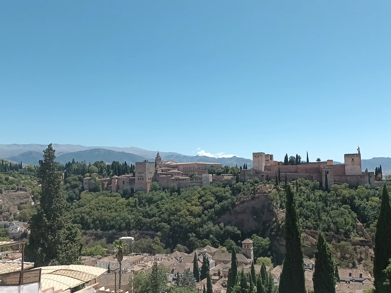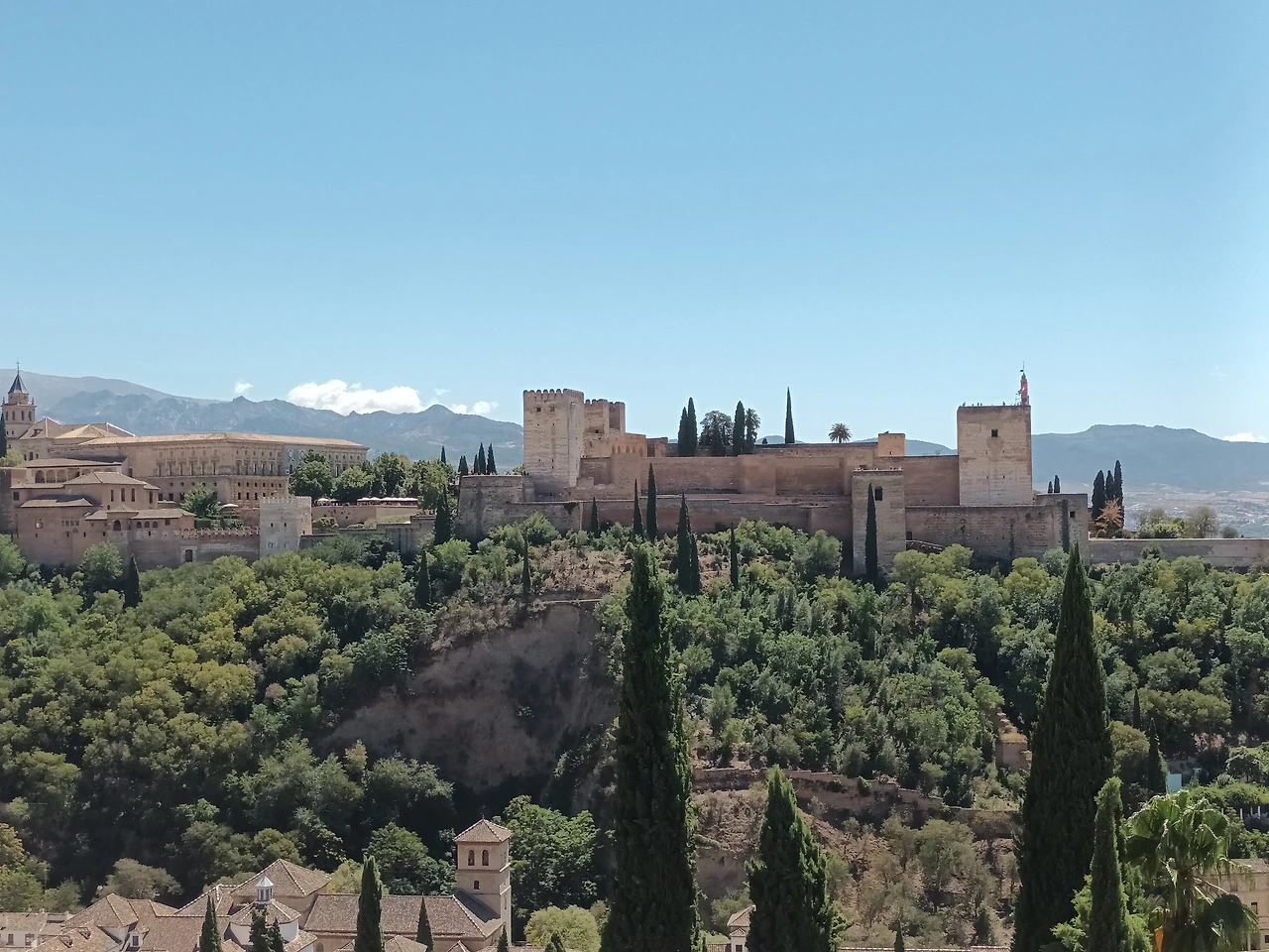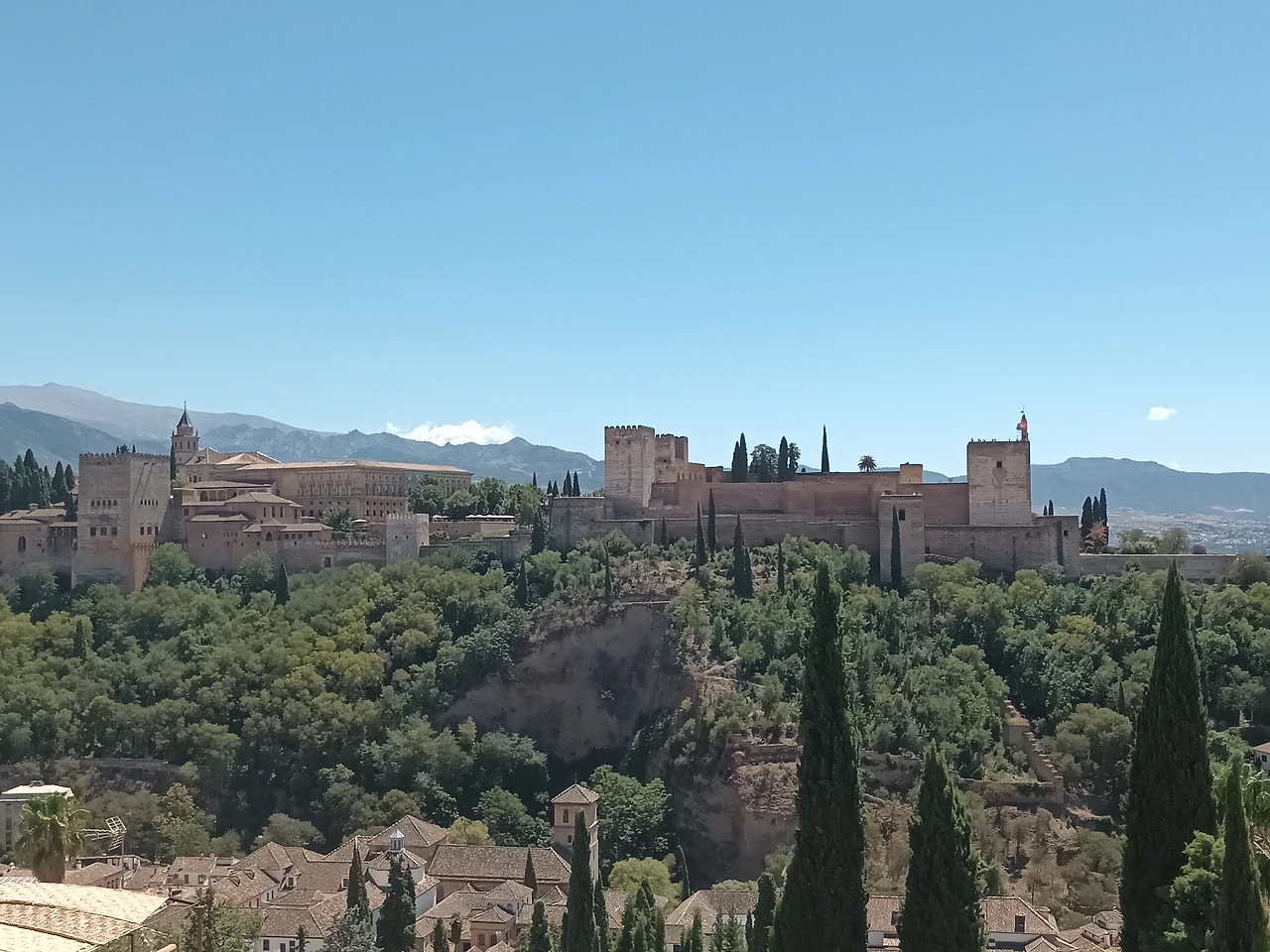 아랍왕국이 이베리아 반도에서 번성하던 시기에 알람브라가 만들어지게 되었다. 산 위에 있는 요새와 나시르 궁전, 정원 등으로 이루어진 아름다운 곳이다. 가톨릭 왕국들이 이베리아 반도에서 이슬람 왕국을 몰아내기 위한 영토수복 운동이 시작되었고, 그라나다에 남아 있던 마지막 이슬람 왕국이 가톨릭 군대에 항복함으로써 영토수복 운동은 마무리가 되었다. 마지막 술탄은 그라나다를 떠나면서 알람브라를 가톨릭 세력에게 넘겨주게 된 것을 몹시 가슴 아파했다고 한다. 이후 알람브라에는 고딕, 바로크식의 가톨릭 성당과 건축물이 곳곳에 세워졌다. 하지만 이전의 아랍적 건물들과 구조를 모두 없애는 것이 불가능했으므로 자연스럽게 이슬람과 가톨릭 문화가 자연스럽게 공존하는 형태로 남아 있게 되었다. 이슬람에서는 물이 사람의 영혼을 정화시킨다고 믿었으므로 사원 내부에는 관개시설이 잘 되어 있었다. 그래서 알람브라를 거닐면서 물소리가 많이 들려왔다. 물소리가 크지가 않고 졸졸 흐르는 소리여서 나의 마음도 정화되는 느낌이었다.