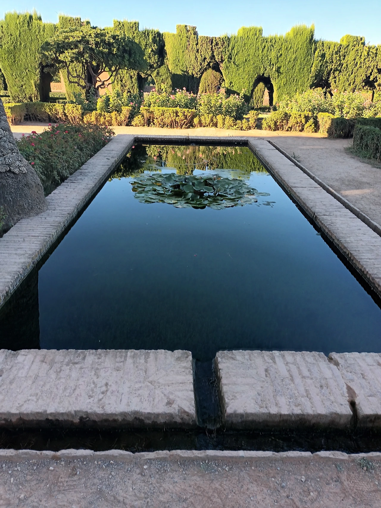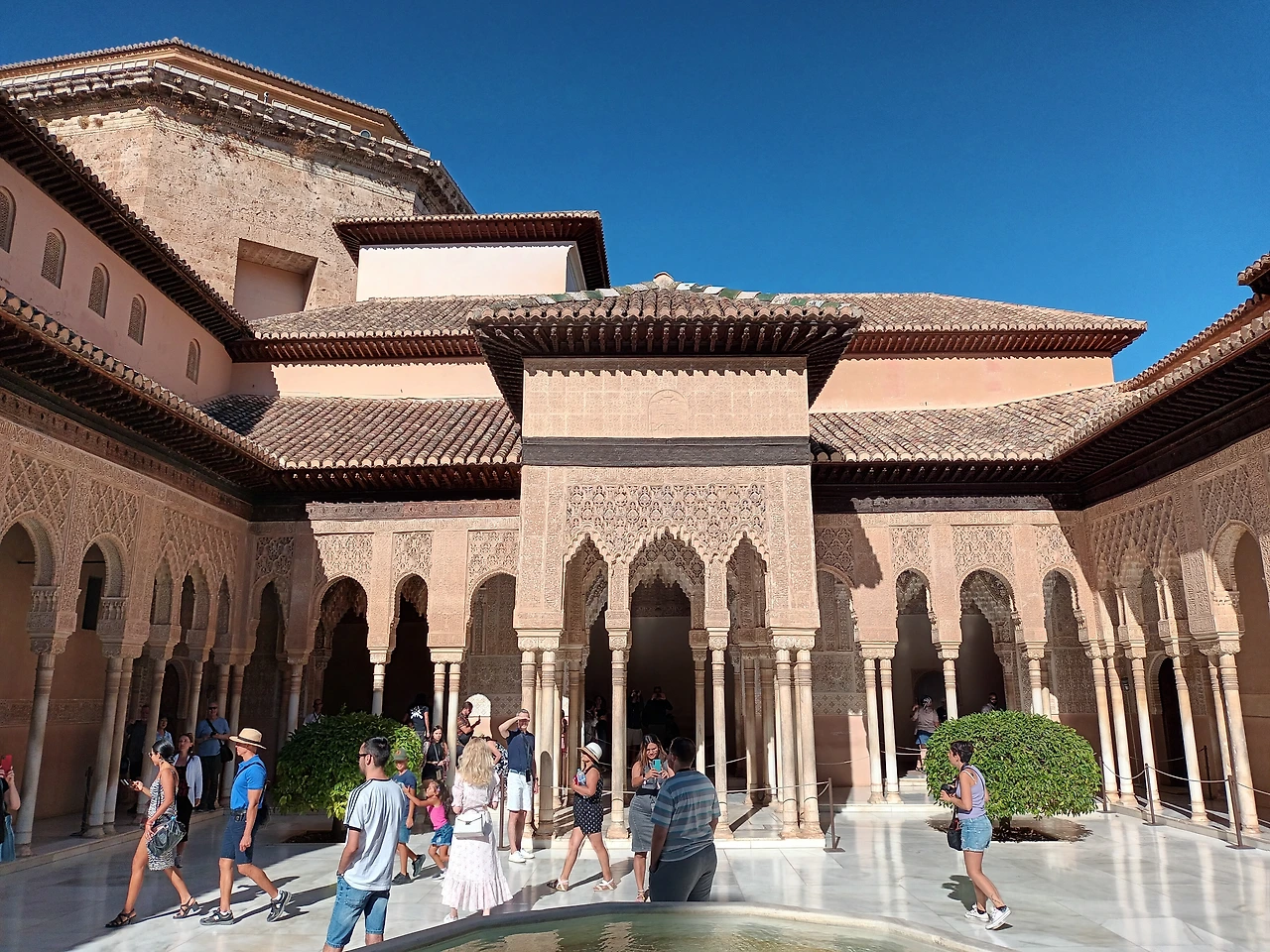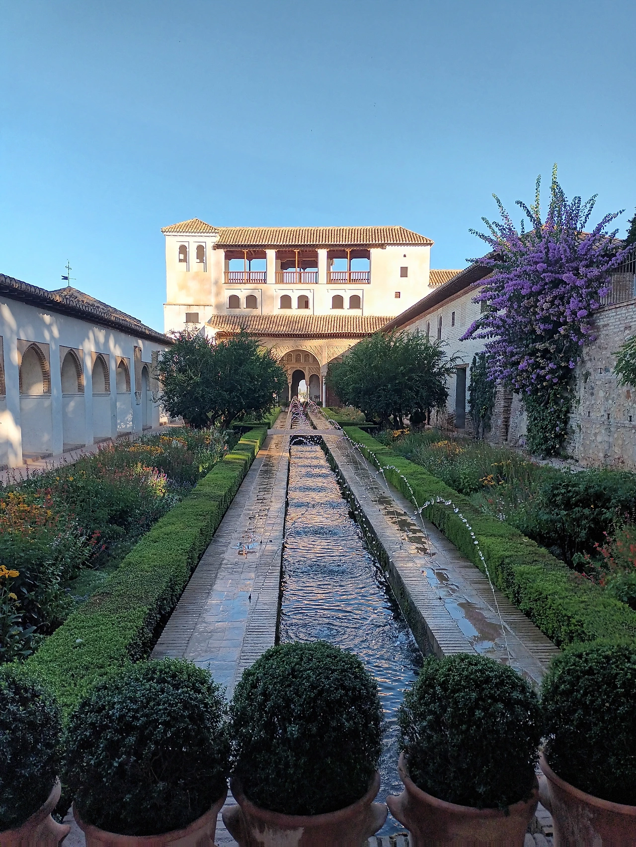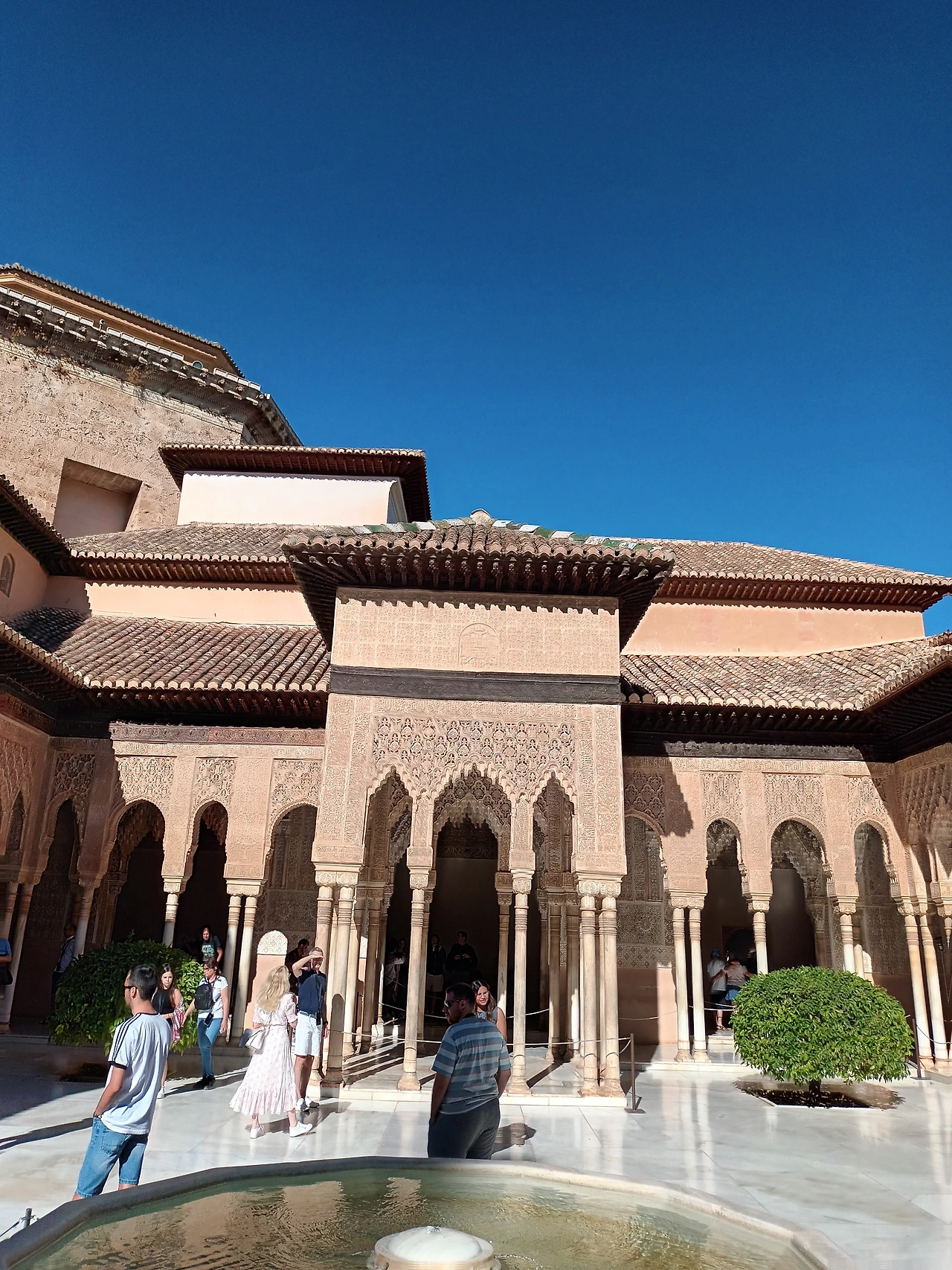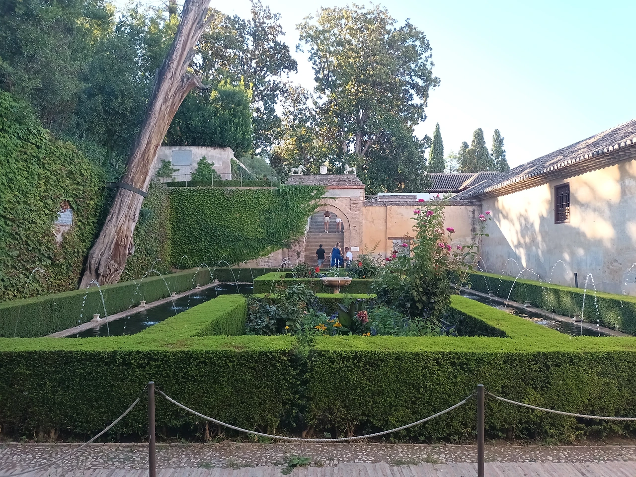 아랍왕국이 이베리아 반도에서 번성하던 시기에 알람브라가 만들어지게 되었다. 산 위에 있는 요새와 나시르 궁전, 정원 등으로 이루어진 아름다운 곳이다. 가톨릭 왕국들이 이베리아 반도에서 이슬람 왕국을 몰아내기 위한 영토수복 운동이 시작되었고, 그라나다에 남아 있던 마지막 이슬람 왕국이 가톨릭 군대에 항복함으로써 영토수복 운동은 마무리가 되었다. 마지막 술탄은 그라나다를 떠나면서 알람브라를 가톨릭 세력에게 넘겨주게 된 것을 몹시 가슴 아파했다고 한다. 이후 알람브라에는 고딕, 바로크식의 가톨릭 성당과 건축물이 곳곳에 세워졌다. 하지만 이전의 아랍적 건물들과 구조를 모두 없애는 것이 불가능했으므로 자연스럽게 이슬람과 가톨릭 문화가 자연스럽게 공존하는 형태로 남아 있게 되었다. 이슬람에서는 물이 사람의 영혼을 정화시킨다고 믿었으므로 사원 내부에는 관개시설이 잘 되어 있었다. 그래서 알람브라를 거닐면서 물소리가 많이 들려왔다. 물소리가 크지가 않고 졸졸 흐르는 소리여서 나의 마음도 정화되는 느낌이었다.