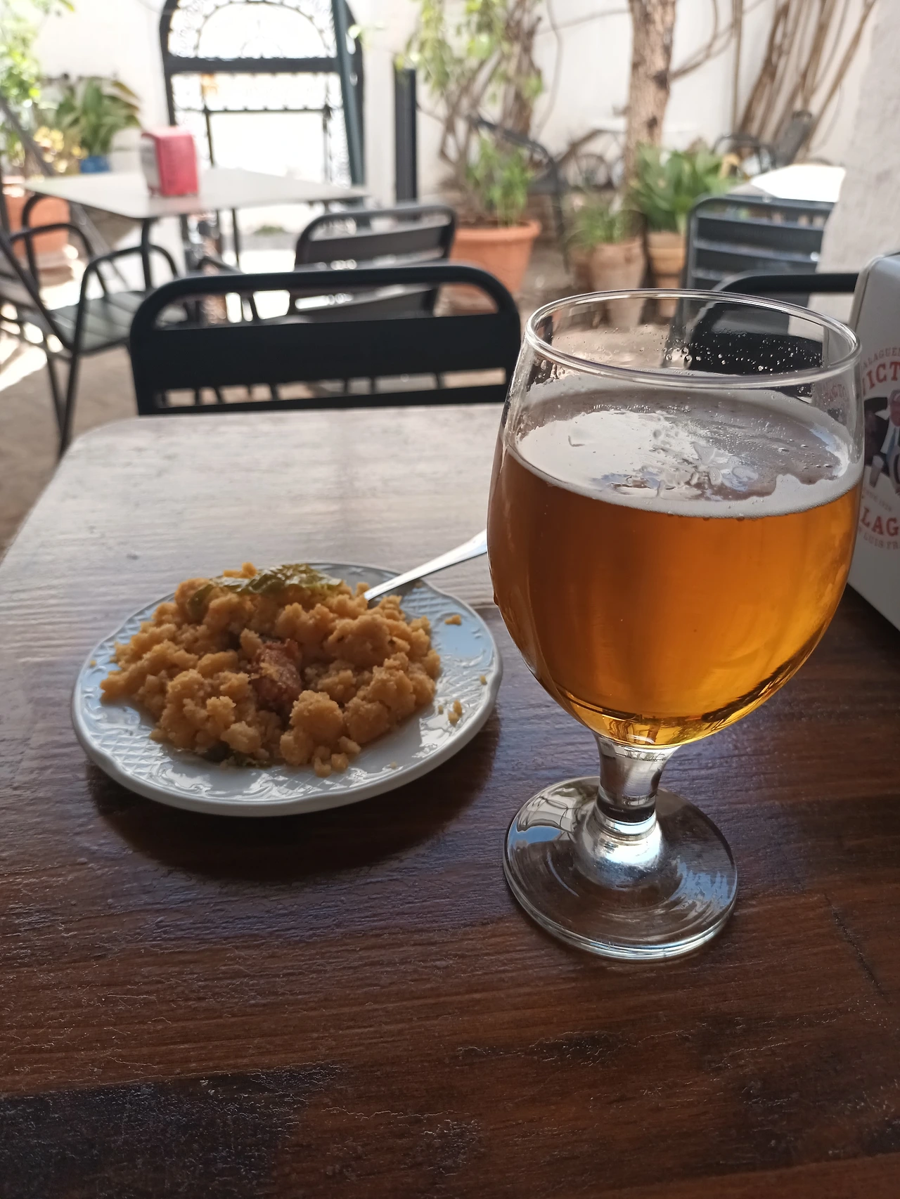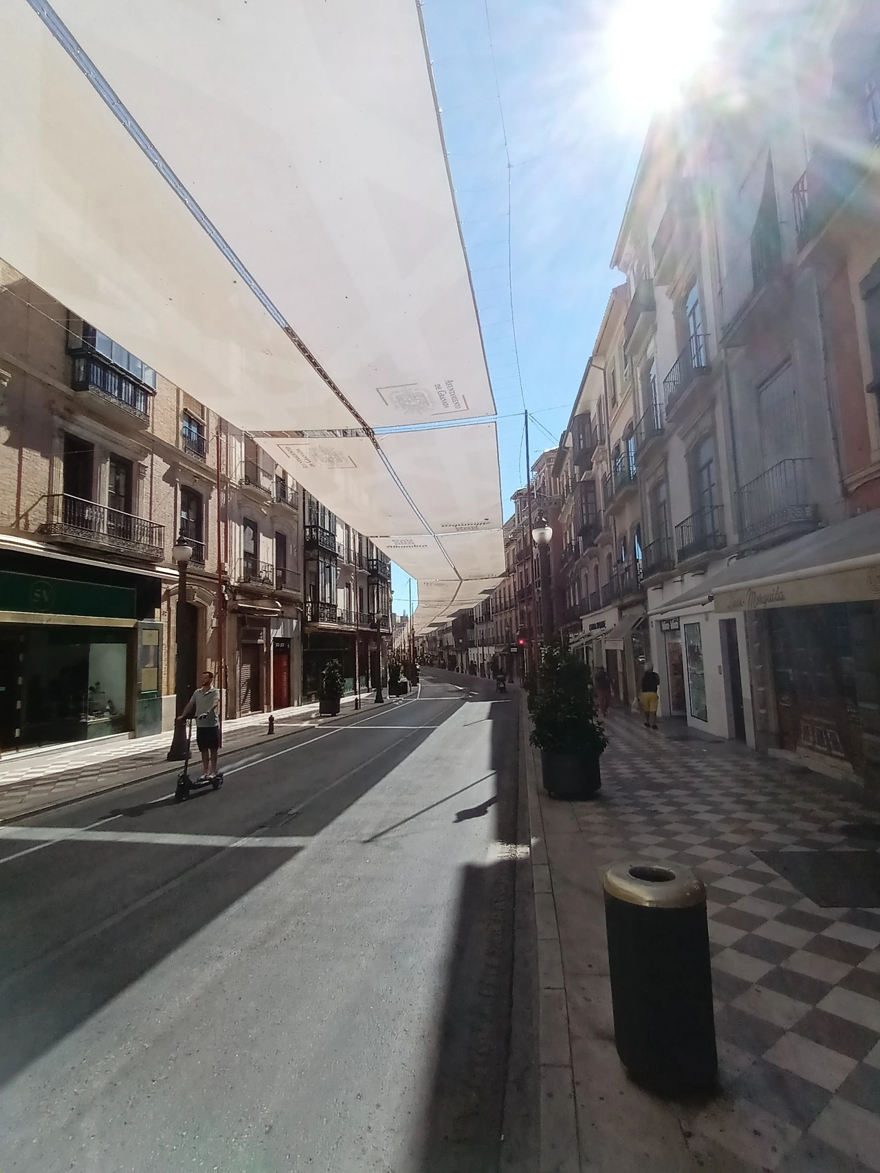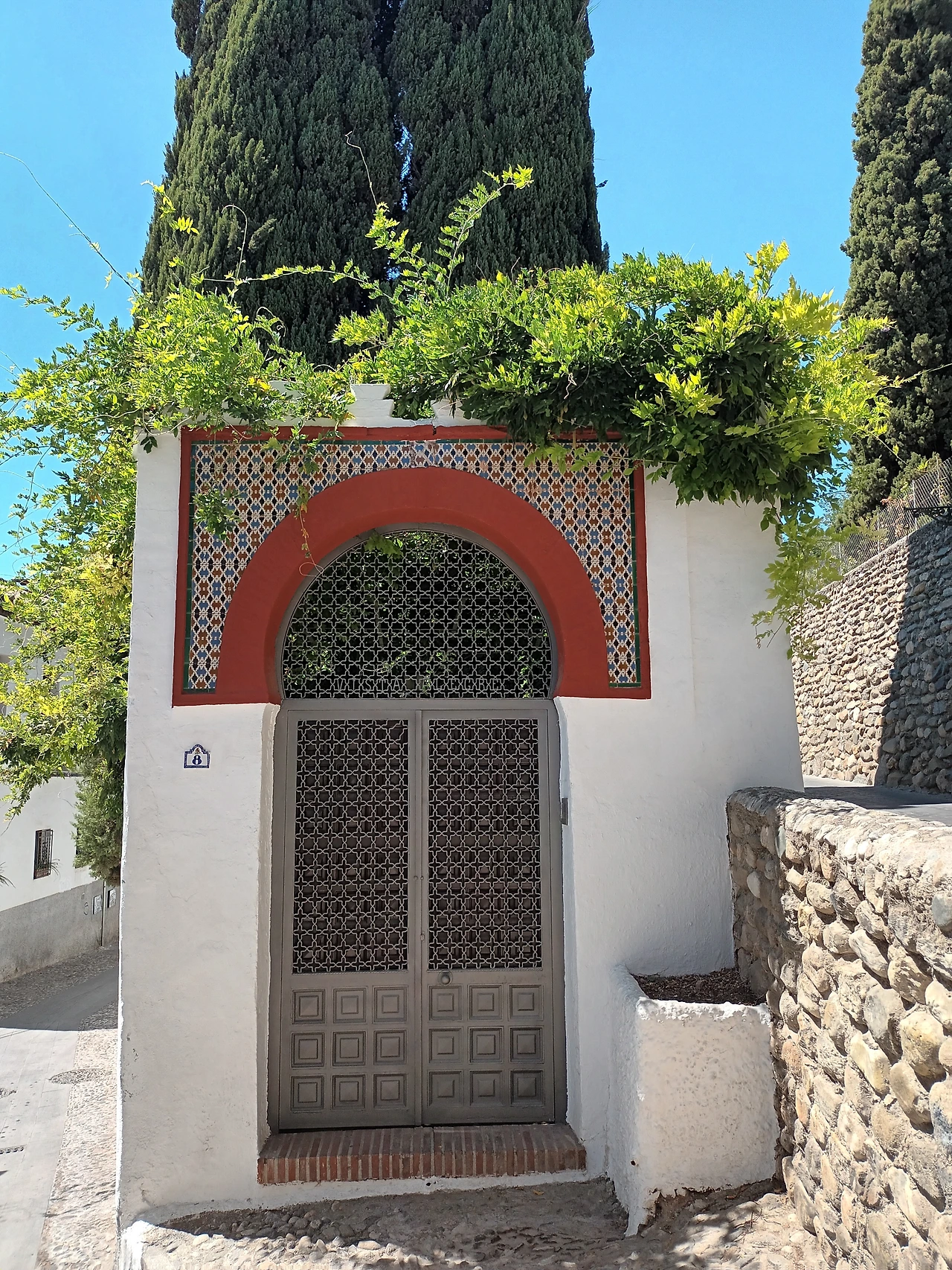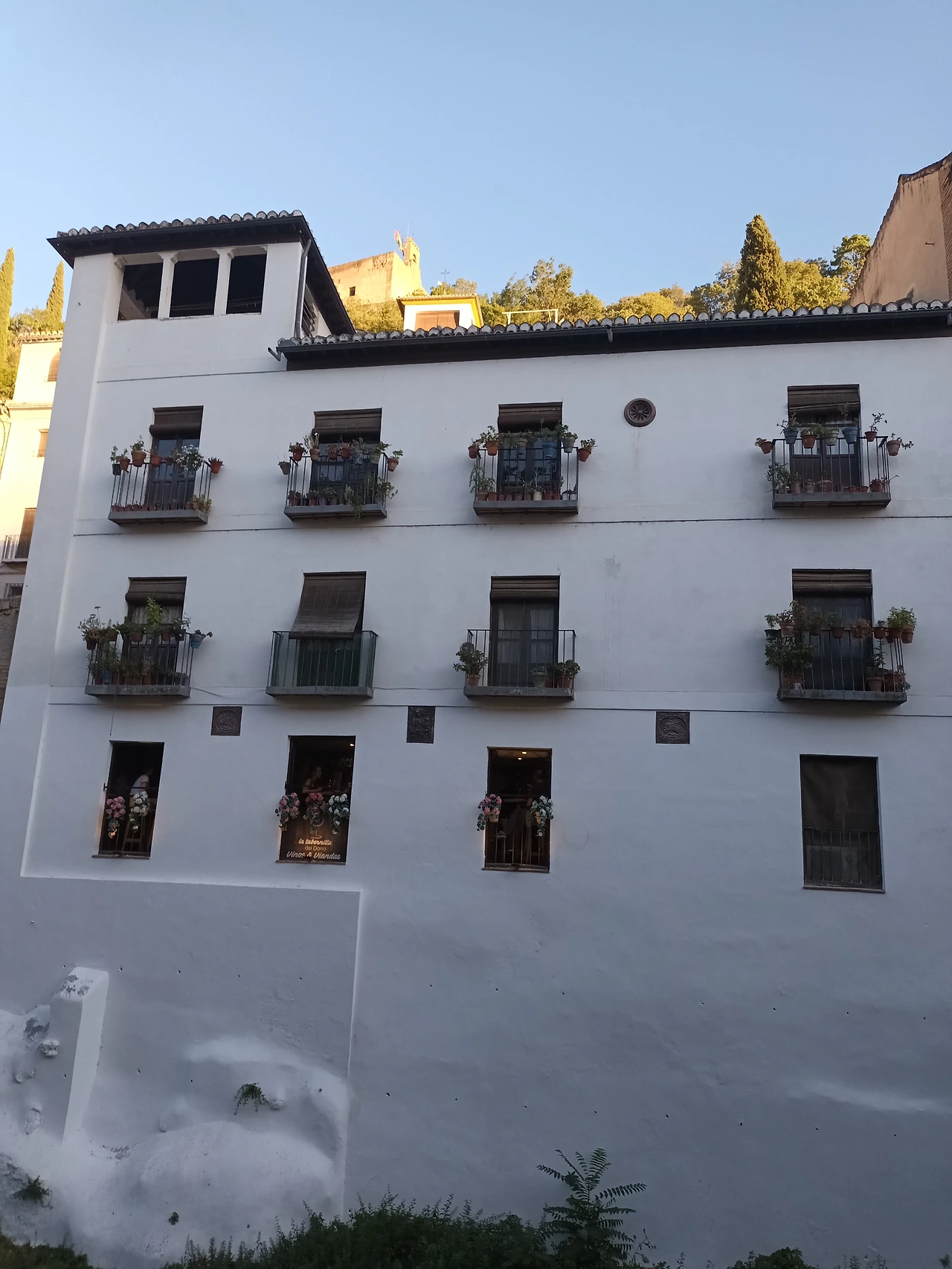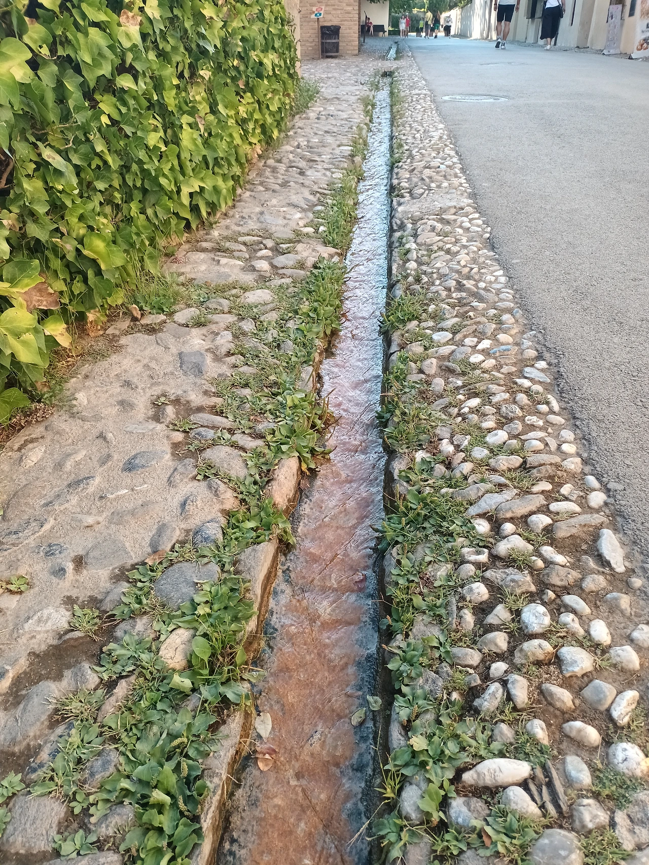 알람브라 궁전을 나온 후에는 아침에 올라왔던 길과는 다른 길로 내려갔다. 경사가 급한 내리막길도 있었는데, 안내판의 설명을 보니, 꽤 오래전에 생긴 길인 것 같았다. 하천 위에 있는 조그만 다리를 건너가 보니, 어젯밤에 왔던 동굴 플라멩코 공연장과 알람브라 궁전의 전경을 봤던 전망대가 근처에 있는 것 같았다. 전망대는 여기서 약 20분 정도 도보로 더 올라가야 해서, 올라가는 길에 타파스 바에 들어가서 40분 정도 맥주와 타파스로 휴식과 요기를 하다가 나와서 전망대까지 오르막 골목길을 따라 올라갔다.