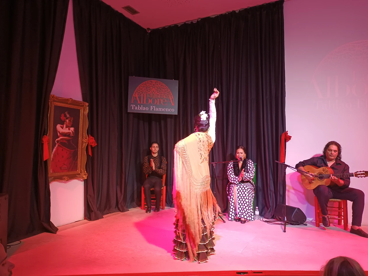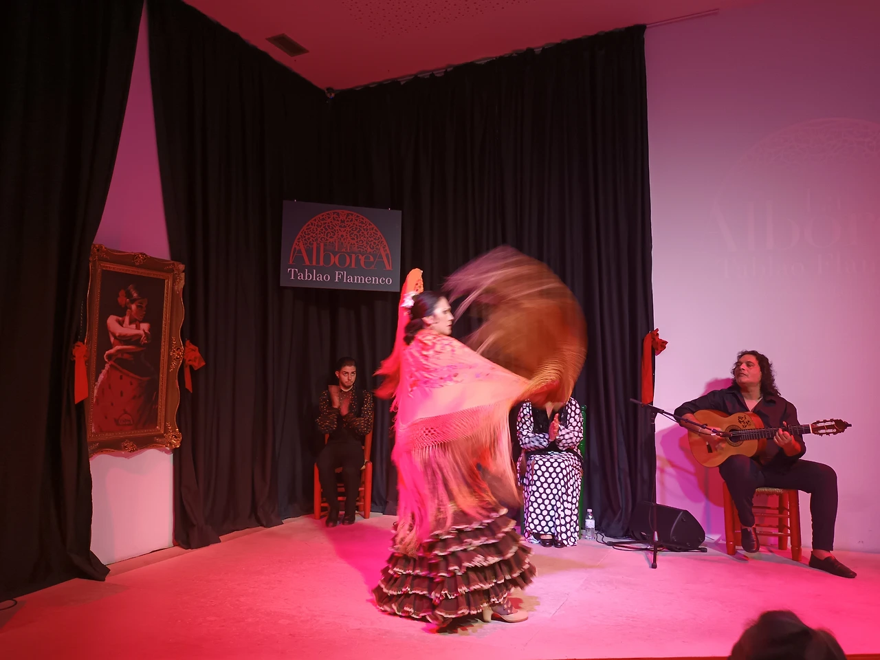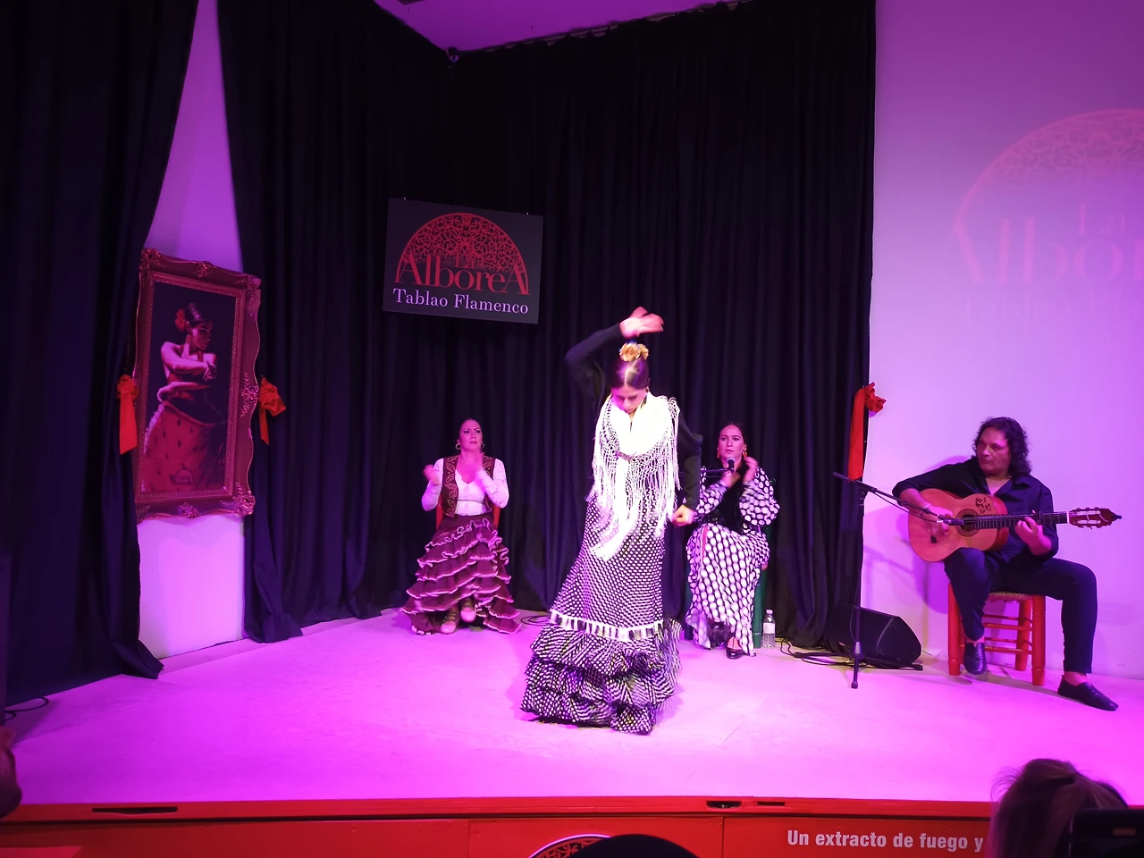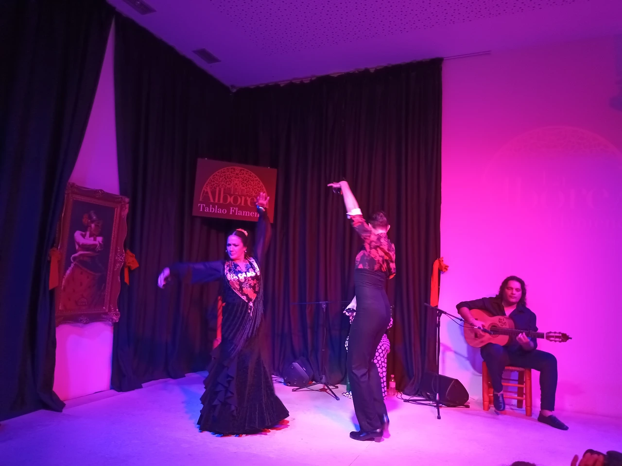 오늘 밤에 간 플라멩코 공연장인 '라 엘보레아'(La Alborea)는 아담한 규모의 객석이 갖춰진 장소였으므로 가까이에서 공연자의 눈빛, 몸의 움직임, 격렬하고 빠른 발놀림을 볼 수 있었고, 기타 연주자의 화려한 손놀림과 주법을 자세히 관찰할 수 있었다. 허리를 꼿꼿하게 세우고 추는 춤의 동작에서 절도 있는 플라멩코의 분위기를 느낄 수 있었다. 춤을 출 때는 스텝과 비트가 중요한데, 플라멩코 춤의 경우에는 화려한 구둣발 놀림으로 이 두 요소를 충족시키고 있었다. 기타 연주자와 가수, 그리고 본인은 춤을 추고 있지 않지만 박수로 장단을 맞춰 주며 한 번씩 "올레~'라고 외치며 추임새를 넘는 다른 댄서들도 지금 춤을 추고 있는 사람의 발을 계속 쳐다보고 있었다. 그만큼 플라멩코의 발동작은 아주 중요한 요소라는 것을 이해할 수 있었다. 댄서의 눈빛, 표정은 슬픈 듯, 진지한 듯, 강렬한 듯, 이 모든 것을 다 가지고 있었으며 춤경력만으로만 다 표현하기는 어렵고 그동안 살아온 인생의 희로애락을 다 보여주는 듯했다. 플라멩코는 좀 인생을 어느 정도 산 댄서가 춰야 더욱 맛이 살아날 것 같았다.