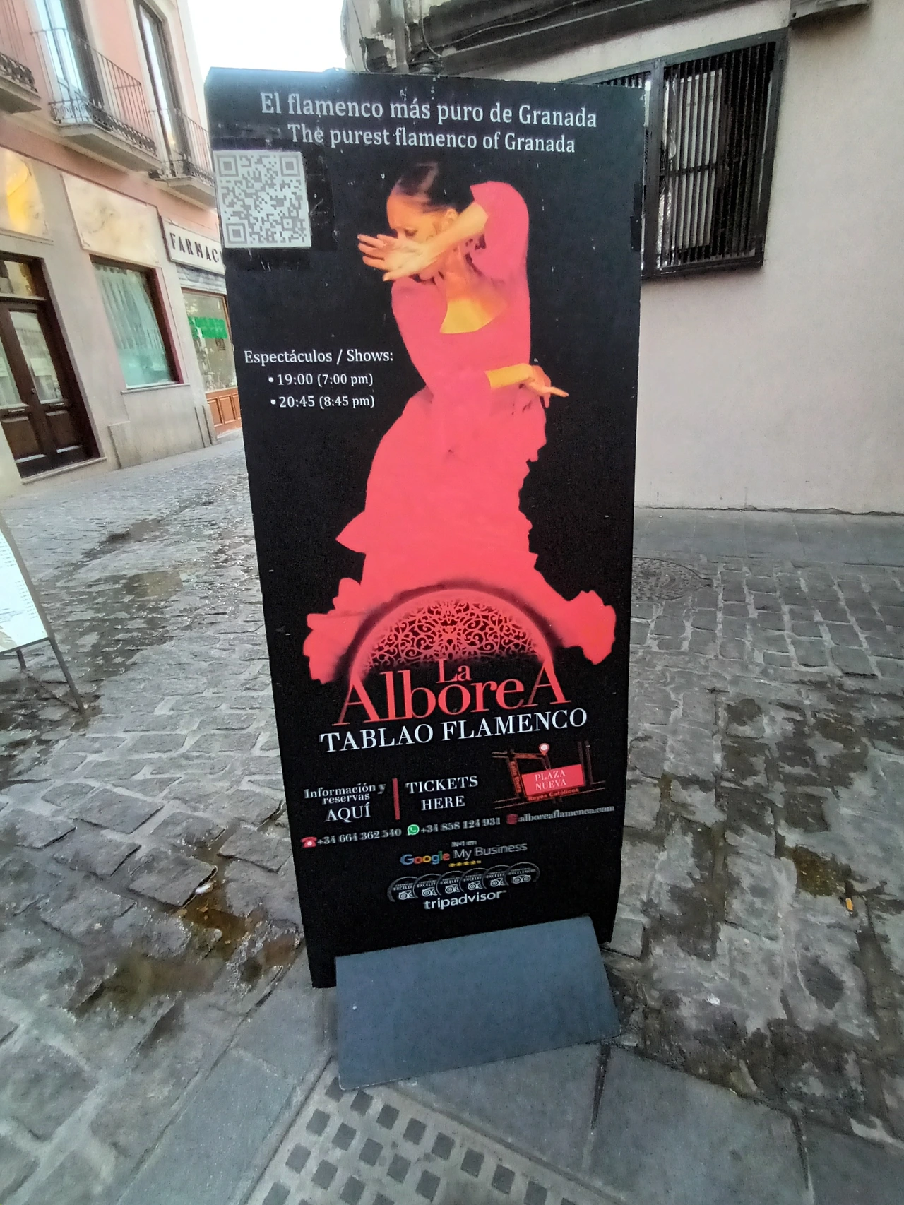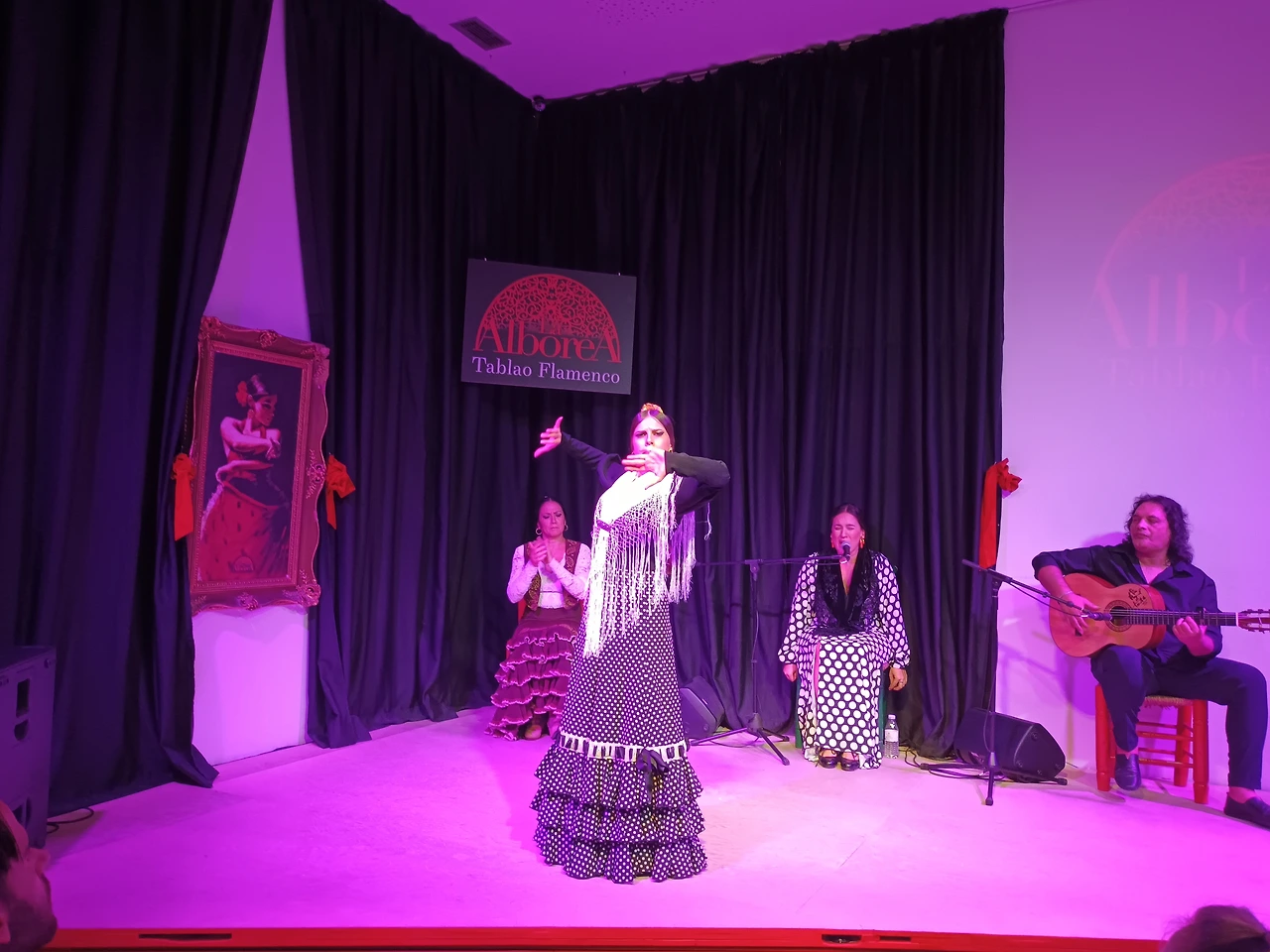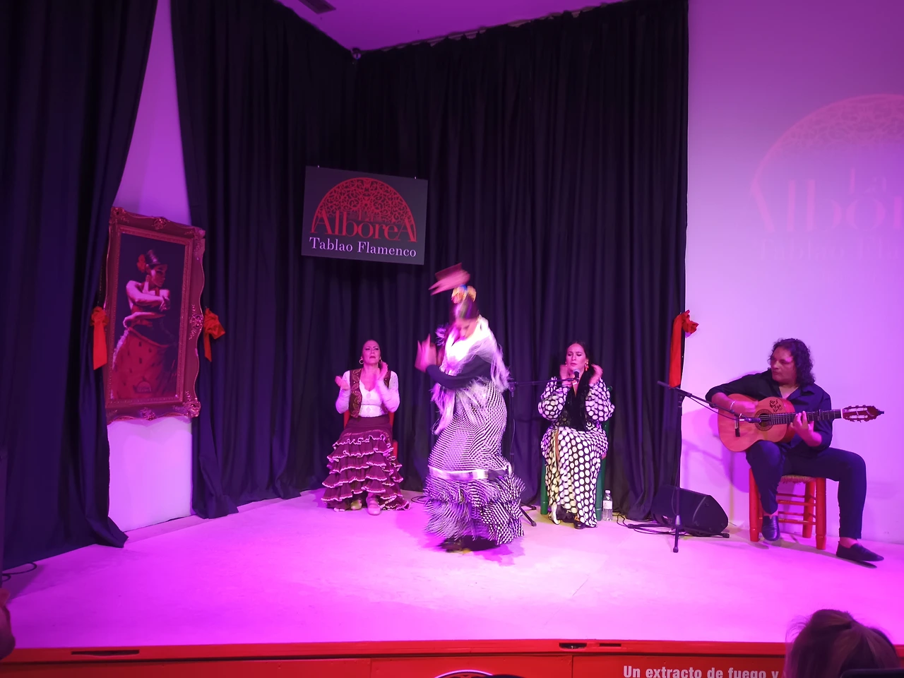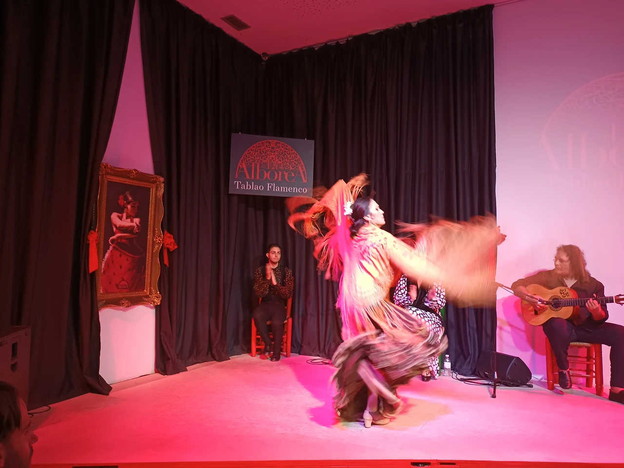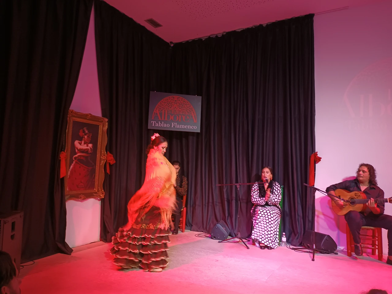 오늘 밤에 간 플라멩코 공연장인 '라 엘보레아'(La Alborea)는 아담한 규모의 객석이 갖춰진 장소였으므로 가까이에서 공연자의 눈빛, 몸의 움직임, 격렬하고 빠른 발놀림을 볼 수 있었고, 기타 연주자의 화려한 손놀림과 주법을 자세히 관찰할 수 있었다. 허리를 꼿꼿하게 세우고 추는 춤의 동작에서 절도 있는 플라멩코의 분위기를 느낄 수 있었다. 춤을 출 때는 스텝과 비트가 중요한데, 플라멩코 춤의 경우에는 화려한 구둣발 놀림으로 이 두 요소를 충족시키고 있었다. 기타 연주자와 가수, 그리고 본인은 춤을 추고 있지 않지만 박수로 장단을 맞춰 주며 한 번씩 "올레~'라고 외치며 추임새를 넘는 다른 댄서들도 지금 춤을 추고 있는 사람의 발을 계속 쳐다보고 있었다. 그만큼 플라멩코의 발동작은 아주 중요한 요소라는 것을 이해할 수 있었다. 댄서의 눈빛, 표정은 슬픈 듯, 진지한 듯, 강렬한 듯, 이 모든 것을 다 가지고 있었으며 춤경력만으로만 다 표현하기는 어렵고 그동안 살아온 인생의 희로애락을 다 보여주는 듯했다. 플라멩코는 좀 인생을 어느 정도 산 댄서가 춰야 더욱 맛이 살아날 것 같았다.