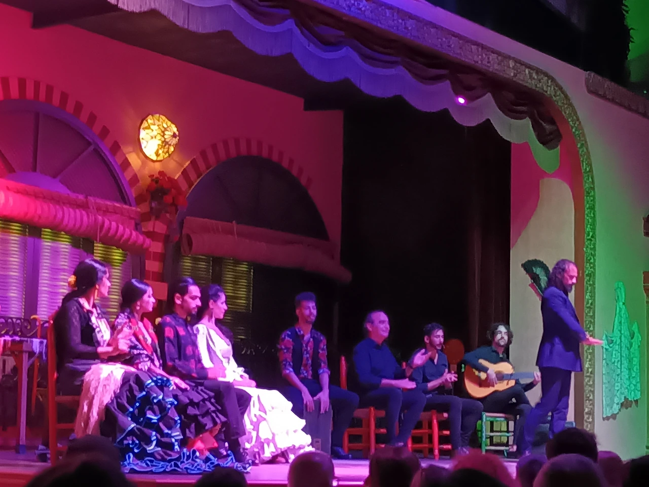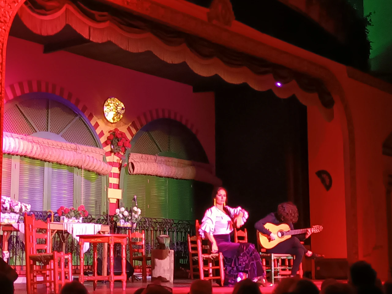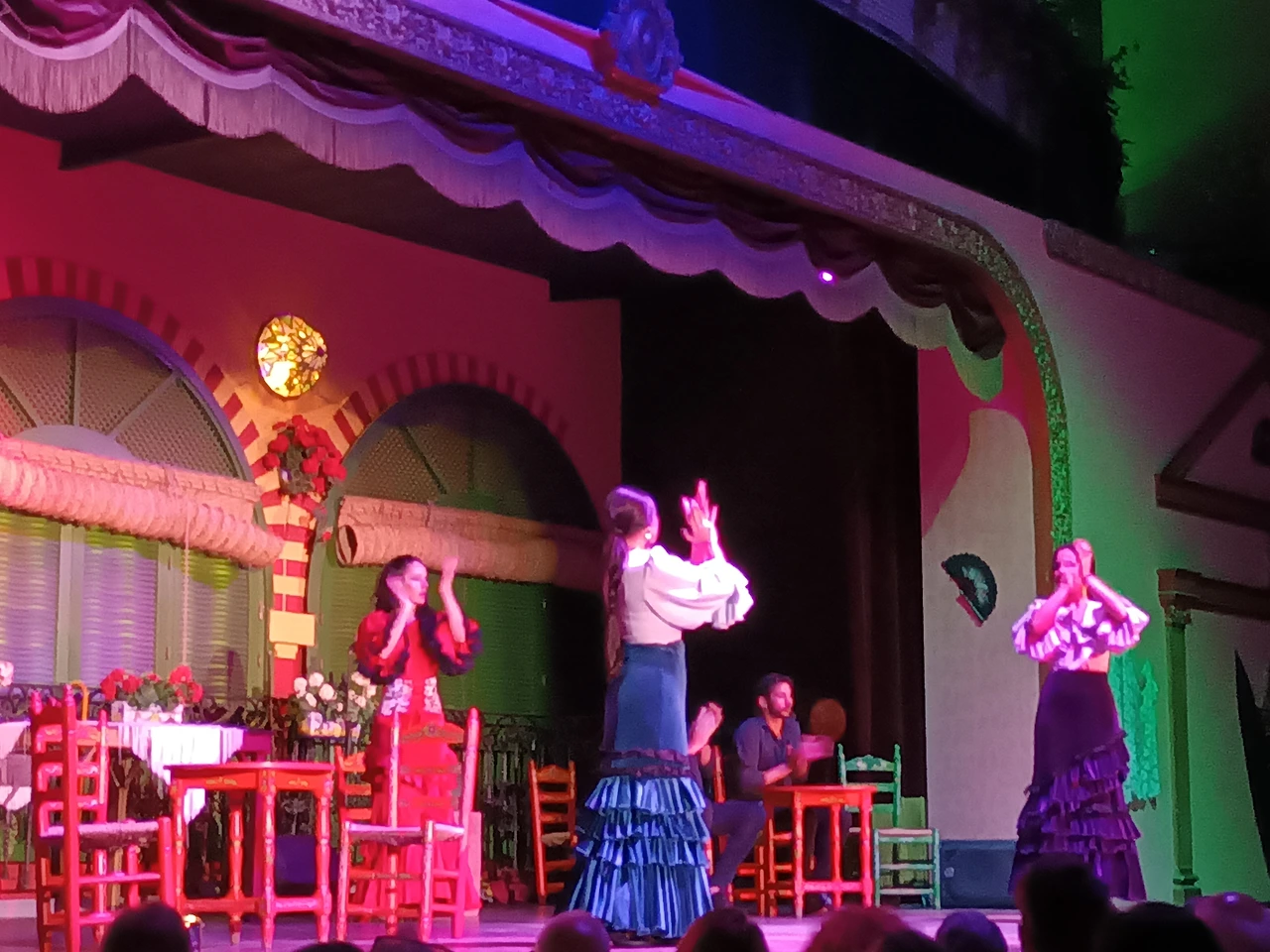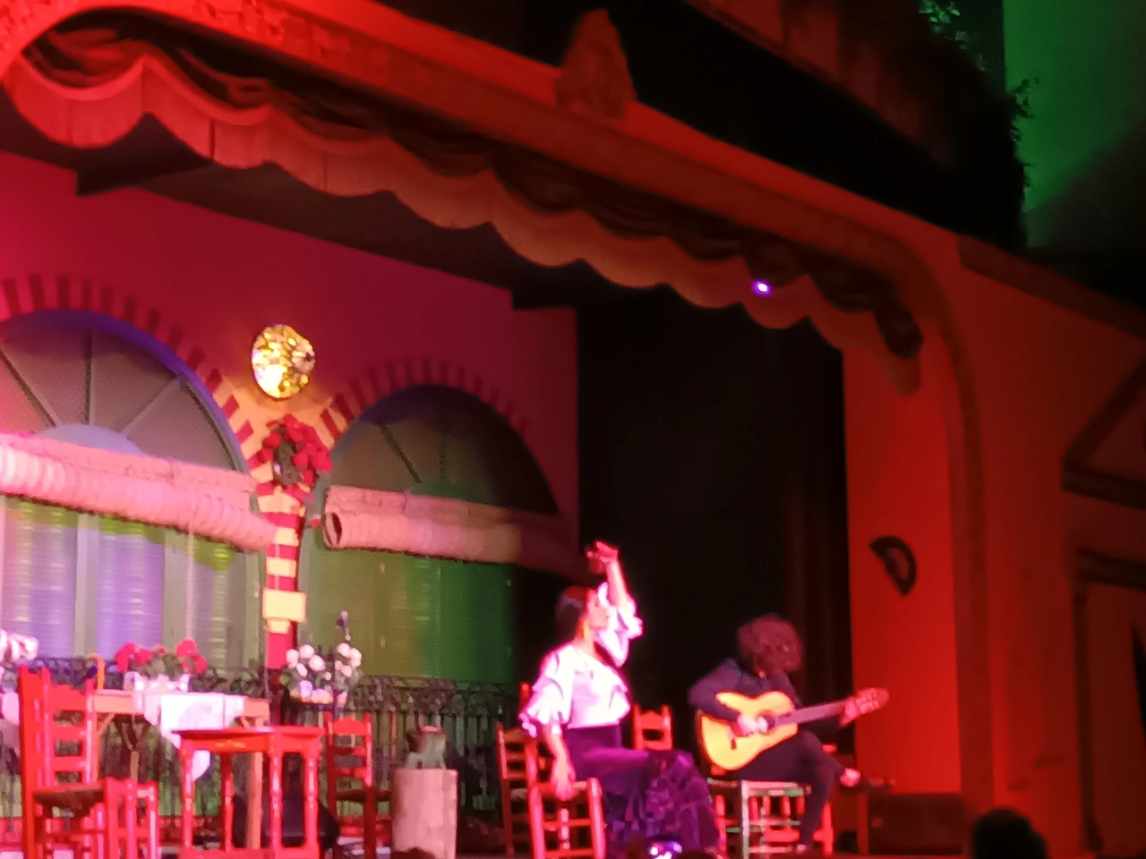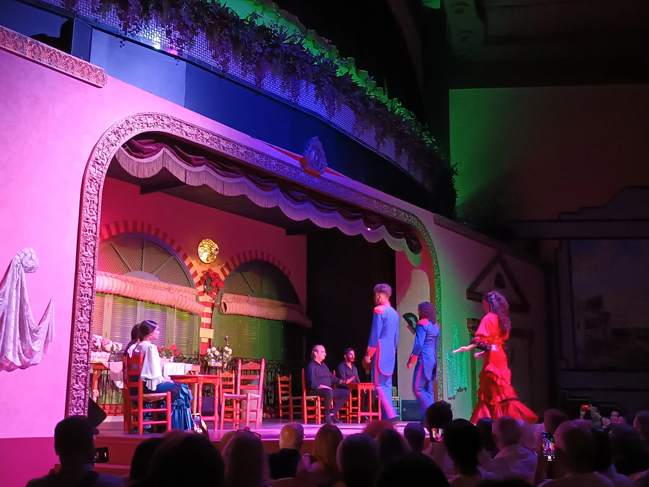 오늘 방문한 플라멩코 공연장인 '엘 팔라시오 데 안달루스'(El Palacio de Andaluz)는 그라나다에서 갔던 공연장에 비해서 대규모 극장식이었고 패키지여행으로 온 듯 보이는 한국인, 중국인, 러시아인 단체 손님들이 이미 가운데 객석 공간을 다 차지하고 있었다. 관람하기에 좋지 않은 각도이며 무대로부터 거리도 멀어서 불리한 조건에서 공연을 보았다. 극장식 공간이고 주요 손님들이 단체여행객들이어서 그런지 플라멩코를 약간 이해하기 쉽게 퓨전 형식으로 구성한 듯 느껴졌다. 플라멩코 박물관에서 알게 되었던 여러 스타일과 다양한 지방의 플라멩코를 간략하게 짜서 연이어 보여 주고 있었다. 재미가 있었던 부분은 비제의 오페라 카르멘의 일부분을 플라멩코로 재구성한 것이었다. 오페라 카르멘의 배경은 스페인의 세비야인 것을 알려 주고 싶은 제작자의 의도가 보였다. 오페라 중에서 유명한 부분인 여주인공이 부르는 아리아 '하바네라' 부분과 여주인공을 두고 남자 장교와 사랑을 경쟁하는 검투사가 등장하는 행진곡 부분을 공연에 플라멩코를 퓨전 화하여 삽입한 것이었다. 오늘 공연은 단체 손님을 겨냥한 상업적인 성격이 강했는데, 예술이란 것이 대중성을 무시하고서는 또한 살아남을 수 없으니 그 중간을 잘 파고든 공연이었다고 후하게 평가를 내려 보았다. 하지만 진정한 플라멩코를 느끼고 싶으며 또한 그것의 예술성에 더 비중을 두고 싶다면 소규모 공연장을 추천하고 싶다.