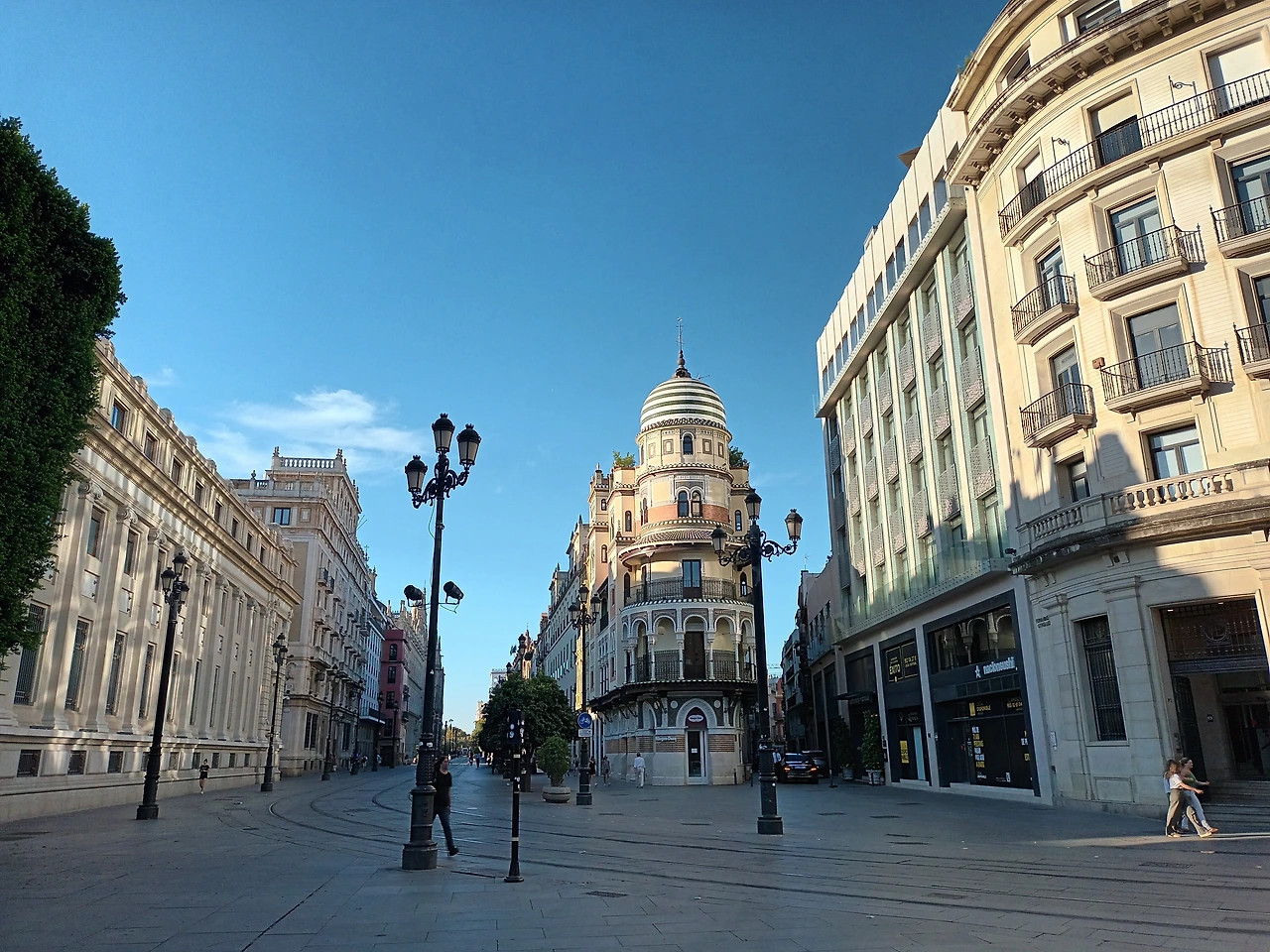 기차는 어느덧 아침 9시 5분이 되자 세비야 역에 도착하였다. 밖을 나오니 날씨가 더워지기 시작했지만 코르도바에서 최상의 더위를 경험한 나에게는 이 정도는 문제가 되지 않았다. 세비야도 36도 정도까지는 기온이 올라가는 편이어서 덥고 태양이 강렬한 도시이다. 세비야는 마드리드, 바르셀로나에 이어 큰 도시 중 하나이며, 콜럼버스의 신대륙 발견 이후에 아메리카 대륙의 식민지에서 들어오는 각종 물류가 마드리드로 가기 전까지 집결하는 도시가 되면서 급성장하였다고 한다. 호텔까지 걸어서 약 35분 정도의 거리였지만 오후 2시부터 체크인이 가능했으므로 시간이 많이 남아 거리를 산보하듯이 천천히 걸었다.