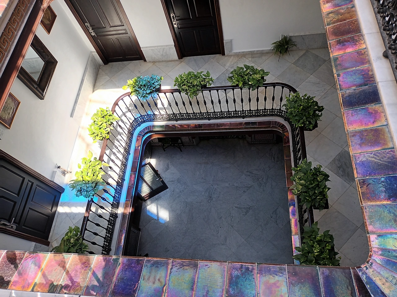 호텔로 돌아오기 전에 '타코벨'이라는 타코 전문 패스트푸드점에서 아침 겸 점심을 먹으며 시간을 더 보내다 호텔에 체크인하였다. 성당 바로 앞에 위치한 호텔은 3성급이지만, 아주 운치가 있고 남부 스페인의 분위기를 잘 느끼게 하는 파티오, 테라스, 건물을 잘 갖추고 있었다.