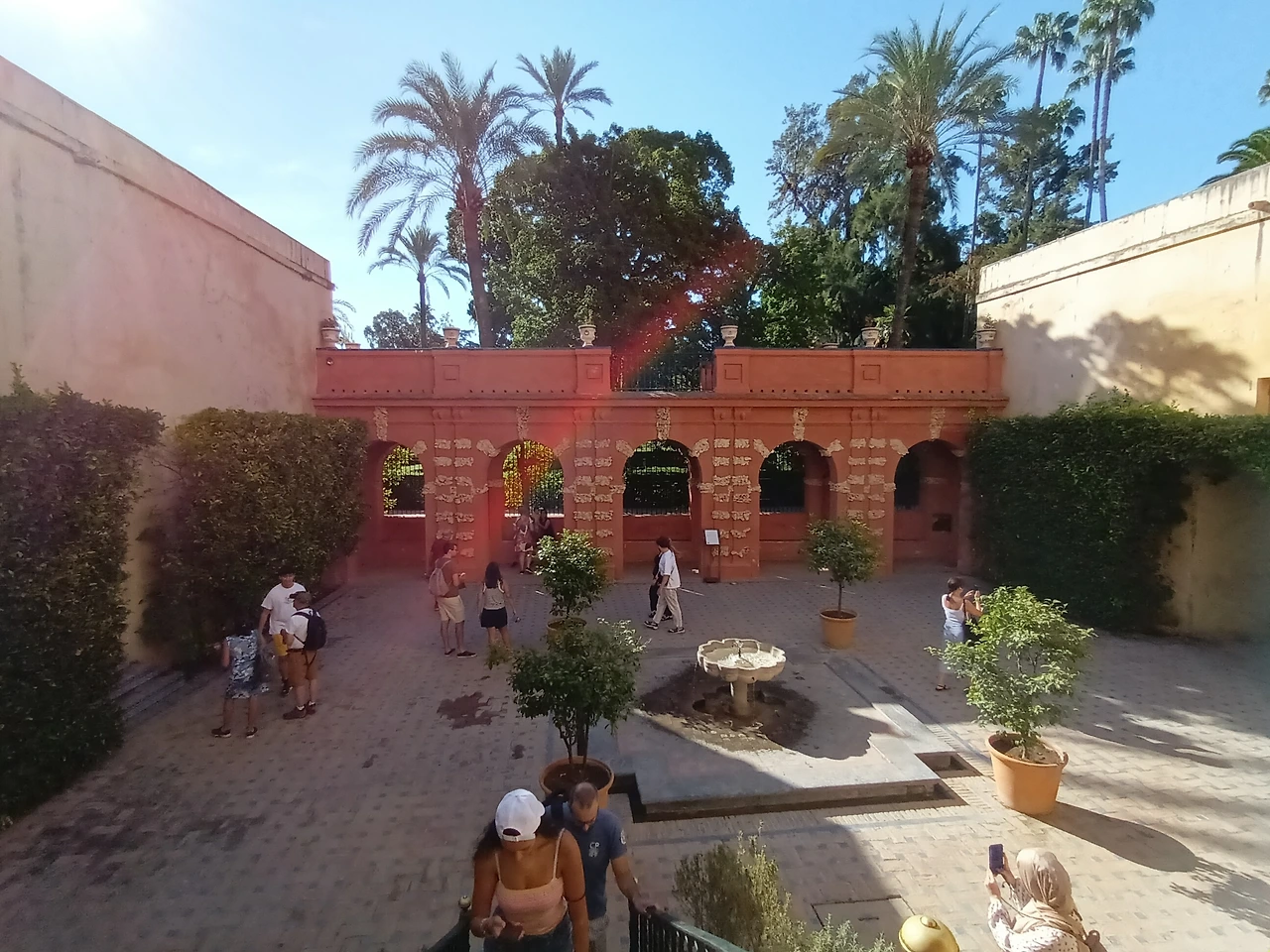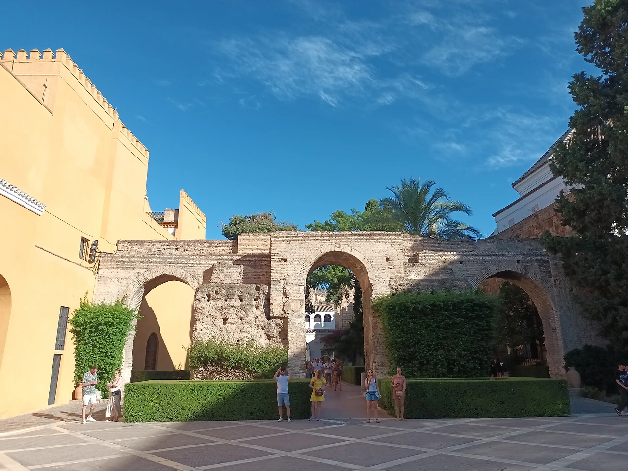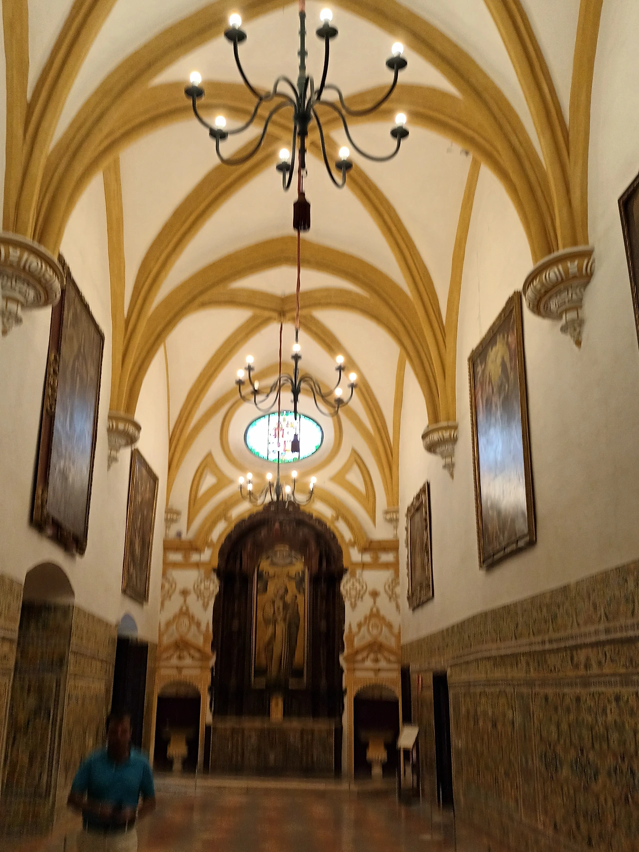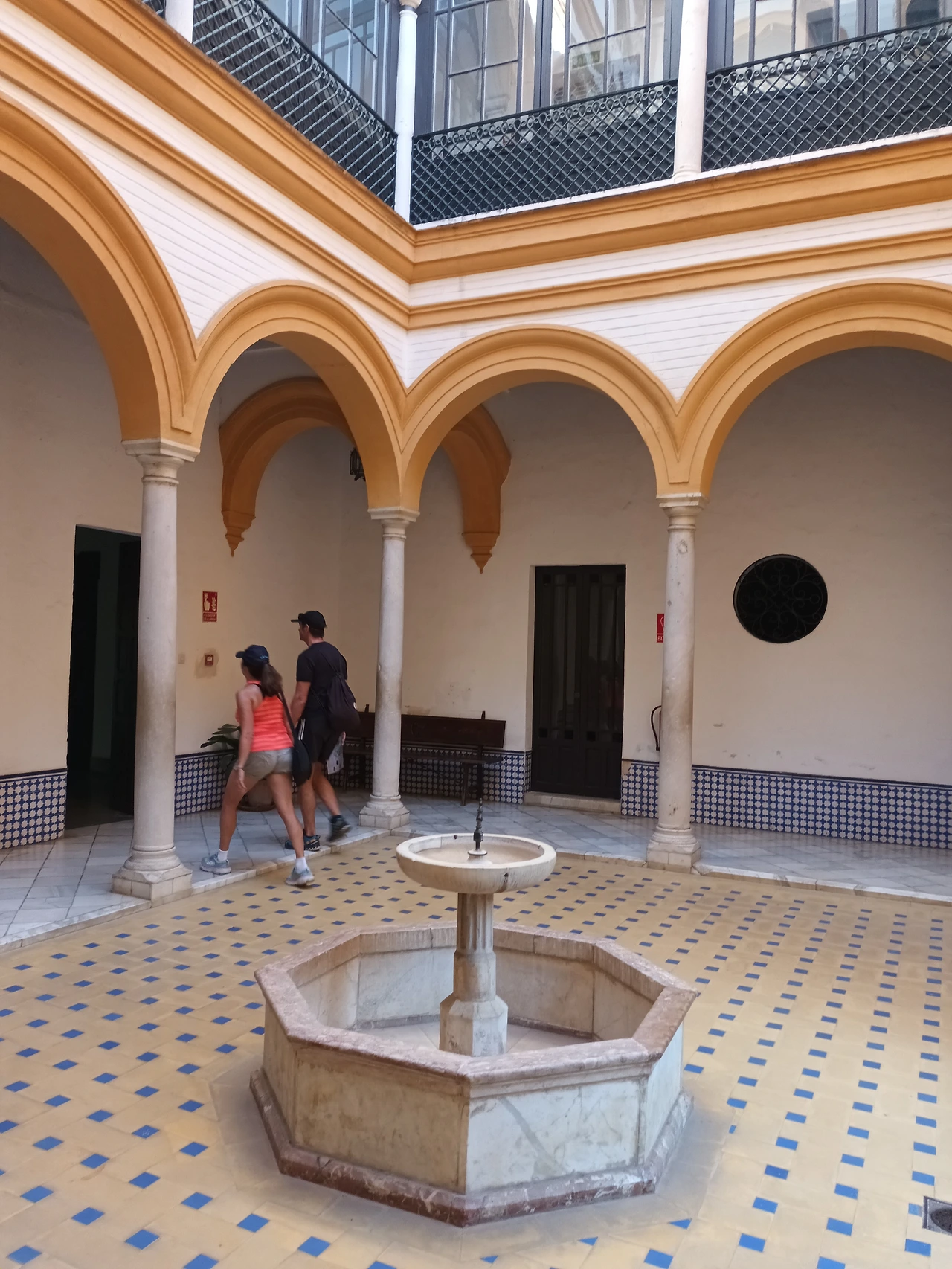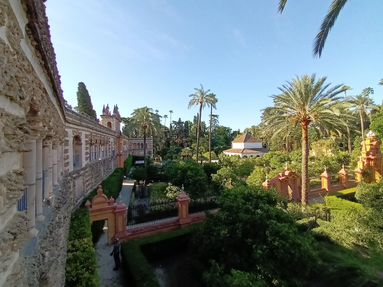 알카사르는 성안에 아름다운 정원이 있는 곳으로 아랍인들이 지배하던 시절의 흔적이 많이 남아 있었다. 걸어가는 길에 세비야 시청, 세비야 성당도 지나갔고, 오전 9시에 문을 열자 줄을 서서 바로 입장하였다. 아침에 방문하기를 잘했다는 생각이 들었다. 적당한 수의 관광객들이 있었고, 날씨도 더워지기 전이어서 여유롭게 성 건물 안과 곳곳에 자리 잡은 아름다운 회교식 파티오를 감상하였다. 나오기 전에는 건물 밖에 있는 큰 야외 정원을 거닐었다. 공작새들도 정원을 걸어 다니는 것이 운치가 있었다. 세비야 성당은 알카사르에서 바로 앞에 위치했지만, 입장시간도 한 시간 넘게 남아 있고, 아침에 세 시간가량 걸었더니 피곤해져서 알카사르 안쪽 출구 가까이에 있는 노천카페에서 마실 것을 사가지고 휴식을 취하였다.