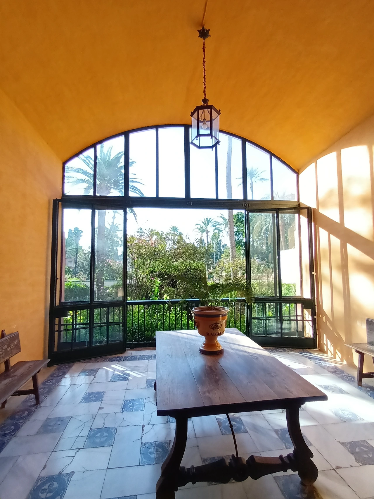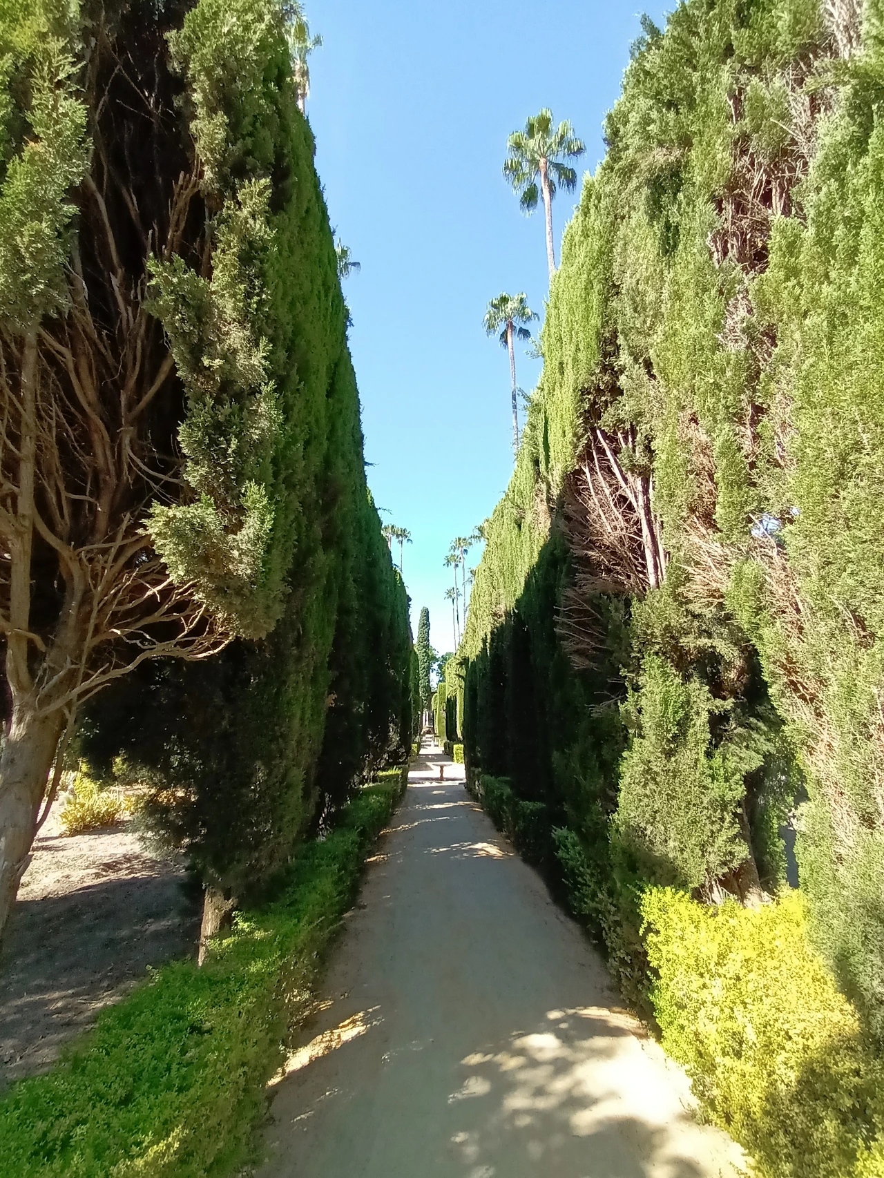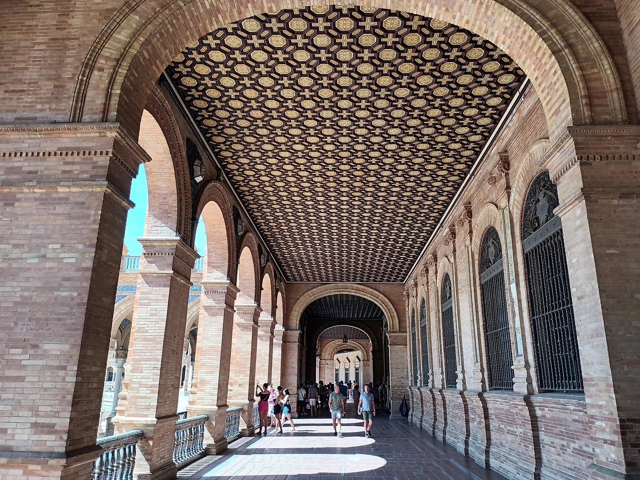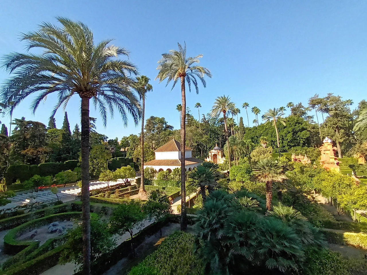 알카사르는 성안에 아름다운 정원이 있는 곳으로 아랍인들이 지배하던 시절의 흔적이 많이 남아 있었다. 걸어가는 길에 세비야 시청, 세비야 성당도 지나갔고, 오전 9시에 문을 열자 줄을 서서 바로 입장하였다. 아침에 방문하기를 잘했다는 생각이 들었다. 적당한 수의 관광객들이 있었고, 날씨도 더워지기 전이어서 여유롭게 성 건물 안과 곳곳에 자리 잡은 아름다운 회교식 파티오를 감상하였다. 나오기 전에는 건물 밖에 있는 큰 야외 정원을 거닐었다. 공작새들도 정원을 걸어 다니는 것이 운치가 있었다. 세비야 성당은 알카사르에서 바로 앞에 위치했지만, 입장시간도 한 시간 넘게 남아 있고, 아침에 세 시간가량 걸었더니 피곤해져서 알카사르 안쪽 출구 가까이에 있는 노천카페에서 마실 것을 사가지고 휴식을 취하였다.