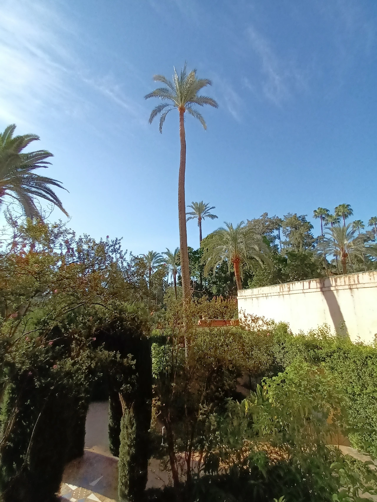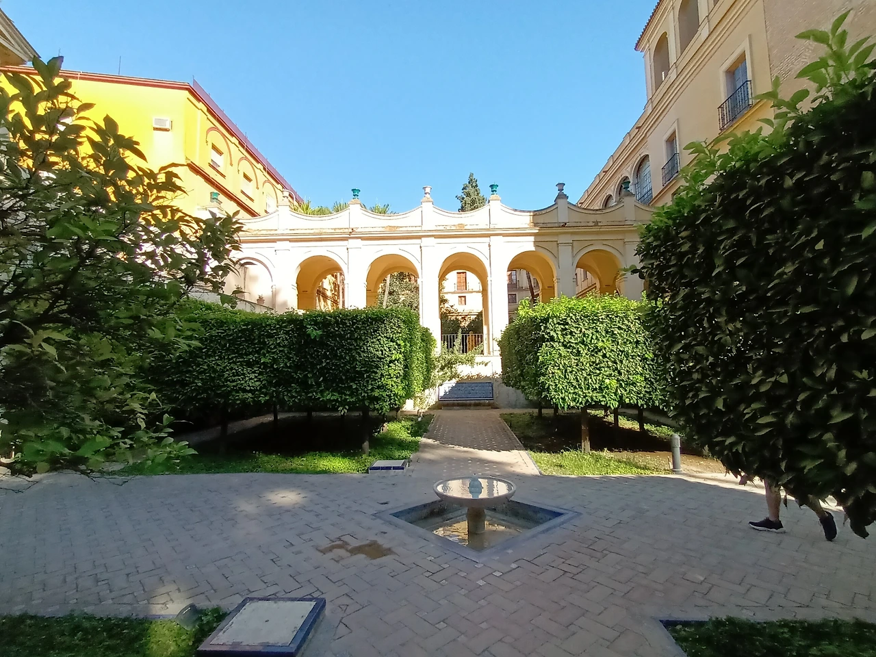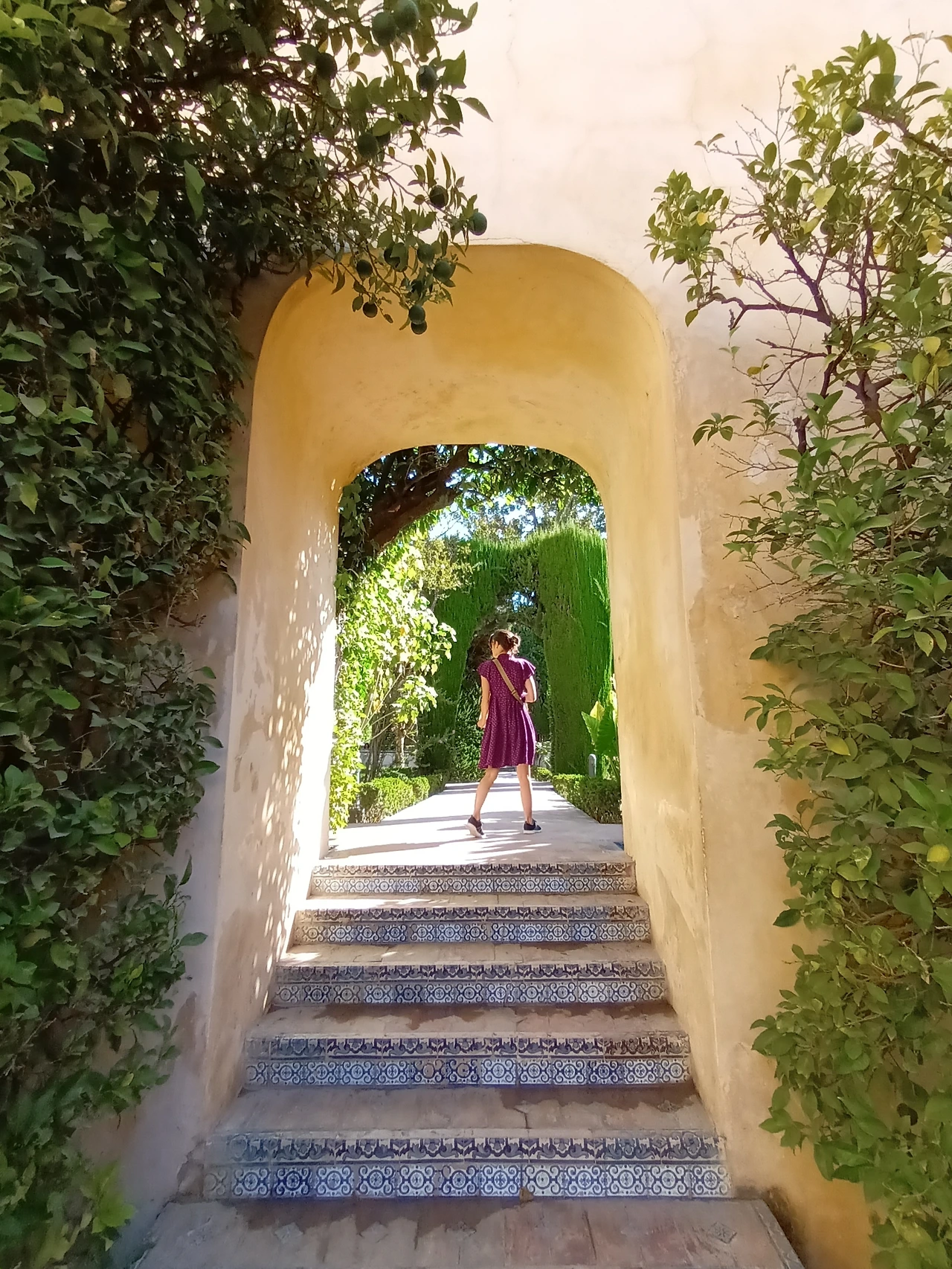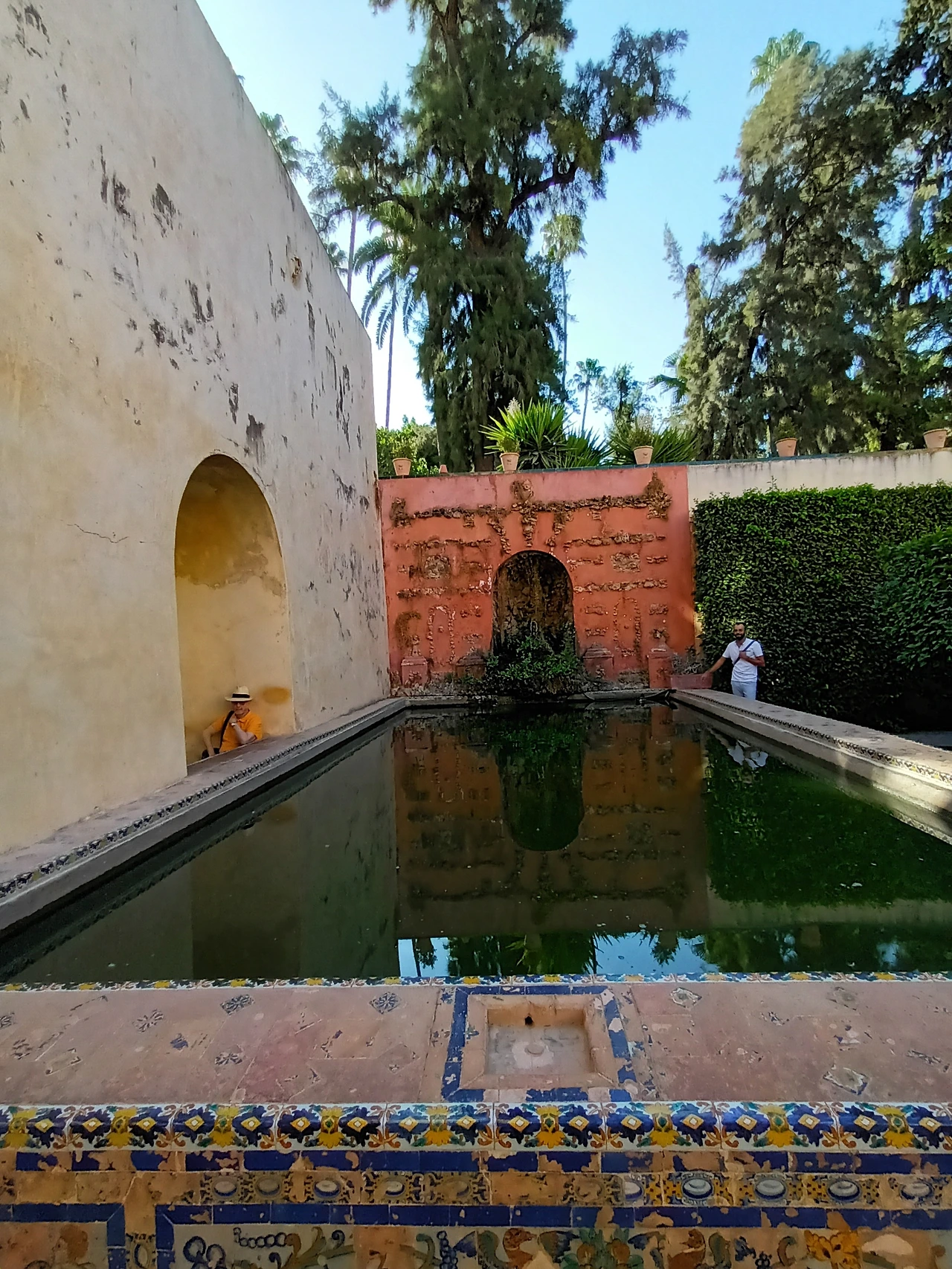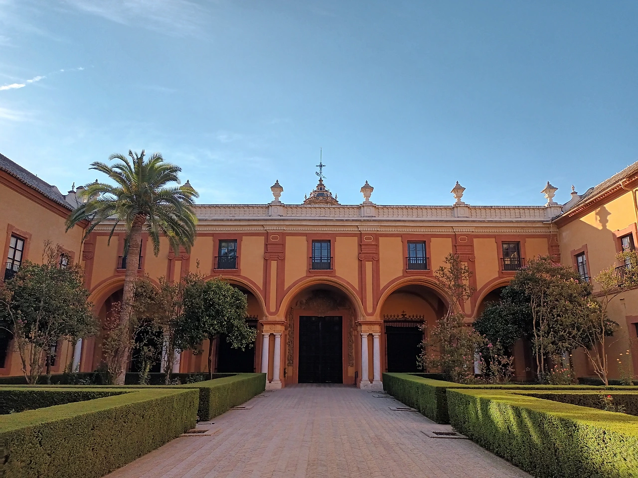 알카사르는 성안에 아름다운 정원이 있는 곳으로 아랍인들이 지배하던 시절의 흔적이 많이 남아 있었다. 걸어가는 길에 세비야 시청, 세비야 성당도 지나갔고, 오전 9시에 문을 열자 줄을 서서 바로 입장하였다. 아침에 방문하기를 잘했다는 생각이 들었다. 적당한 수의 관광객들이 있었고, 날씨도 더워지기 전이어서 여유롭게 성 건물 안과 곳곳에 자리 잡은 아름다운 회교식 파티오를 감상하였다. 나오기 전에는 건물 밖에 있는 큰 야외 정원을 거닐었다. 공작새들도 정원을 걸어 다니는 것이 운치가 있었다. 세비야 성당은 알카사르에서 바로 앞에 위치했지만, 입장시간도 한 시간 넘게 남아 있고, 아침에 세 시간가량 걸었더니 피곤해져서 알카사르 안쪽 출구 가까이에 있는 노천카페에서 마실 것을 사가지고 휴식을 취하였다.