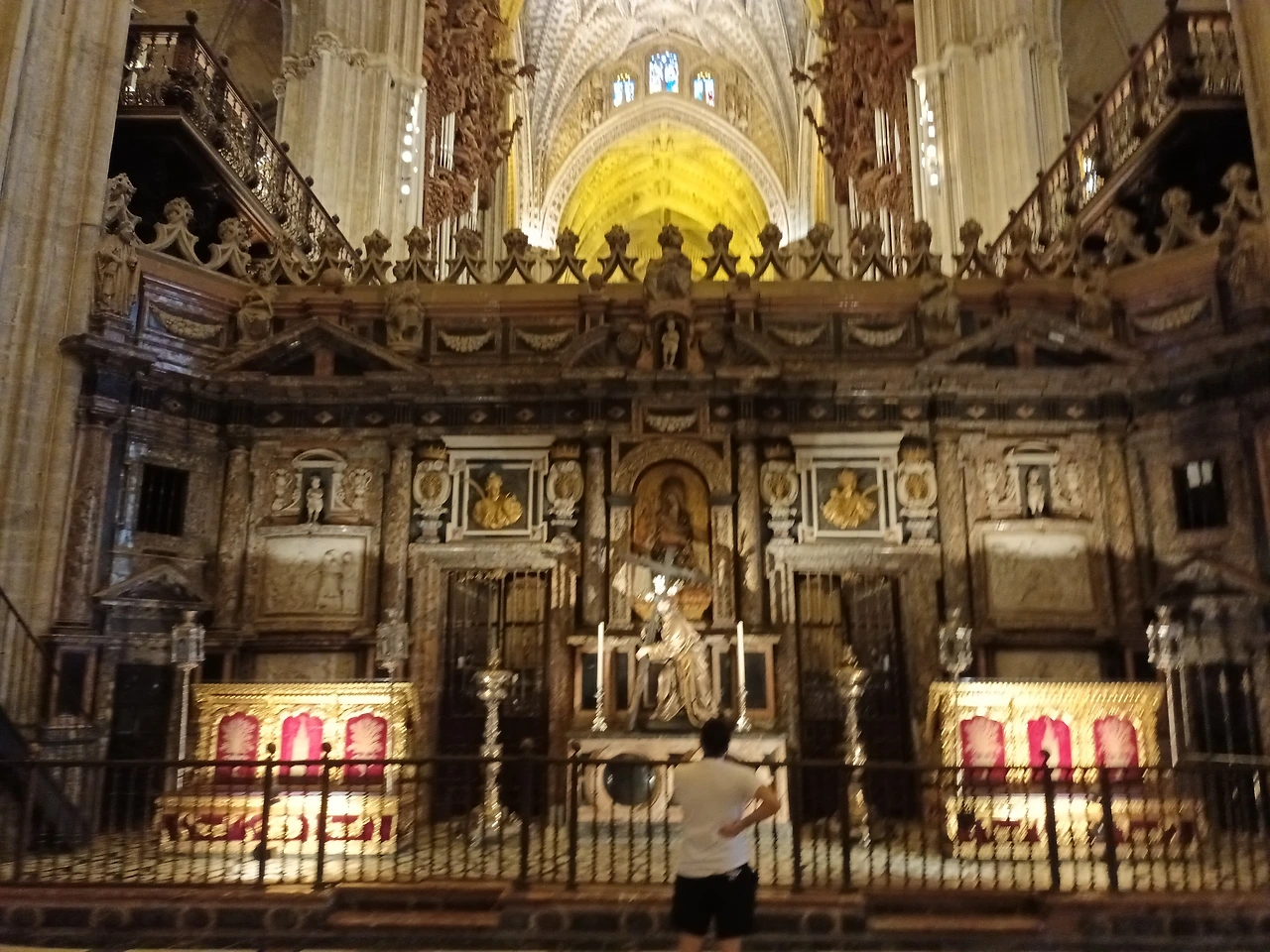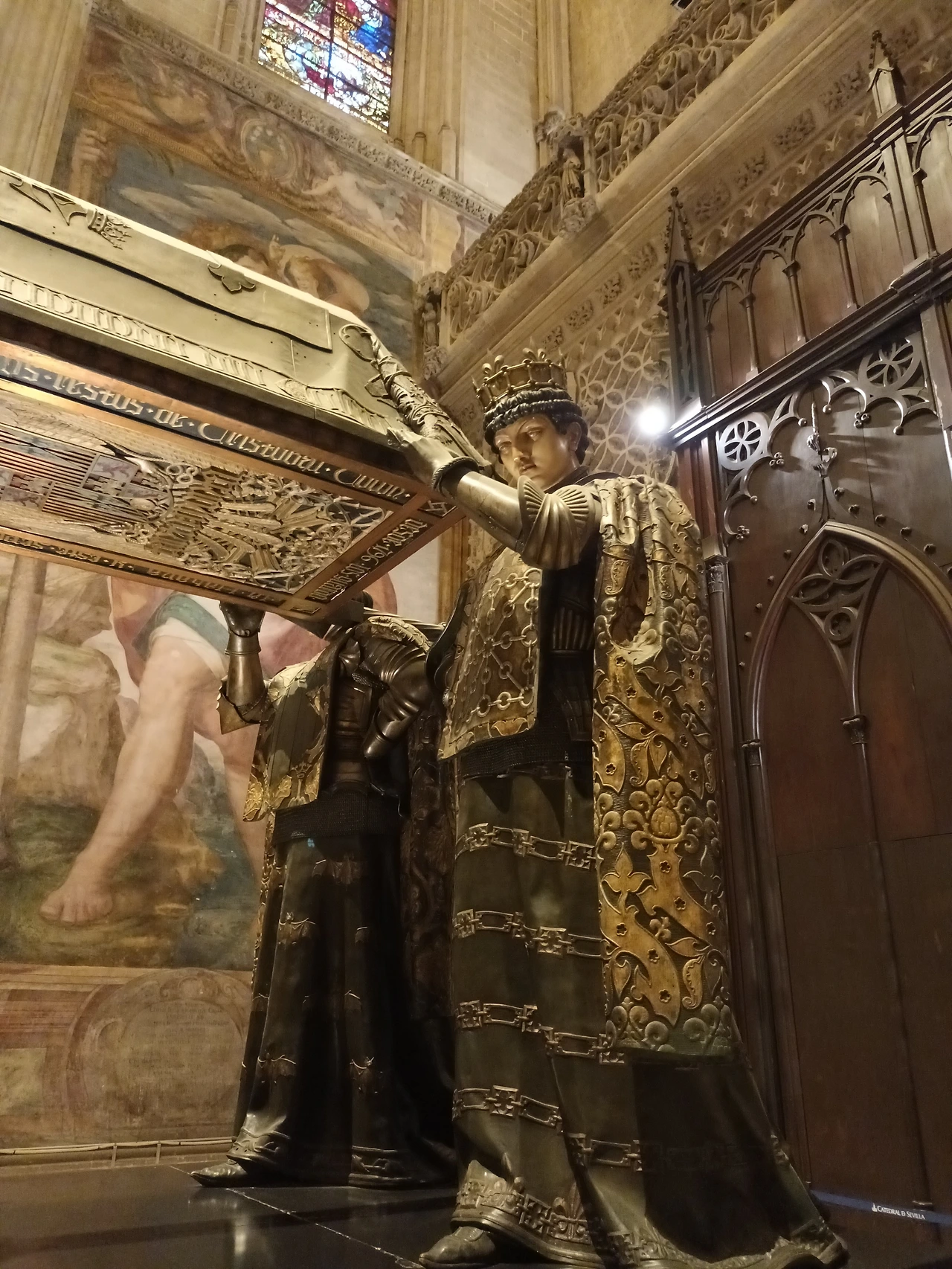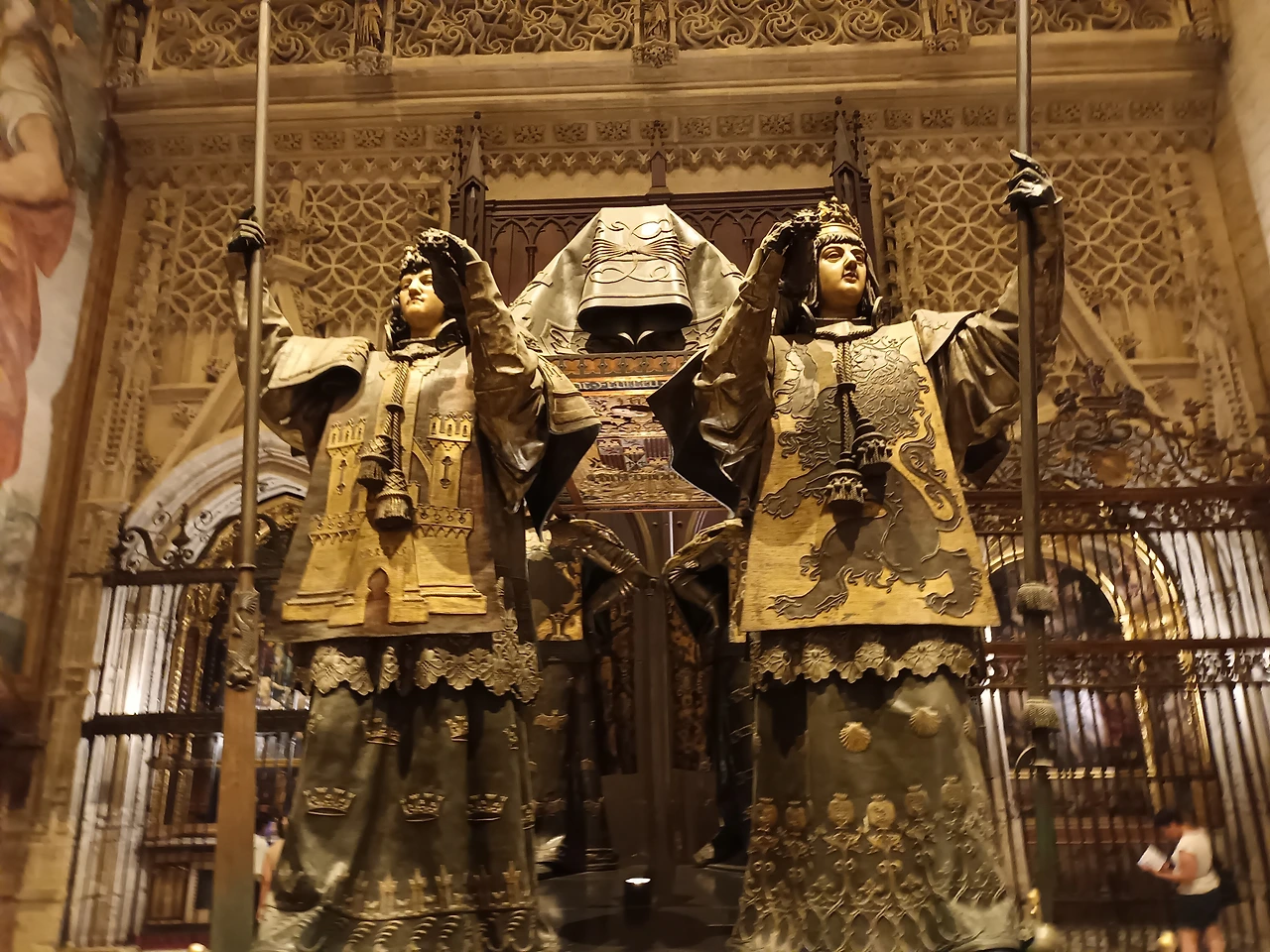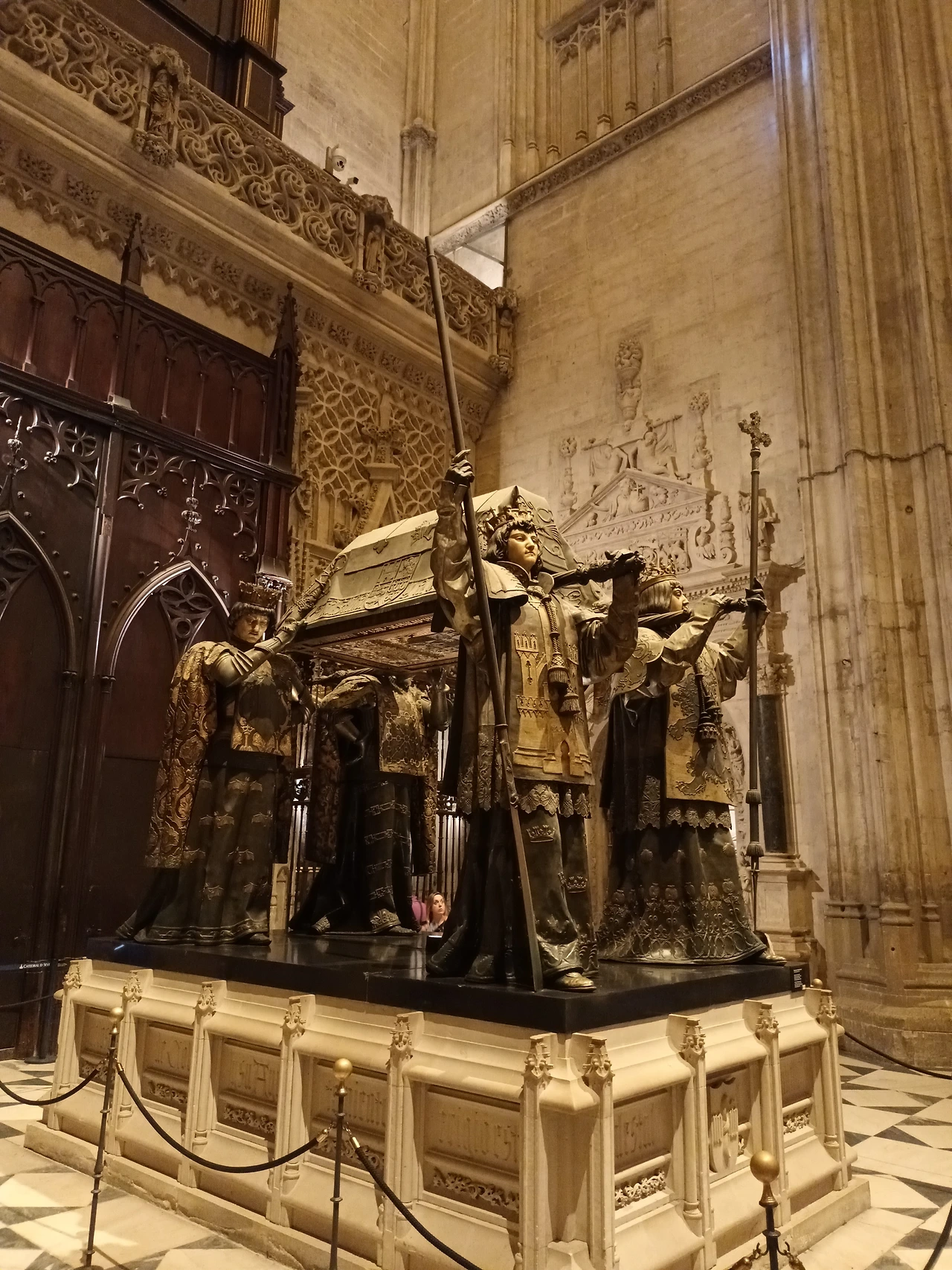 오후 1시경에 방문한 세비야 성당은 아랍적인 양식을 찾을 수 없는 하늘을 찌를 듯하게 쏟아 오른 전형적인 유럽식 성당이었다. 유럽에서 세 번째로 큰 성당이라고 하는데, 그 명성답게 성당 내부의 면적도 넓고, 천장까지의 높이는 매우 높았다. 성당 내부 한 편에는 콜럼버스의 관을 들고 있는 네 명의 스페인 과거 국왕들의 동상이 자리 잡고 있었다. 앞에 서서 관을 든 두 국왕들은 떳떳하게 고개를 들고 있고, 뒤의 두 국왕들은 고개를 떨군 채 관을 들고 서 있다. 앞에 두 명은 콜럼버스를 적극적으로 지지했었고, 뒤에 두 명은 그렇지 않았다고 한다. 콜럼버스가 이탈리아 사람이지만, 그에 대한 스페인 사람들의 애정이 얼마나 각별한지 이해할 수 있었다.