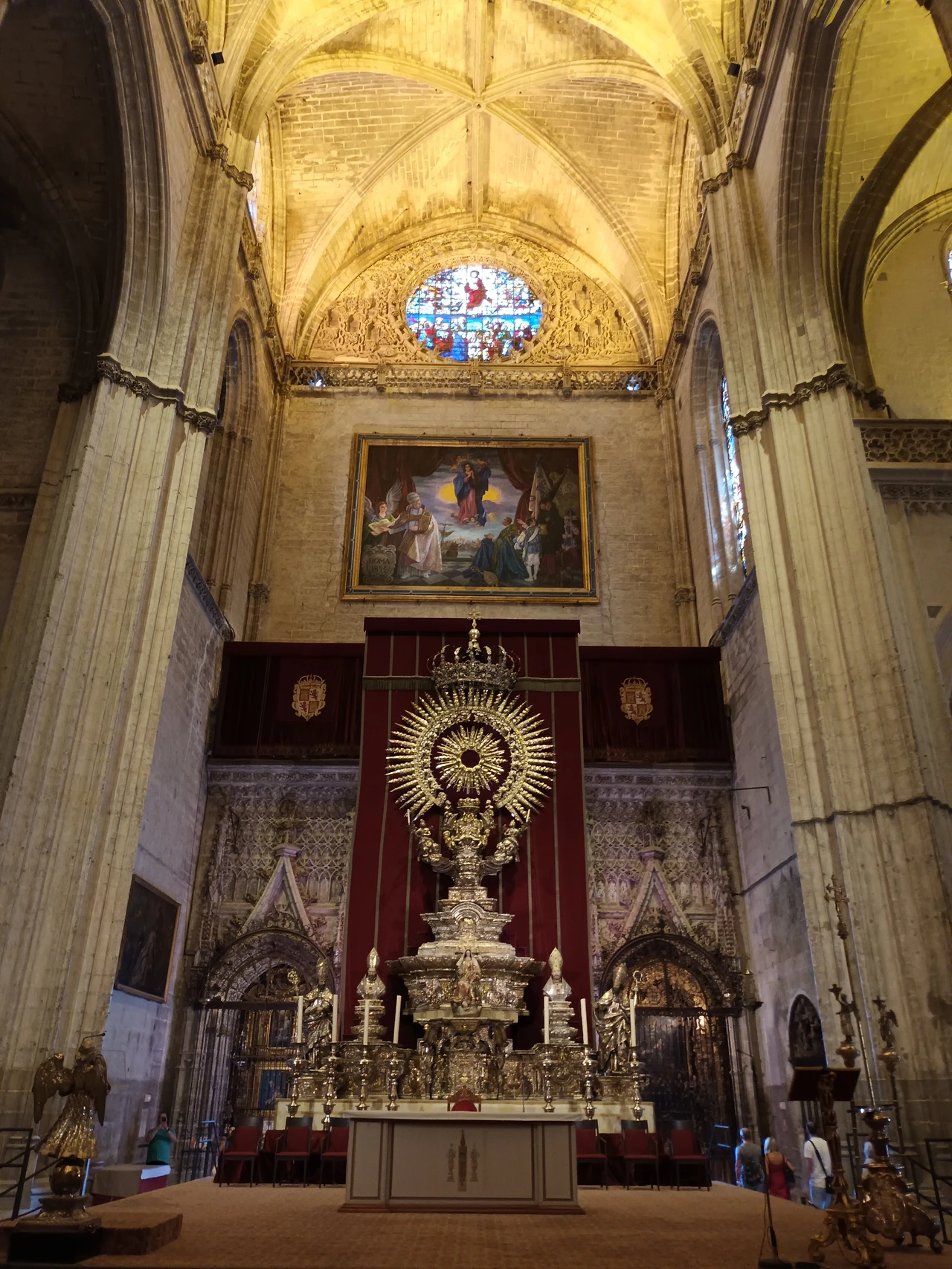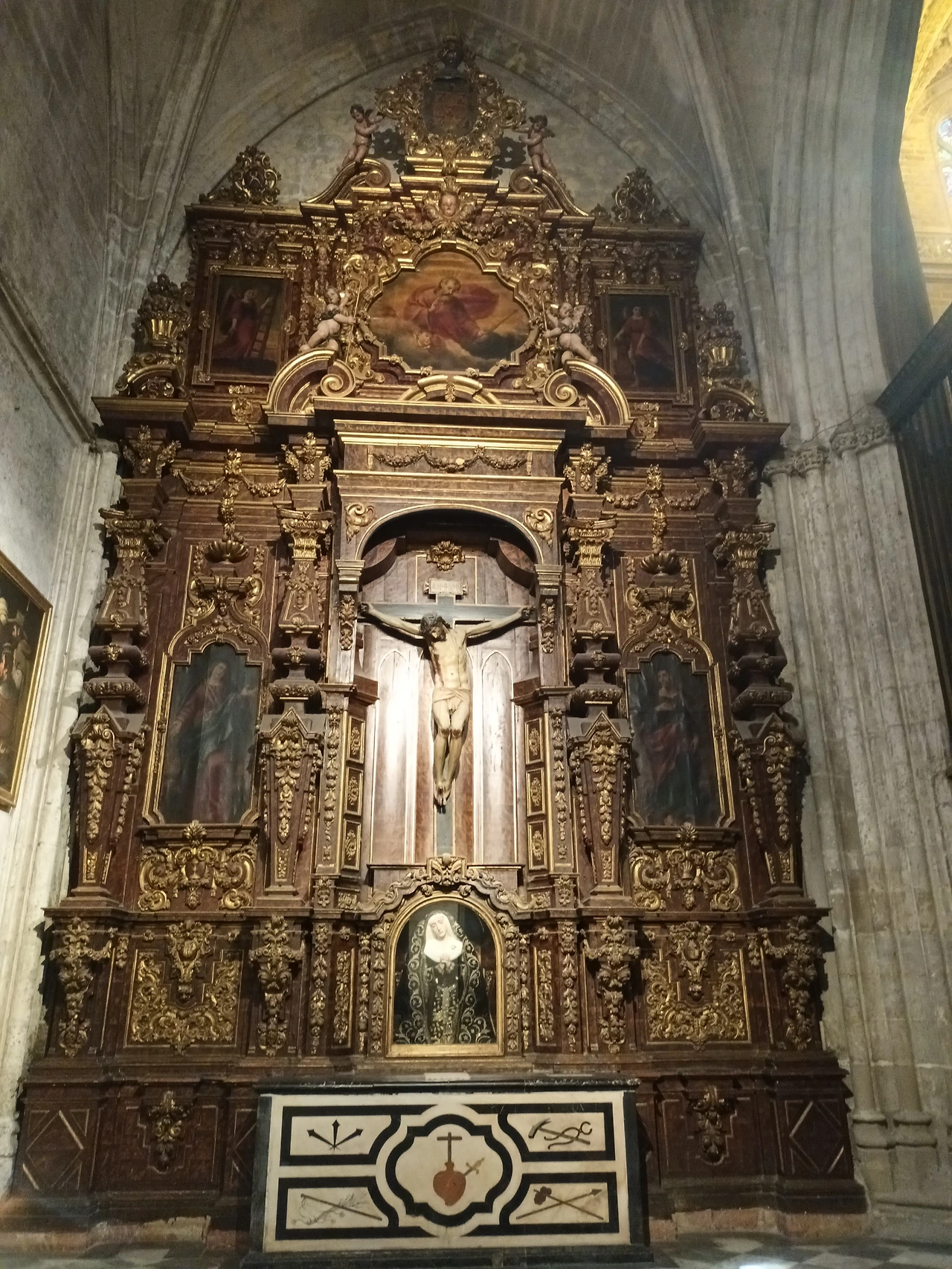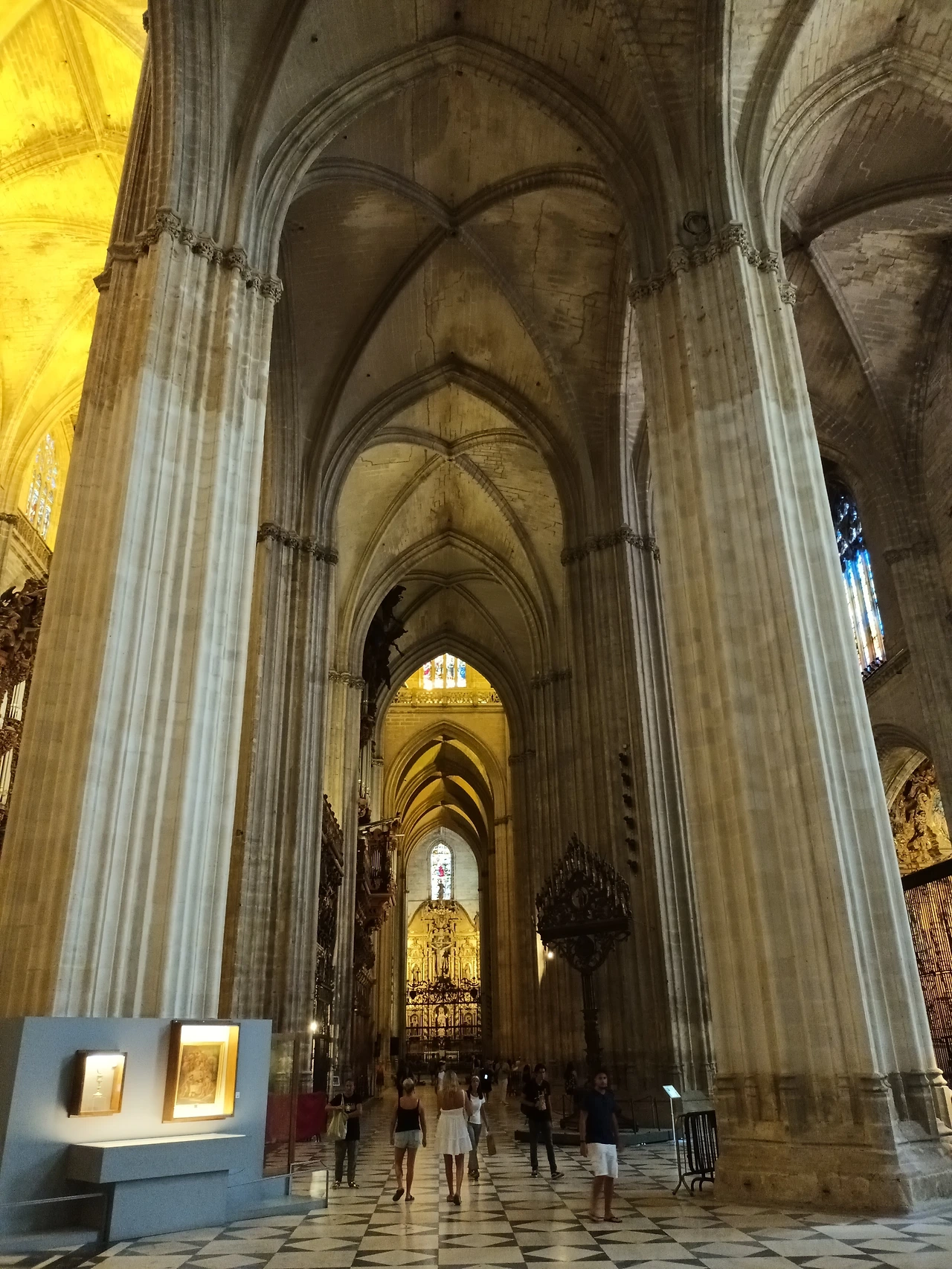 오후 1시경에 방문한 세비야 성당은 아랍적인 양식을 찾을 수 없는 하늘을 찌를 듯하게 쏟아 오른 전형적인 유럽식 성당이었다. 유럽에서 세 번째로 큰 성당이라고 하는데, 그 명성답게 성당 내부의 면적도 넓고, 천장까지의 높이는 매우 높았다. 성당 내부 한 편에는 콜럼버스의 관을 들고 있는 네 명의 스페인 과거 국왕들의 동상이 자리 잡고 있었다. 앞에 서서 관을 든 두 국왕들은 떳떳하게 고개를 들고 있고, 뒤의 두 국왕들은 고개를 떨군 채 관을 들고 서 있다. 앞에 두 명은 콜럼버스를 적극적으로 지지했었고, 뒤에 두 명은 그렇지 않았다고 한다. 콜럼버스가 이탈리아 사람이지만, 그에 대한 스페인 사람들의 애정이 얼마나 각별한지 이해할 수 있었다.