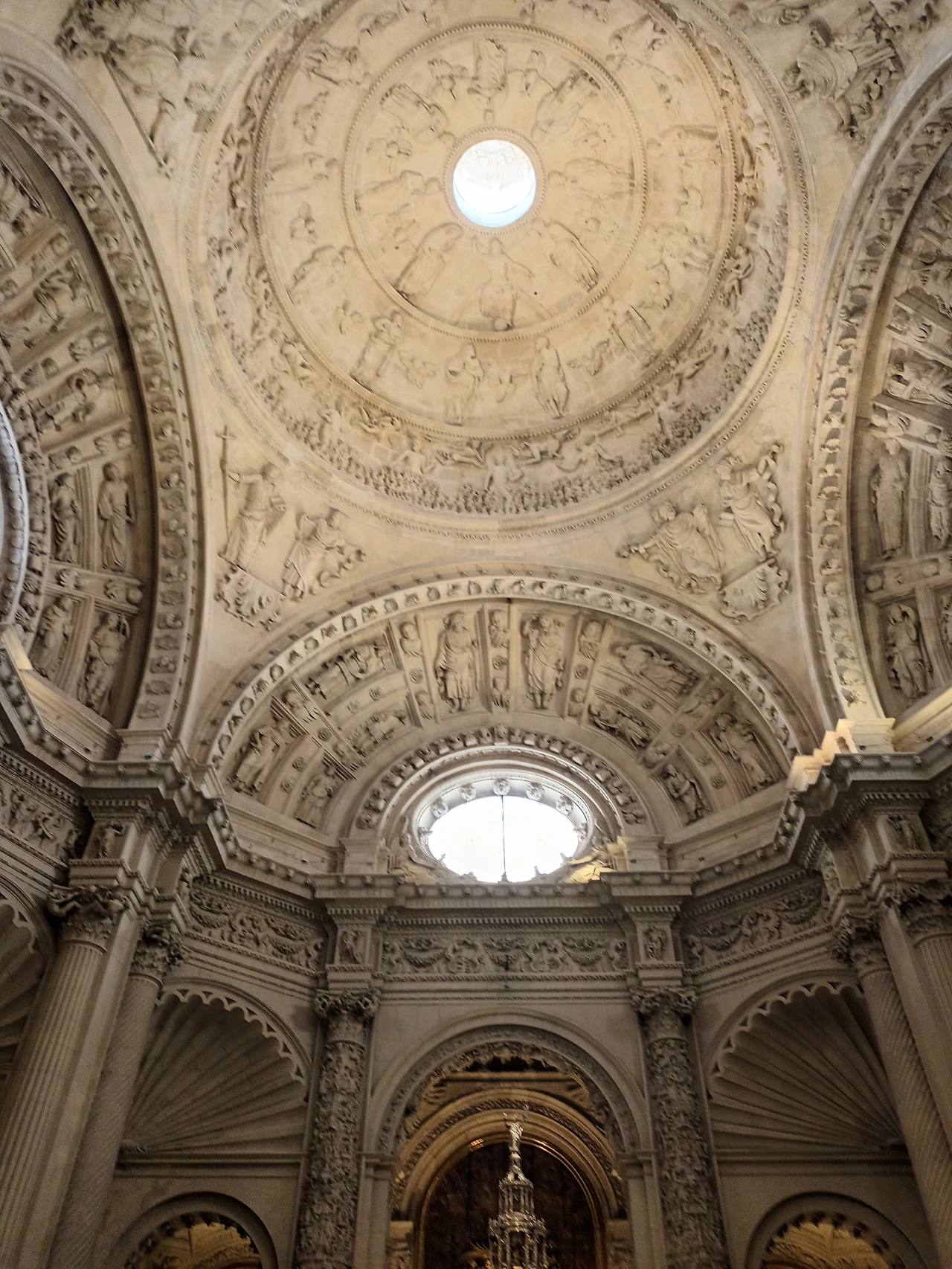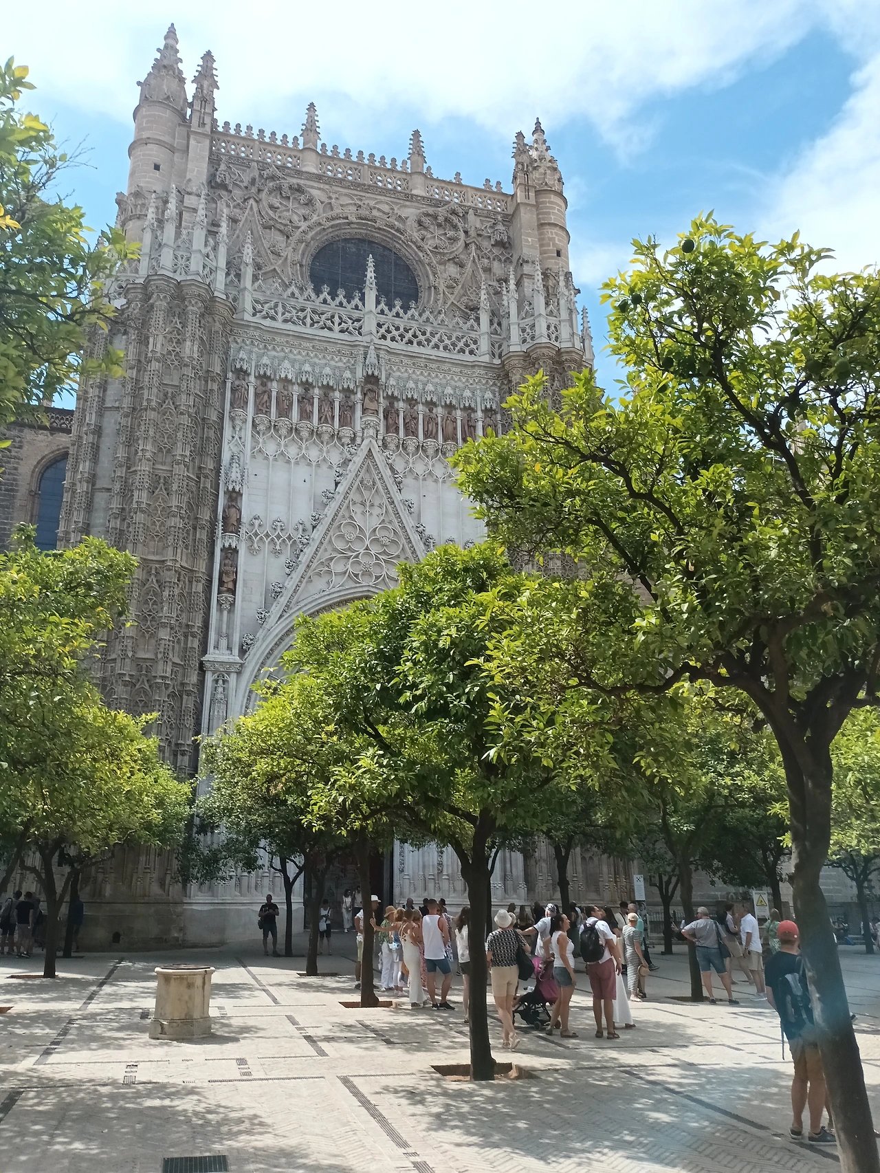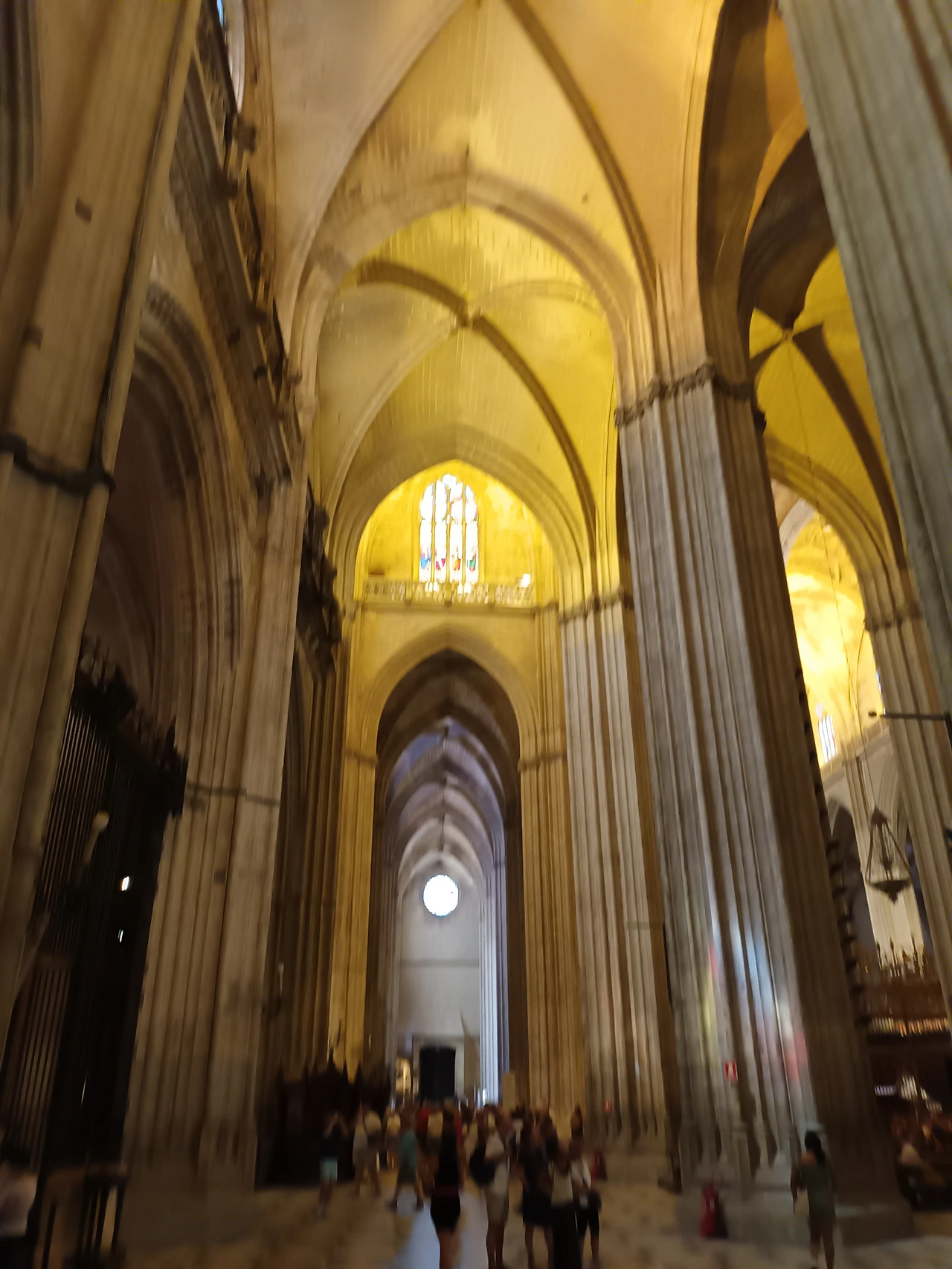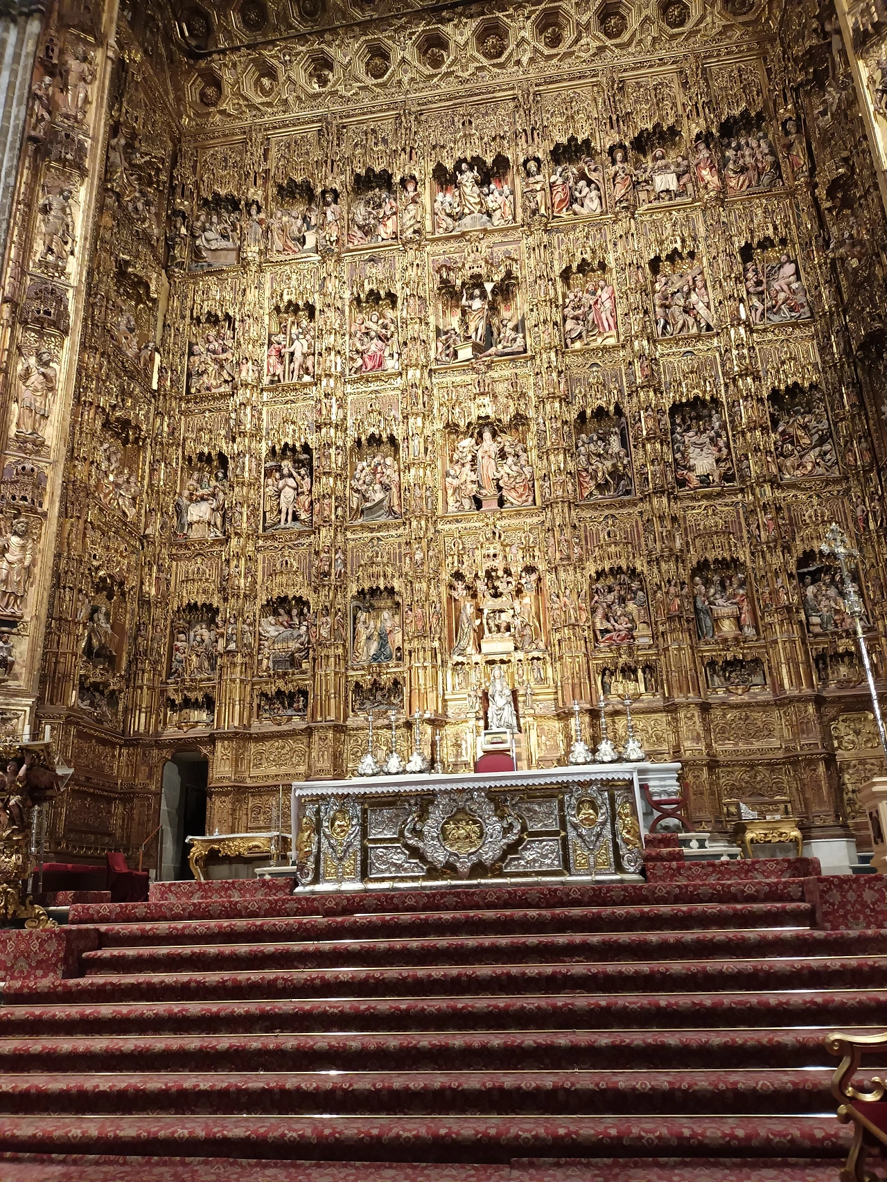 오후 1시경에 방문한 세비야 성당은 아랍적인 양식을 찾을 수 없는 하늘을 찌를 듯하게 쏟아 오른 전형적인 유럽식 성당이었다. 유럽에서 세 번째로 큰 성당이라고 하는데, 그 명성답게 성당 내부의 면적도 넓고, 천장까지의 높이는 매우 높았다. 성당 내부 한 편에는 콜럼버스의 관을 들고 있는 네 명의 스페인 과거 국왕들의 동상이 자리 잡고 있었다. 앞에 서서 관을 든 두 국왕들은 떳떳하게 고개를 들고 있고, 뒤의 두 국왕들은 고개를 떨군 채 관을 들고 서 있다. 앞에 두 명은 콜럼버스를 적극적으로 지지했었고, 뒤에 두 명은 그렇지 않았다고 한다. 콜럼버스가 이탈리아 사람이지만, 그에 대한 스페인 사람들의 애정이 얼마나 각별한지 이해할 수 있었다.