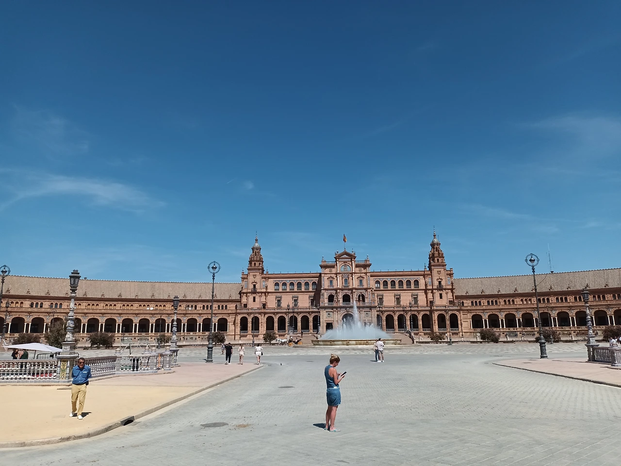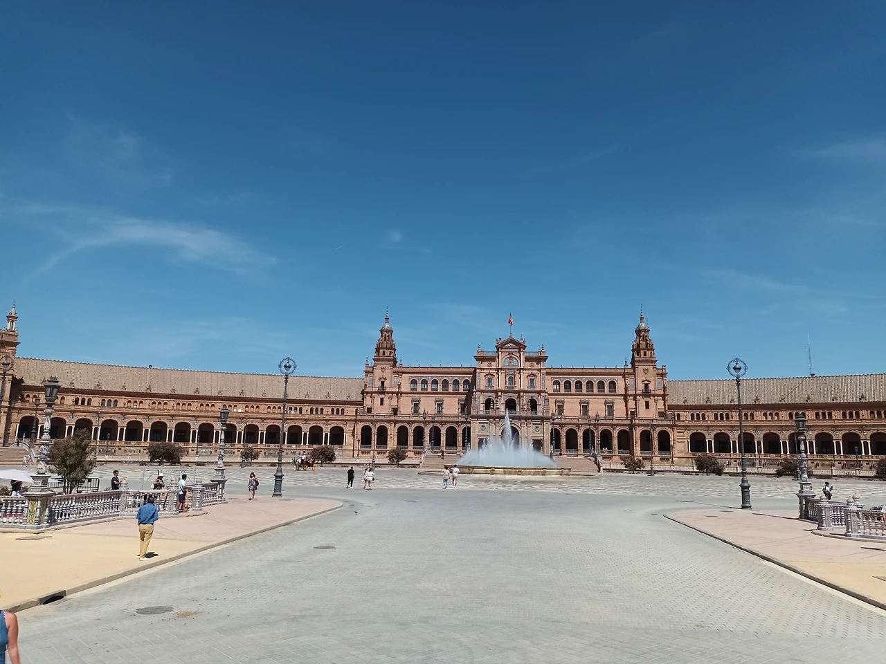 몇 번을 쉬다가 길도 잃어버리다, 마침내 스페인 광장에 도착하였다. 작렬하는 태양 아래에 광장이 웅장하게 자리 잡고 있었다. 한번 와 볼만 한 곳이라고 생각되었다. 과거 스페인이 중남미의 대부분을 차지하며 세계의 바다를 지배하던 시절의 영광스러운 시절을 떠올려 줄 수 있었다. 광장 뒤의 건물의 야외 복도를 따라서 관광객들이 구경하거나 쉬고 있었고, 플라멩코 등 각종 버스킹이 이루어지고 있었다. 거리의 음악가들에게 동전을 넣어 주었다. 그 웅장한 건물에 문이 살짝 열린 곳이 보였고, 그 안에 자판기가 있는 것을 발견하고는 바로 들어가서 생수 한 병을 뽑아 나왔다. 꿀맛이었다. 공무원 같은 사람이 내가 나가자 바로 문을 닫아 버렸다. 아마 자기들 일 때문에 잠깐 열어 두었던 그 짧은 시간에 내가 안에 들어갔던 것 같았다. 더워서 자판기 생수를 뽑아 먹는 것을 보고 바로 나가라고 하지 않은 것 같았다.