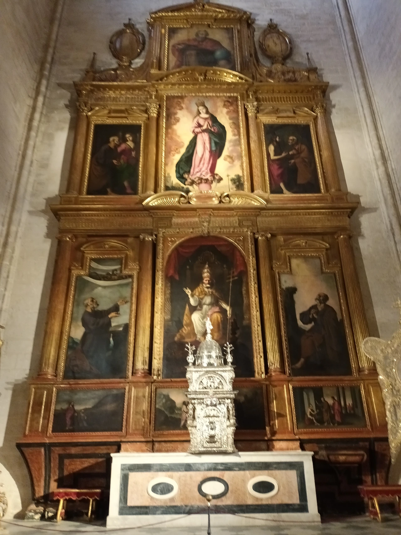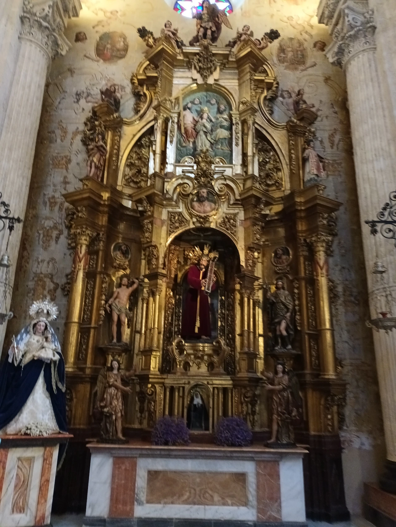 히랄다를 내려와서 밖으로 나와 살바도르 성당까지 약 10분 걸어갔다. 세비야에서 제일 더운 시간에 다가가고 있었으며 기온이 약 35도를 가리키고 있었다. 세비야 성당을 보고 와서 그런지, 살바도르 성당은 아주 아담해 보였다. 하지만 외관과 특히 내부는 아름다웠고, 내부 곳곳에 가톨릭 장식품, 미술품이 걸려 있었다. 성당 내부 중앙을 바라보는 긴 나무 의자에 앉아서 더위와 피로를 아주 잠시나마 식혔다.