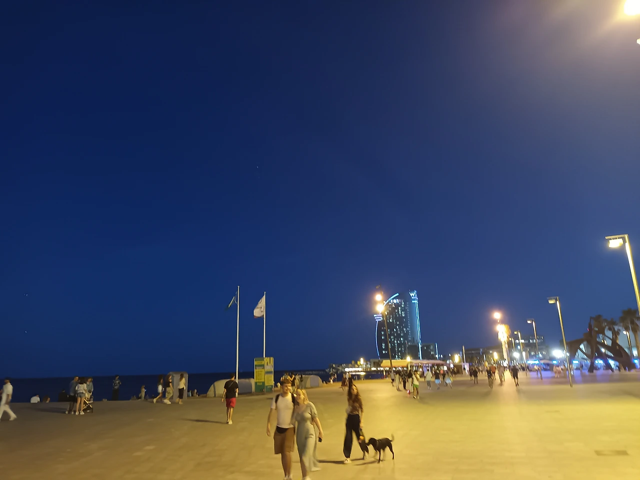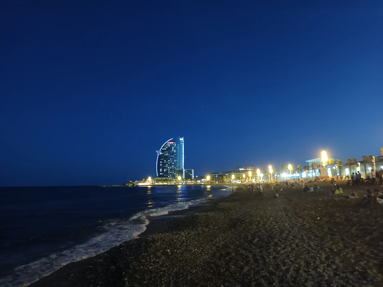 바르셀로나 호텔에 거의 저녁 7시에 체크인하였기 때문에 오늘밤은 뚜렷한 일정을 짜지 못한 상태였다. 비행기에서 착륙 전 바다를 봤기 때문에 스페인의 바다가 보고 싶어졌다. 여기서 해변이 얼마나 멀까 궁금하여 구글 지도로 검색을 해 보았다. 다행히 도보로 약 30분 거리에 '네타 해변'이 있었다. 그리로 가보자 생각하고 발걸음을 옮겼다. 항구에는 고급 요트들이 정박해 있고, 고급 레스토랑들이 수없이 늘어서 있었다. 이 모든 이국적인 풍경과 사람들을 구경하면서 걷다가 드디어 해변에 도착하였다. 모래해변은 아니고 자갈해변이어서 오히려 엉덩이를 깔고 앉아 있기에는 더 좋았다.