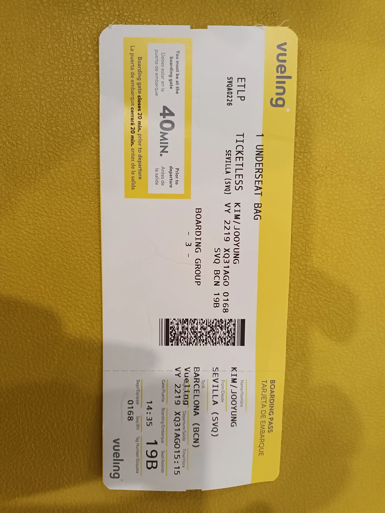 세비야 공항에 도착하여 Vueling 항공사 카운터로 가서 비행기 체크인을 하려니, 예상치 못한 난관이 나를 기다리고 있었다. 예약한 종이를 보여 주니, 체크인 프런트 여직원이 비행기 티켓을 주지 않고 인상을 쓰며 한참 동안 쉴 새 없이 말을 내뱉었다. 너무 빨라서 잘 이해가 되지 않았지만, 그나마 들린 단어가 '말렛따"(가방), '그란데'(크다) 등이었는데, 상황으로 짐작건대, 내가 메고 있는 여행 배낭이 커서 비행기에 못 가져간다는 말인 것 같았다.