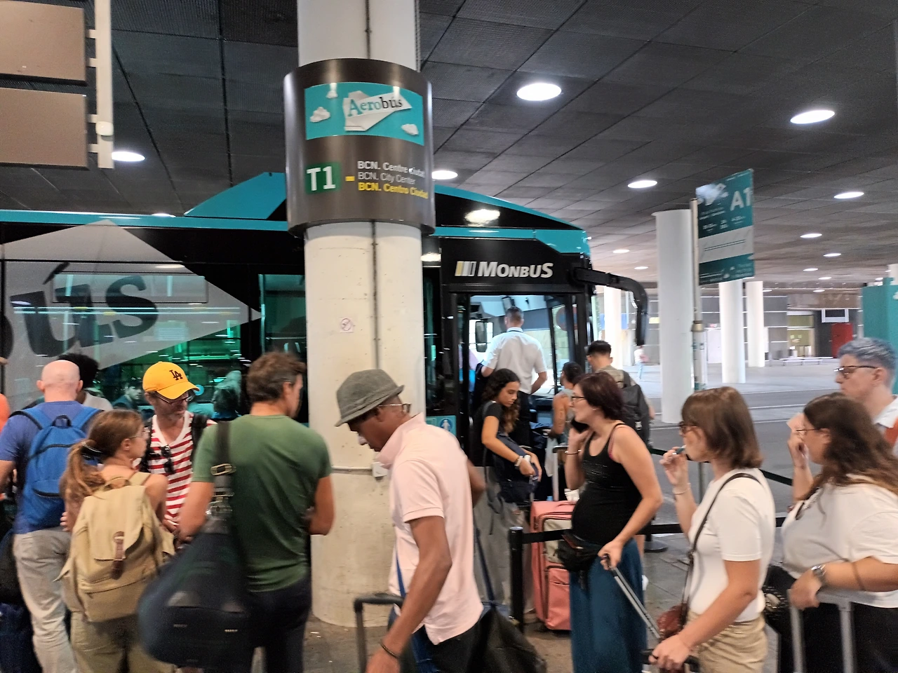 공항버스가 어디에서 출발하냐고 물어가며 정류장을 힘들게 찾아갔다. 공항에서 카탈루냐 광장까지 가는 버스였고, 이미 줄이 길게 늘어서 있었다. 다행히 버스가 자주 와서 줄이 금방 줄었다. 버스 안내판 등을 보니, 지금까지 여행했던 지역의 스페인어 글자와는 조금 달랐다. 특히 단어의 끝소리를 짧거나 조금 더 세게 끝내는 것 같다고 짐작되었다. 세비야에서 본 광고판과 똑같은 것이 보여서 비교가 가능했는데, 표기가 조금 달랐다. lo를 ho로, todo를 tot이라고 다르게 표기되어 있었다. 바르셀로나는 카탈루냐 지방에 있는데, 카탈루냐의 스페인어는 좀 다르다는 것을 느꼈다.