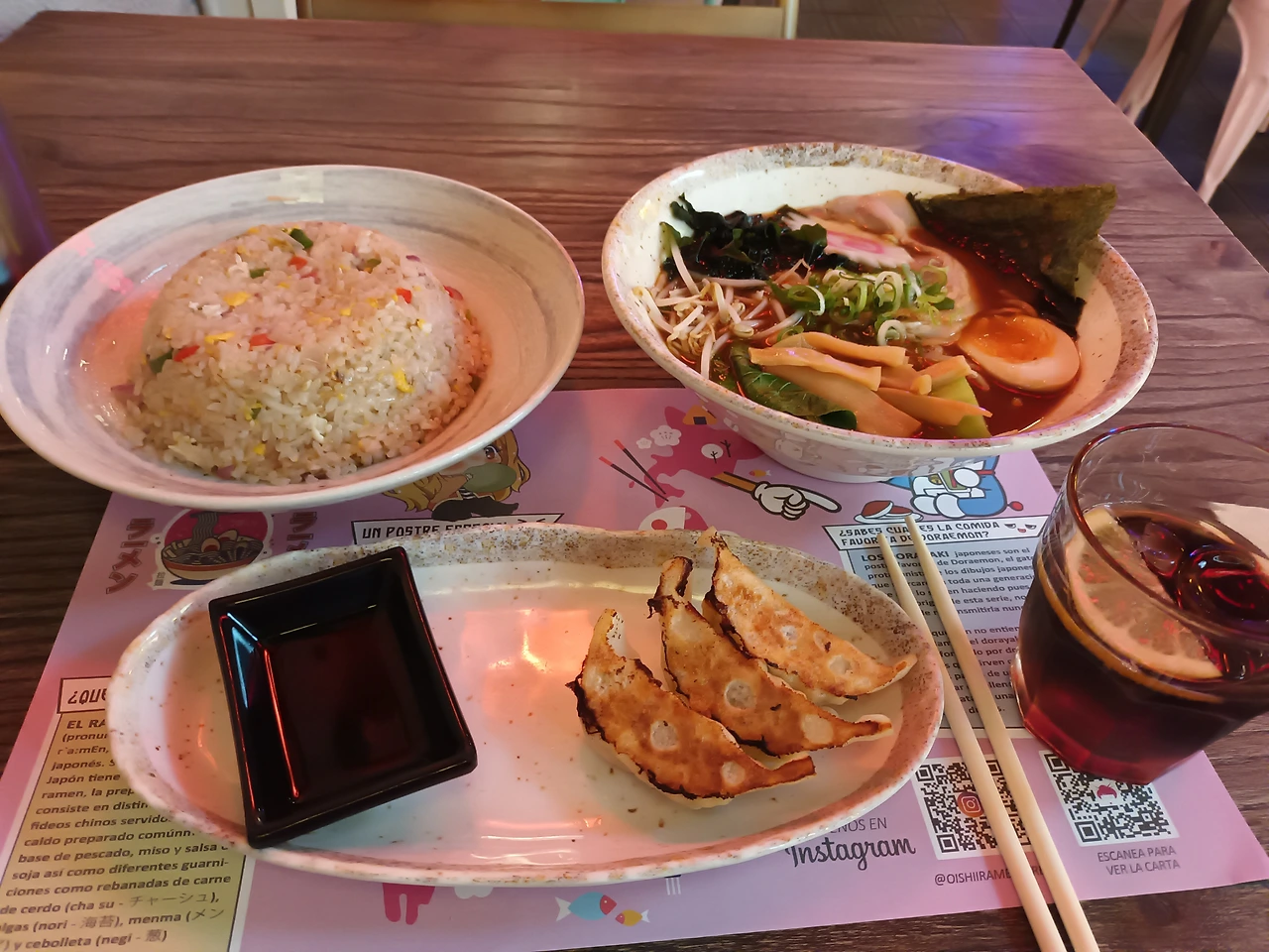 호텔에 체크인을 하고, 저녁을 먹으러 나왔다. 스페인 음식을 현지 와서 먹어보니 내 입맛에는 그렇게 맞지 않았다. 어디 들어갈까 고민하다가 일본 라멘집을 발견하고는 바로 들어가 버렸다. 라멘 한 그릇, 볶음밥 한 접시, 군만두 4개를 시켰다. 배도 고프고, 그나마 익숙한 맛을 볼 수 있다는 마음에 음식을 너무 많이 시켜 버렸다. 그래도 후회 없이 모든 음식을 남김없이 다 먹고 식당을 나왔다.