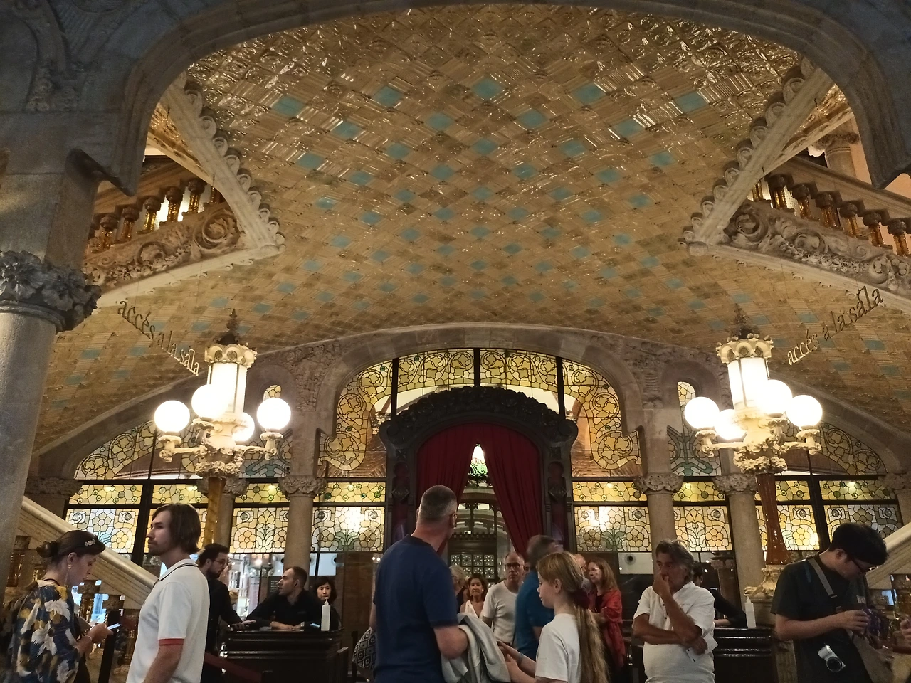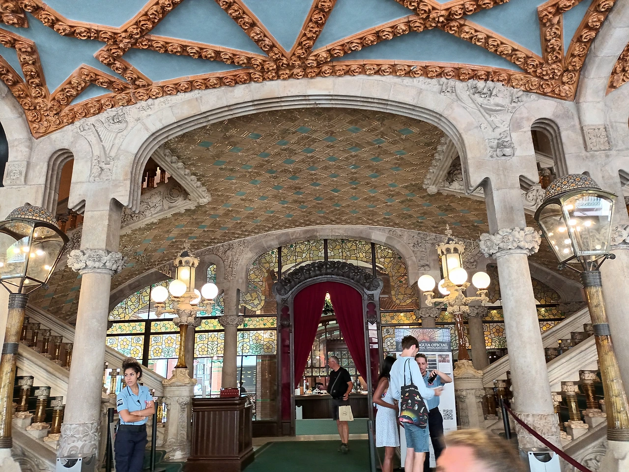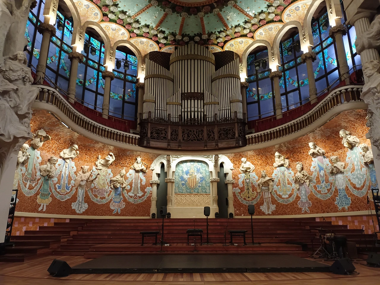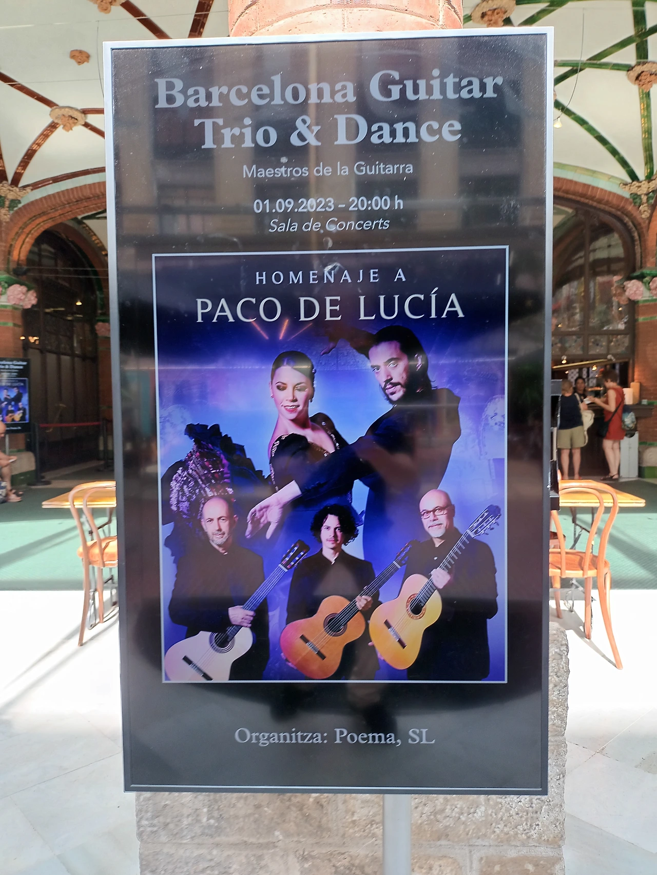 호텔에서 도보 10분 거리에 카탈루냐 음악당(Palau de la Música Catalana)이 있었다. 클래식 음악을 주로 공연하는 곳으로 건물 외관도 아름답지만 내부의 공연장도 무척 멋진 곳이다. 바르셀로나에서 나의 마지막 날인 금요일 밤 8시에 '바르셀로나 트리오'라고 하는 세계적으로 유명한 삼인조 클래식기타 연주자들의 공연이 있는 것을 알게 되어 미리 예매를 하고 음악당을 방문하였다.카탈루냐 음악당은 유서 깊은 곳이므로, 바르셀로나에 가게 된다면 사실 이 곳을 방문하고 싶었다. 이 곳에서 공연까지 보게 되면 더 좋을 것이라고 생각을 하긴 했었다. 20세기에 나온 세계적으로 유명한 협주곡 중 하나가 이 음악당에서 처음 공연되었다. 아랑훼즈 협주곡(Concierto de Aranjuez)은 스페인의 작곡가인 '호아뀐 로드리고'(Joaquín Rodrigo, 1901~1999)가 1939년에 만들었으며, 1940년에 바르셀로나의 카탈루냐 음악당에서 '레히노 사인츠 데 라 마싸'(Regino Sainz de la Maza)의 클래식 기타와 바르셀로나 필하모니 오케스트라의 협주로 처음 공연되었다. 아랑훼즈 협주곡 중 제2악장 '아다지오'(Adagio)가 제일 잘 알려져 있는 편이다.