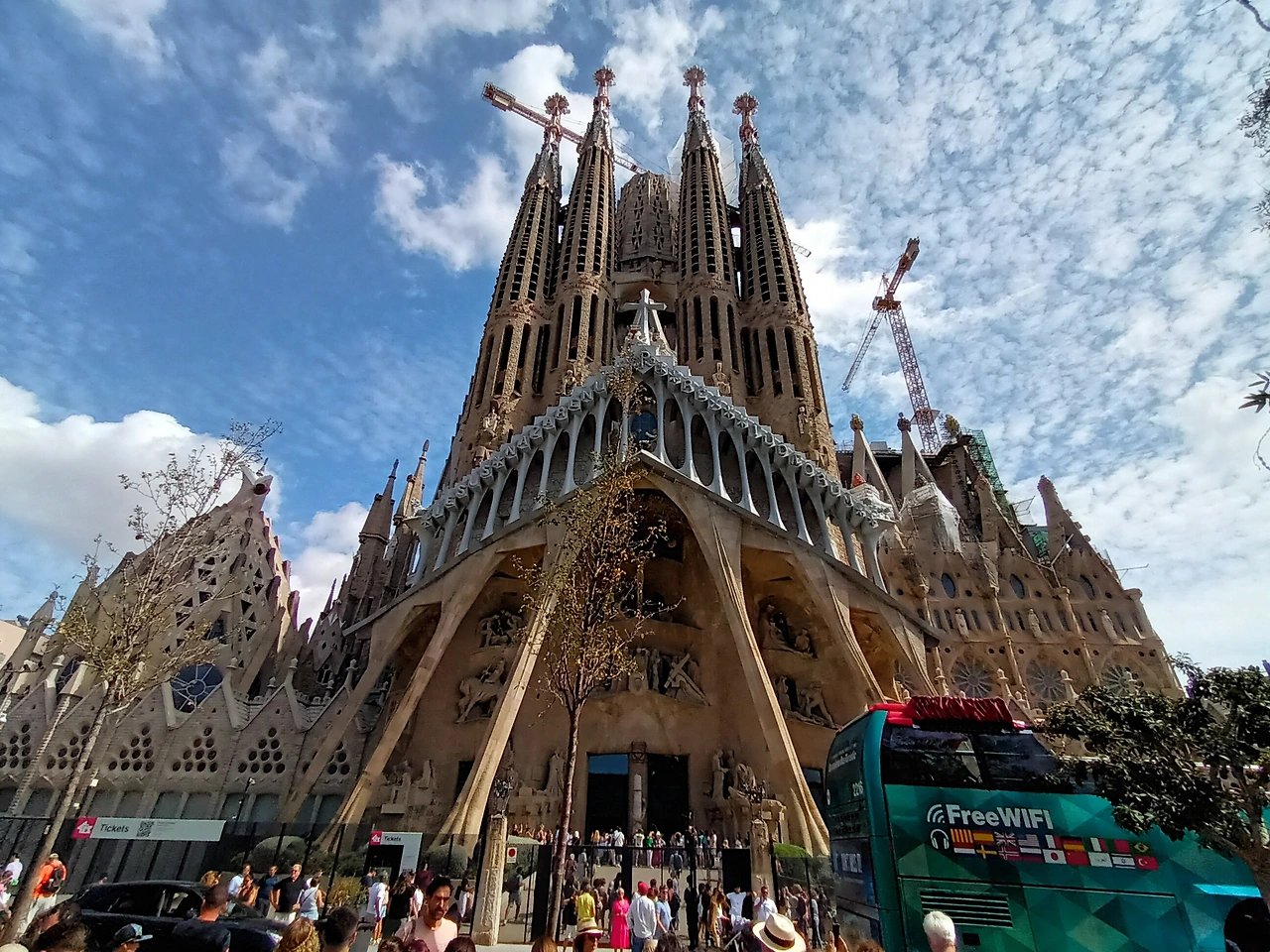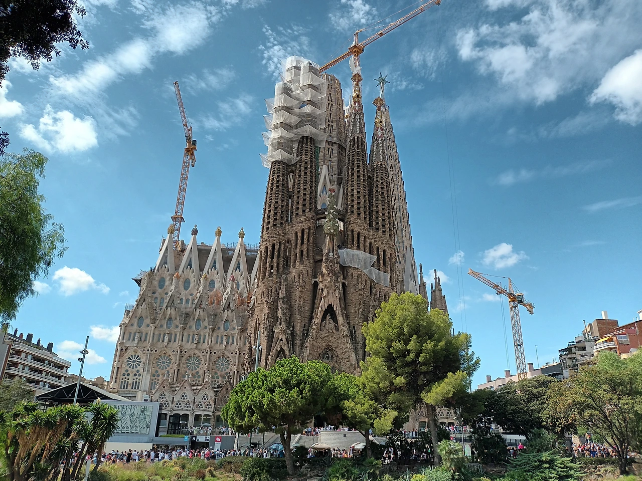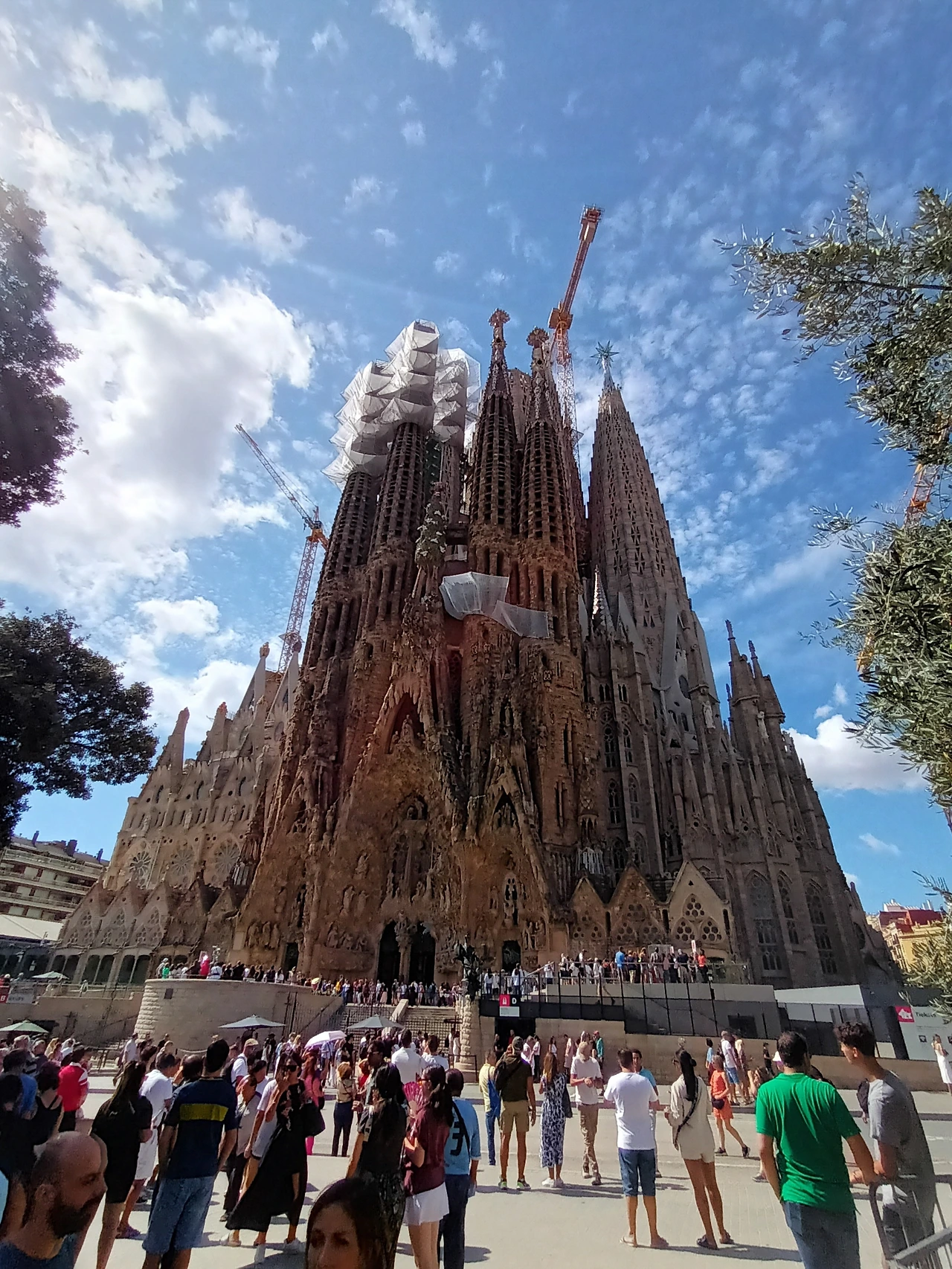 12시 30분에 '세그란다 파밀리아'(성스러운 가족이란 뜻인데, 바르셀로나 대성당을 말함)의 영어 가이드 투어를 예약해 놓았기 때문에 시간을 충분히 두고 그곳까지 여유롭게 걸었다. 호텔에서 도보로 25분 정도의 거리였다. 목적지에 거의 가까워지니까, 관광객들이 많아졌고 마침내 성당의 웅장한 모습이 눈에 들어왔다. 바르셀로나에 온 여행객들은 예외 없이 이곳을 방문한다.
