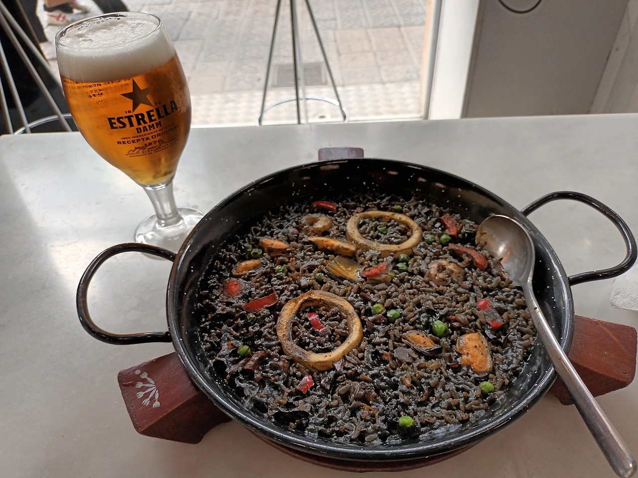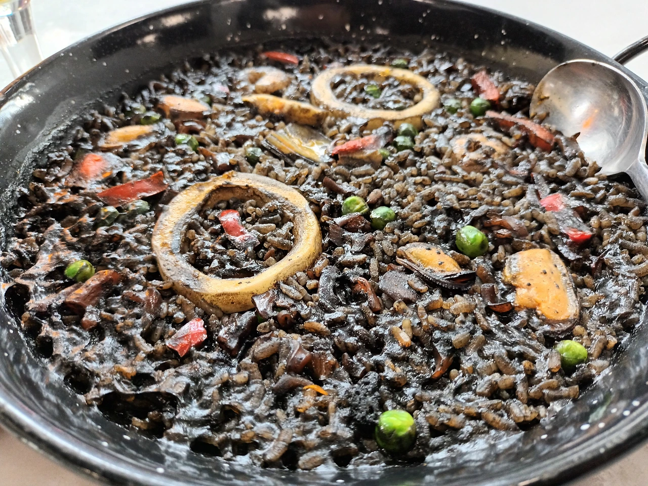 점심은 작은 마트에서 물과 샌드위치를 사서 먹었더니, 배가 고파졌다. 저녁 식사는 중국인들이 운영하는 스페인 식당에서 하였다. 같은 중국인이라고 생각했는지 중국어로 말을 걸어왔다. 서툰 스페인어로 대답을 하니까, 관광객인 줄 알고는 스페인어로 언어를 바꾸었다. 쌀밥이 먹고 싶어서, 오징어 먹물 들어간 검은 쌀밥을 올리브 넣고 냄비에 볶은 빠에야를 시켰다. 이전에 빠에야 먹었다가 너무 짜웠던 악몽이 있어서, '신 살'(소금 넣지 말고 달라는 뜻)이라고 부탁했더니, 주인이 소금 안 넣고는 못 만든다고 하며 소금 넣어야 한다는 뜻으로 "꼰 살"이라고 한다. 할 수 없어서 그냥 '발레'(오케이)라고 말해 줬다. 드디어 음식이 나와서 숟가락으로 검은 쌀밥을 눈을 감고 입에 넣었다. 그런데, 다행히 그렇게 짜지가 않았다. 감동의 눈빛으로 주인아주머니를 순간 쳐다보니, '그래. 내가 신경 좀 썼다'는 표정이다.