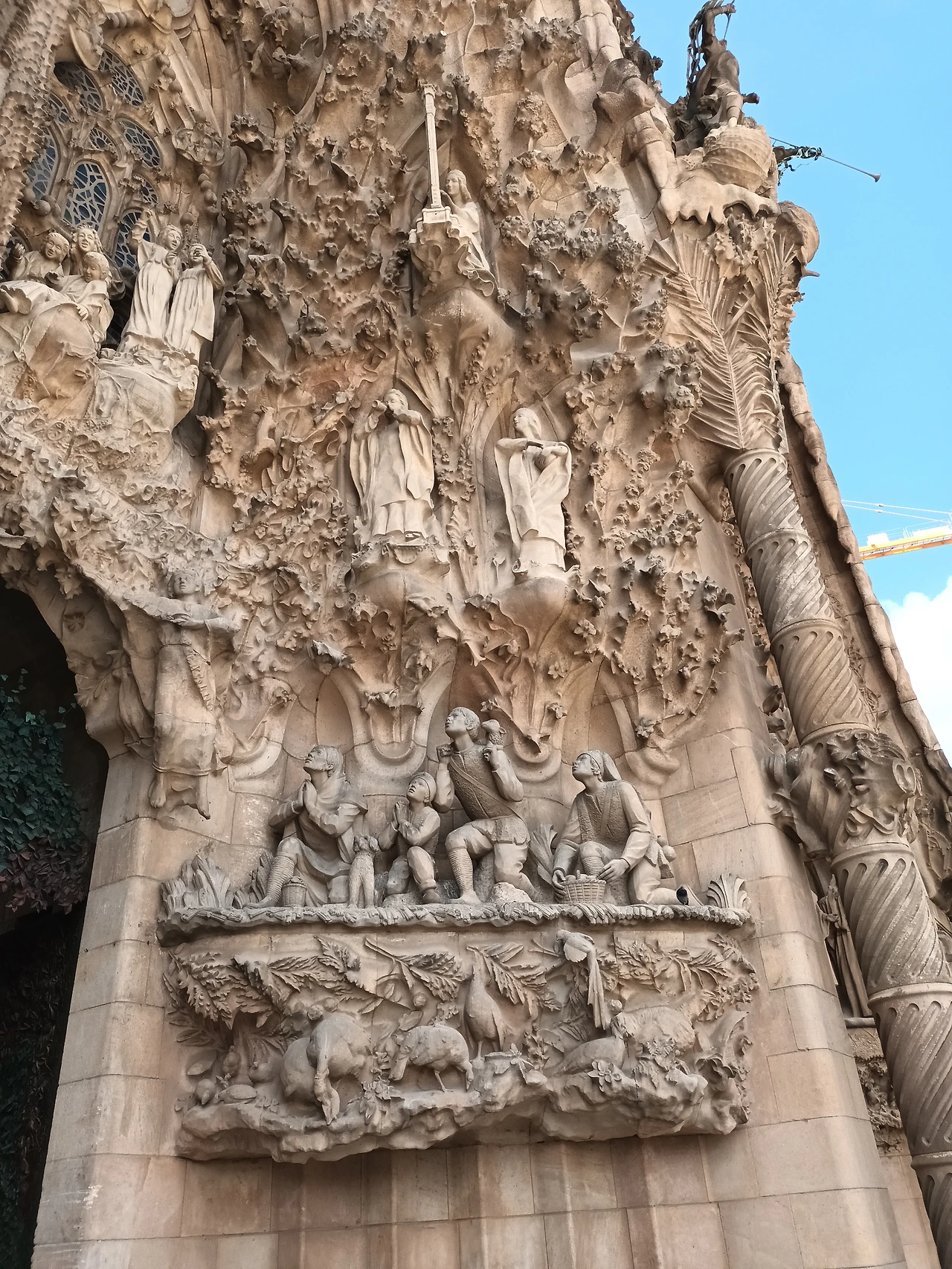 유럽의 유명한 성당들과 비교하여 가우디의 바르셀로나 성당은 역사가 짧은 편이다. 하지만, 이 건축물의 외관과 내부에 그가 자연의 모습을 반영하고자 한 의도가 곳곳에 반영되어 있다. 또한 가우디가 당시 종교에 심취한 배경도 건축물의 조각상들에서 찾을 수 있었다. 예수의 탄생부터 부활까지의 성경 내용을 성당 외부의 여러 곳에 부착된 조각물에 담고 있었다.