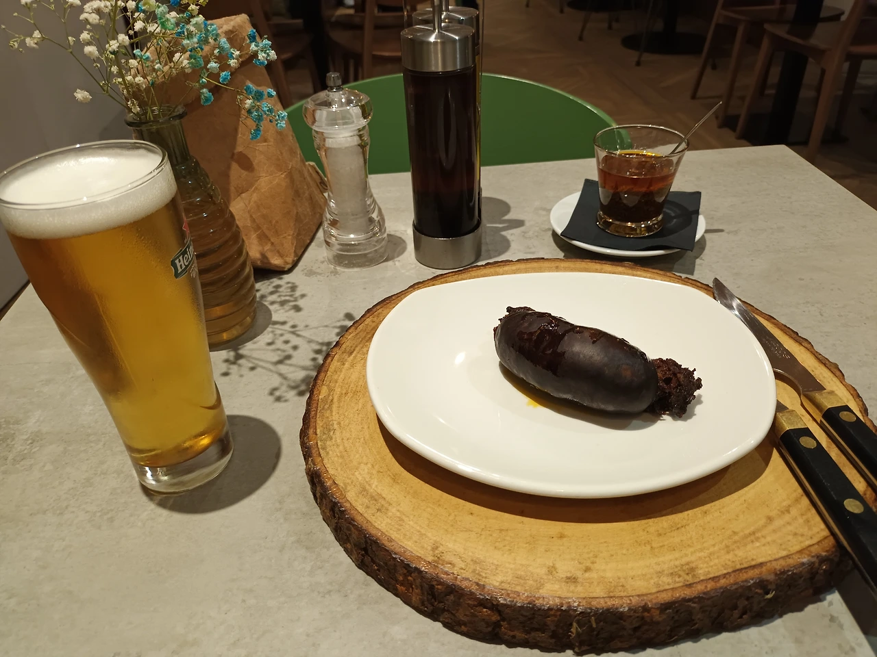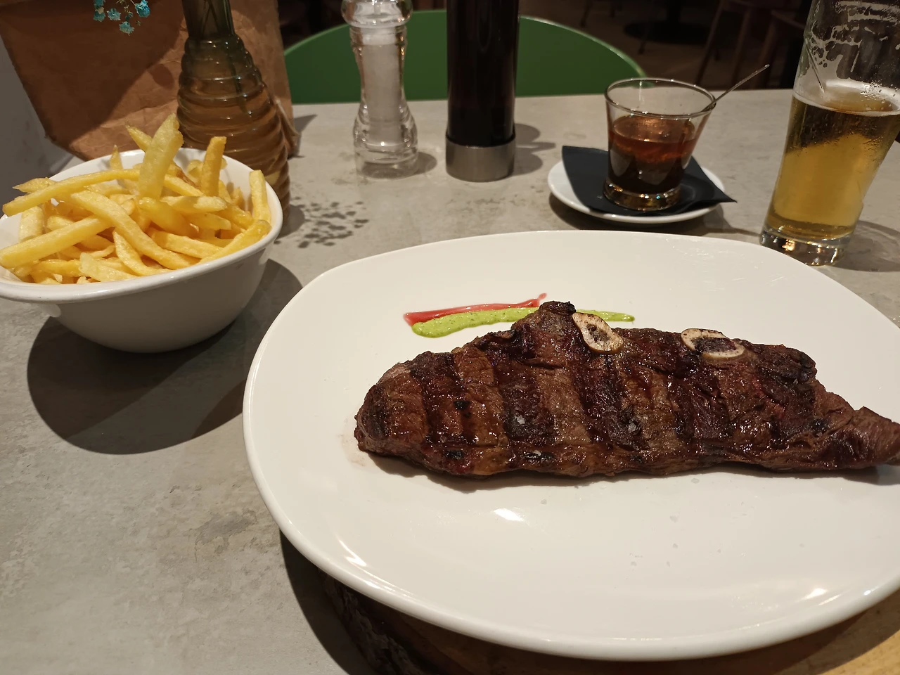 공연까지 한 시간 조금 넘게 남아서 어느 레스토랑으로 들어가 저녁식사를 하였다. 주문하기가 복잡하여 오늘의 메뉴(Menu del dia)를 시켰다. 스테이크도 나와서 오랜만에 고기맛을 맛볼 수 있었다. 레드 와인도 한잔하고 공연시작 전에 식당을 나왔다. 마드리드의 물가는 비싼 편인데, 방금 식당에 먹은 것은 오늘의 메뉴라서 그런지 음식 내용에 비해서는 비교적 저렴한 가격인 14유로가 나왔다.
