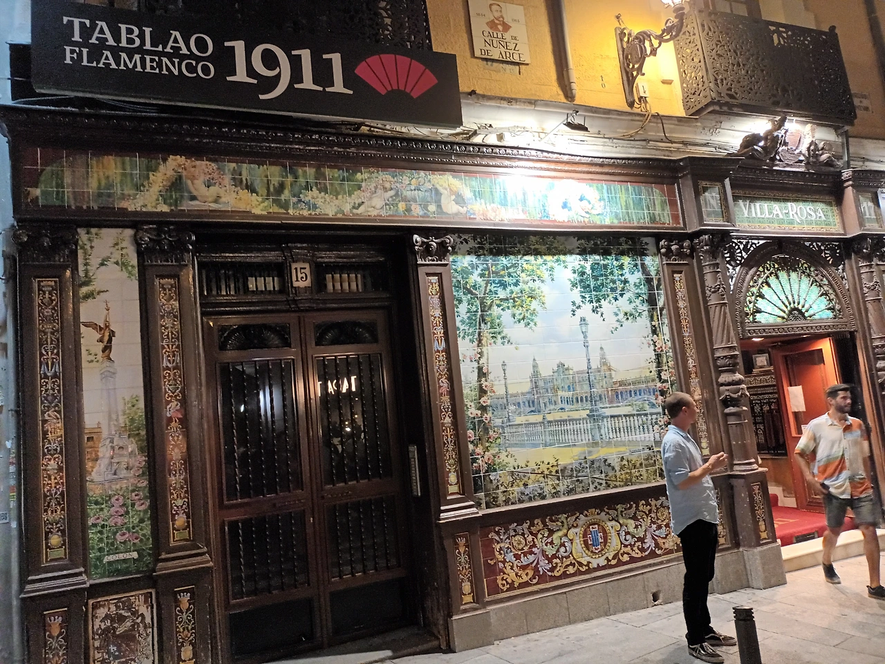 오늘 방문한 플라멩코 공연장인 '타블라오 1911'(Tablao 1911)은 마드리드에서 제일 오래된 플라멩코 공연장으로 1911년부터 운영한 곳으로 역사가 112년이나 된 곳이었다. 플라멩코가 탄생한 안달루시아 지방인 그라나다, 세비야에서 본 공연은 플라멩코의 전통에 다소 충실한 것이었다고 느껴졌다. 마드리드에서 본 이 공연은 상대적으로 현대식이었다. 우선 음악이 룸바 플라멩코의 느낌에 가까웠고, 두 개의 스페니쉬 기타에 바이올린 한 개와 카혼 한 개, 가수 두 명이 연주와 노래에 합류하였다. 플라멩코 춤은 여자 2명, 남자 1명이 췄다. 그라나다 동굴 플라멩코는 상당히 투박한 맛이었는데, 마드리드의 플라멩코 공연은 세련되었다. 사진촬영이 허락되었는데, 동영상 촬영까지 허락하는지는 안내방송이 없어서 고민하다가 공연동안 계속 동영상을 촬영해 버렸다. 다행히, 촬영을 제지하는 직원들이 없었다. 포르투갈에서 파두 공연을 보고 오니, 플라멩코는 다소 센 느낌이었다. 댄서들의 눈빛들도 강렬했다. 살아오면서 느끼는 한과 감정을 어떻게 표현하느냐의 차이인 것 같다고 생각이 들었다.