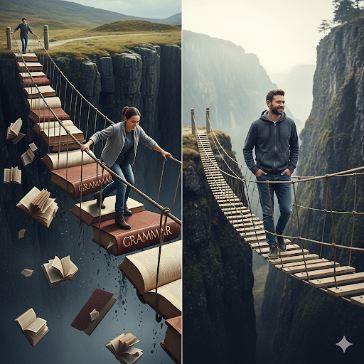 문제는 전 세계 학교에서 영어가 여전히 '정복해야 할 예술'처럼 가르쳐지고 있다는 점입니다. 학생들은 명확성보다는 정확성에 대해 더 많이 평가받습니다. 파스칼은 학창 시절의 '독해 시험'을 예로 듭니다. 내용을 완벽히 이해했음에도 불구하고, 사소한 문법 실수 때문에 큰 감점을 받았던 경험은 많은 분들께 익숙할 것입니다.