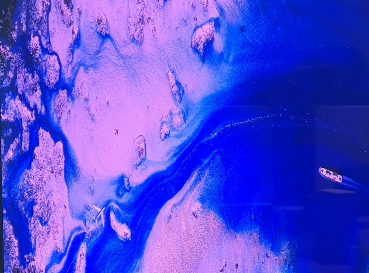 딸이 비즈니스 표를 샀다고 했을 때부터 라운지에 대한 환상에 사로잡혔다. 하지만 발을 들이는 순간 산산조각이 났다. 발 디딜 틈 없이 붐비는 대형 뷔페식당에 지나지 않았기 때문이다. 하지만 나를 단숨에 사로잡는 것이 있었다. 난생처음 보는 아름다운 장면이 펼쳐지는 건너편 대형 광고 화면이었다.
