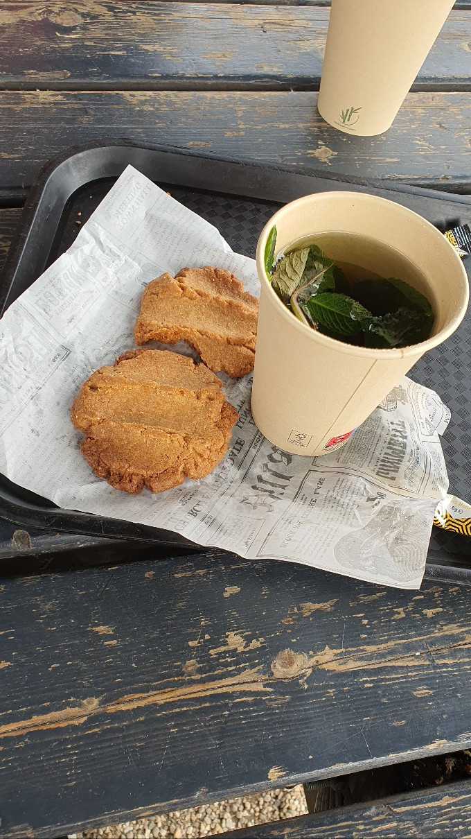 박물관 앞 노천카페에서 민트 티와 작은손녀가 만든 쿠키를 먹었다.